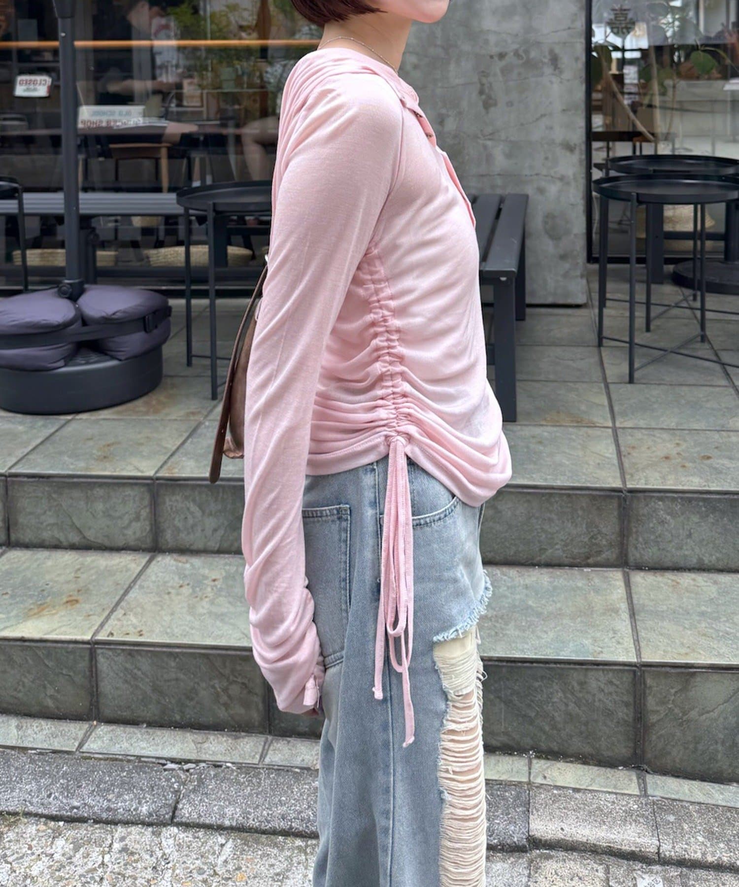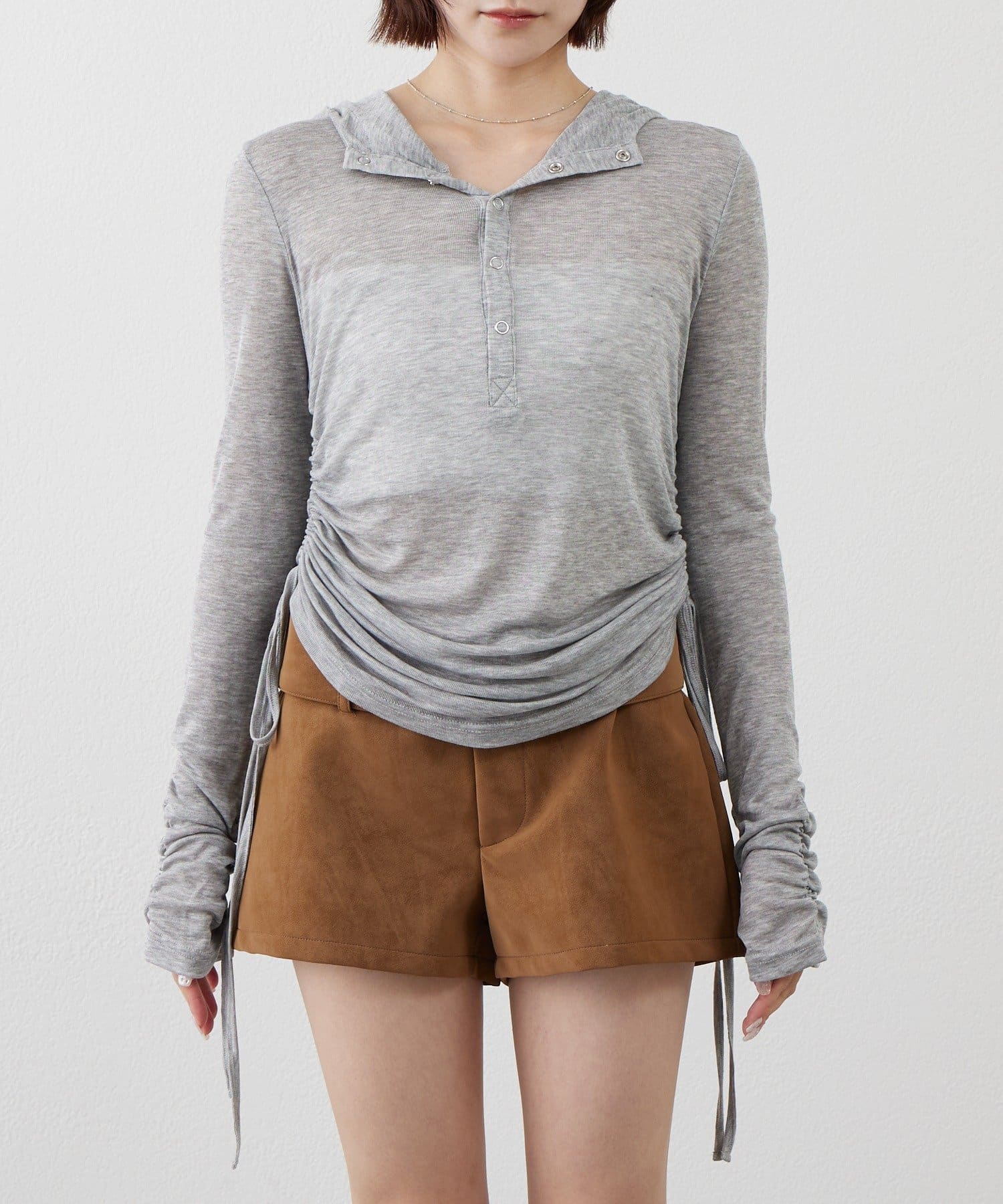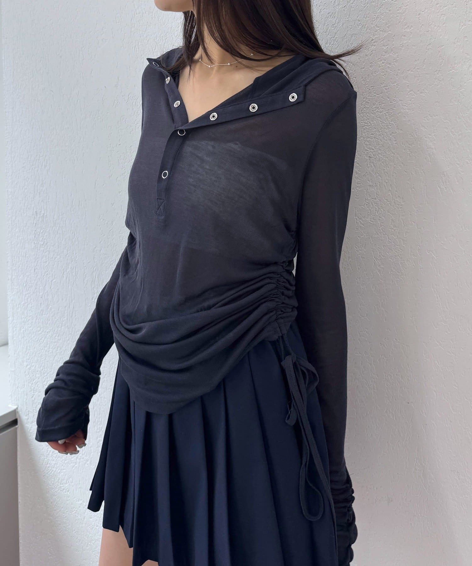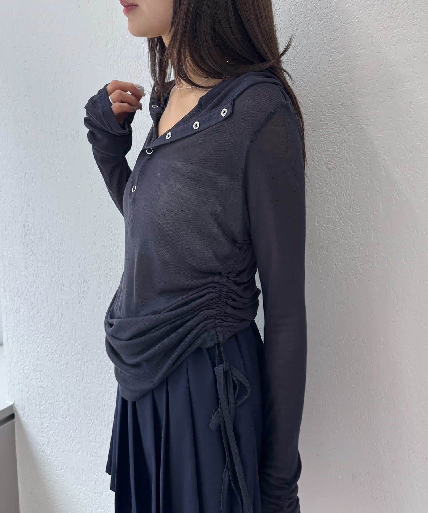 ・サイドのドローストリングを絞ることで、丈感やシルエットを自在にアレンジ可能♪