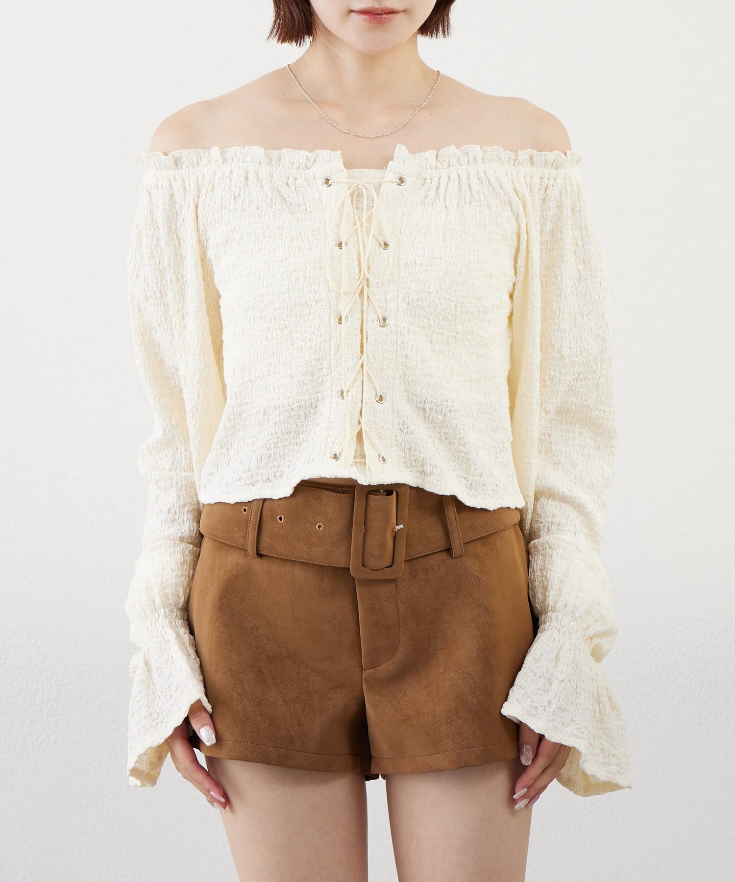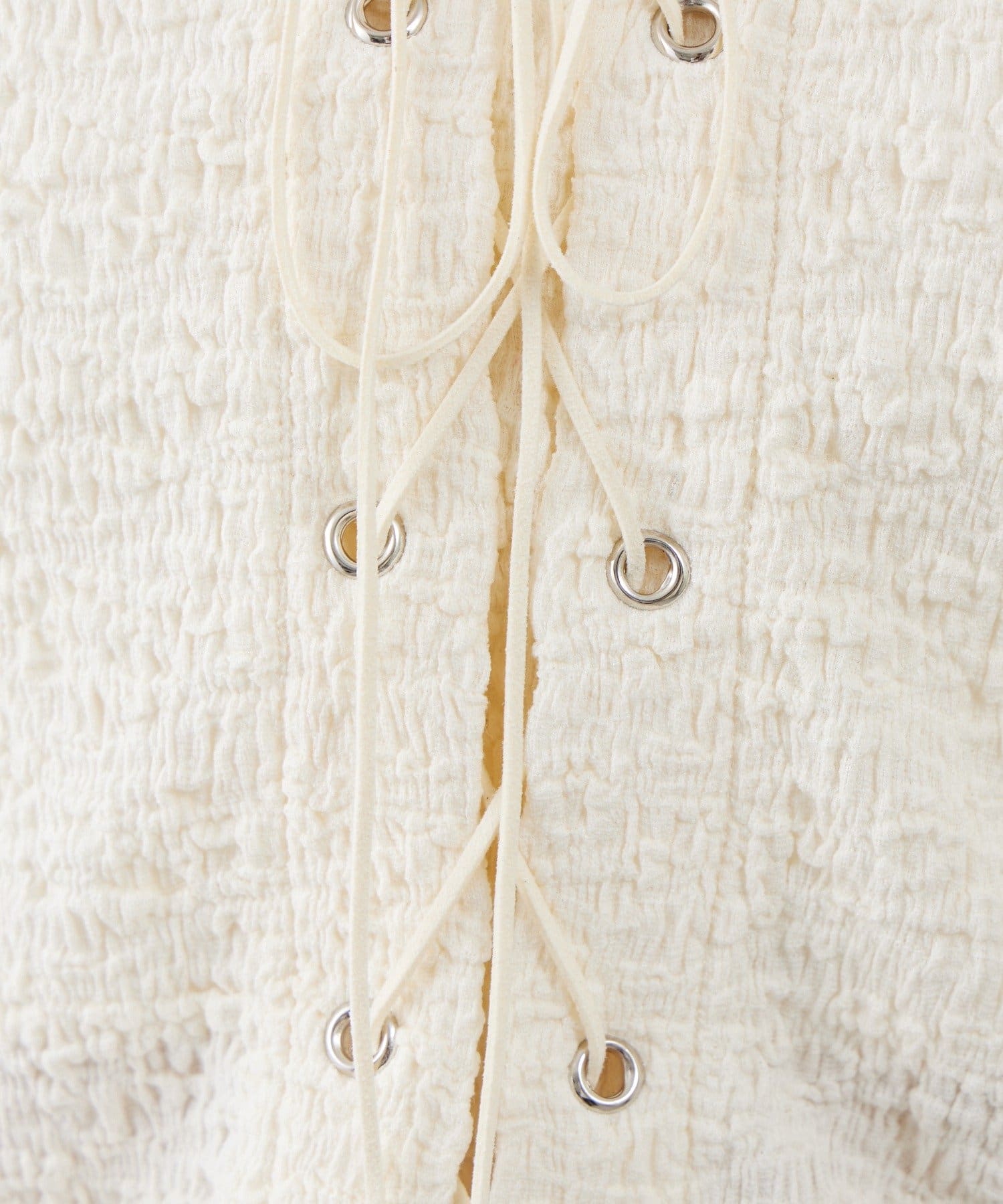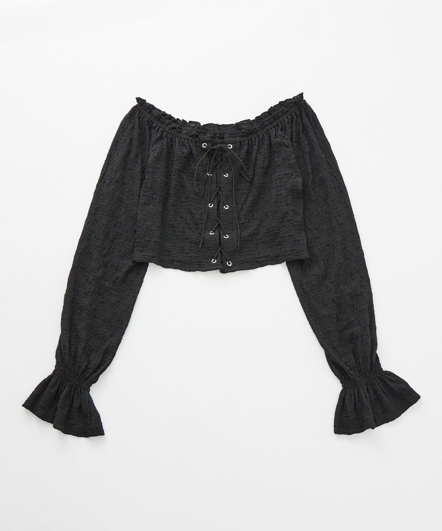 胸元のレースアップがかわいい♡ジャガードブラウスが登場!