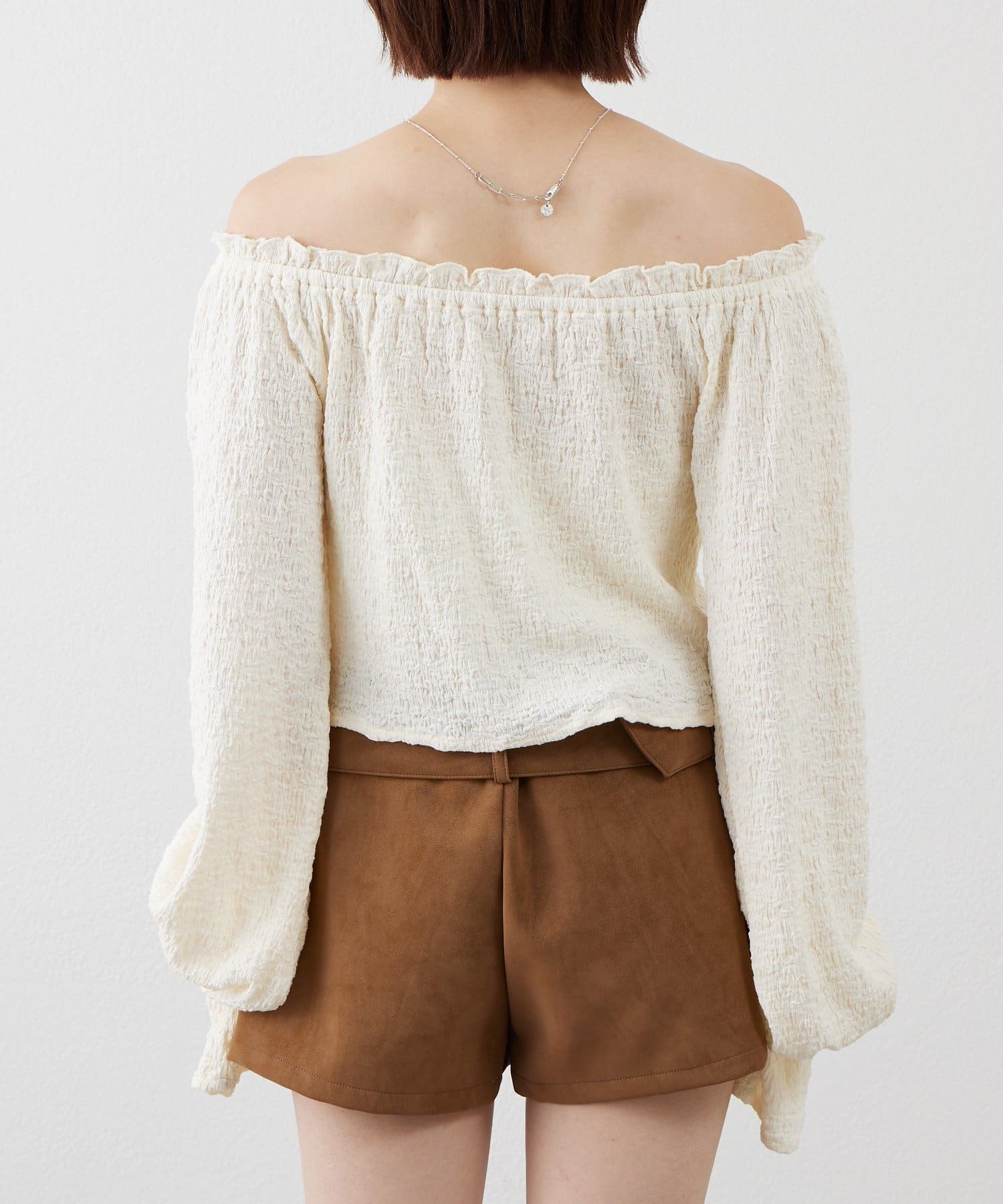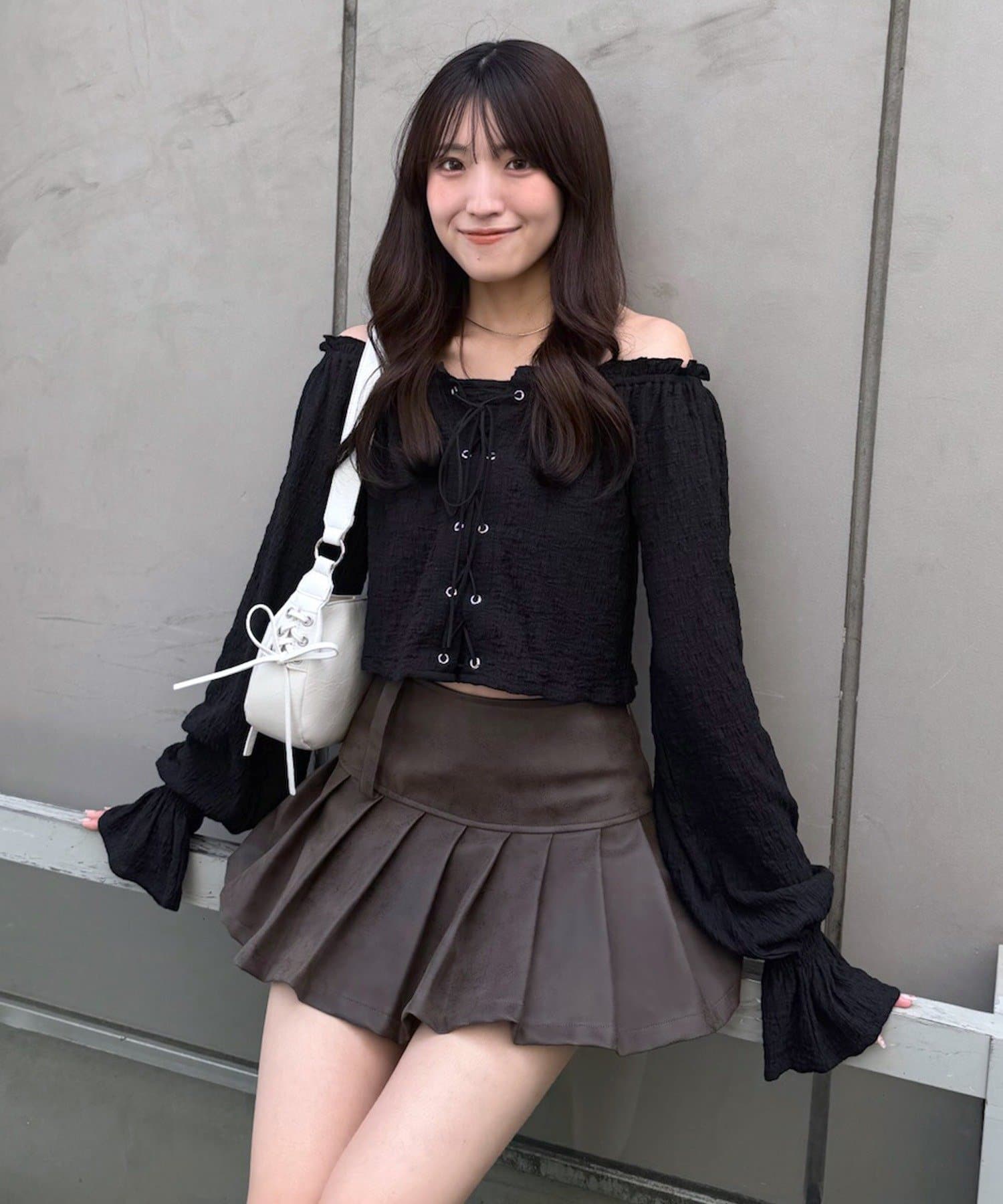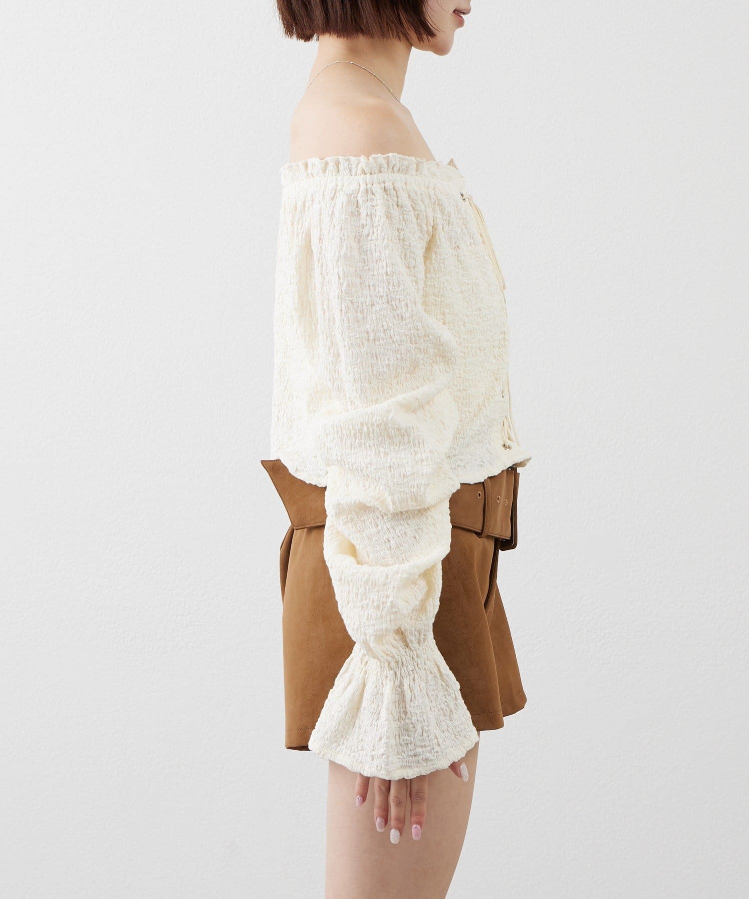 胸元のレースアップがかわいい♡ジャガードブラウスが登場!