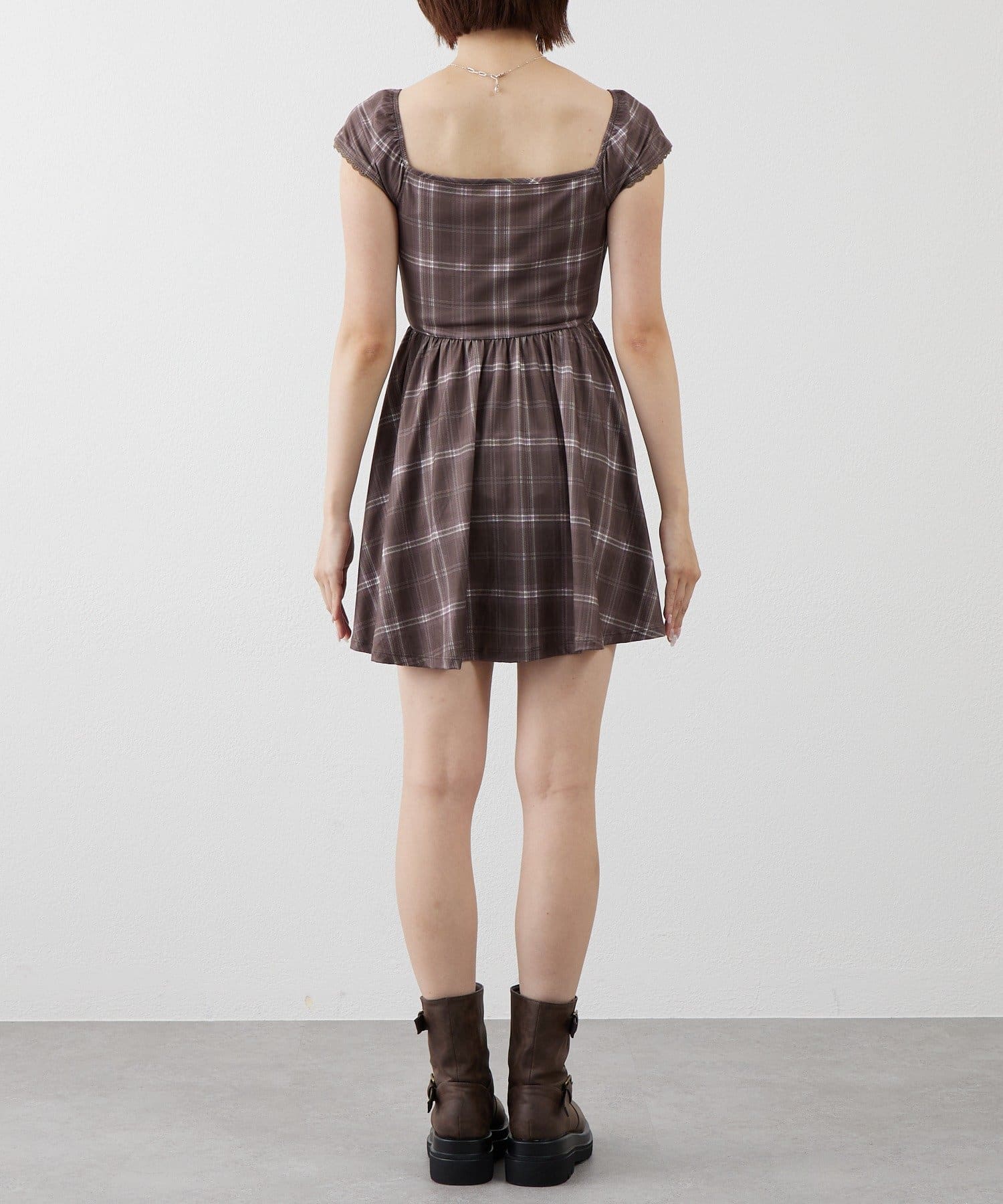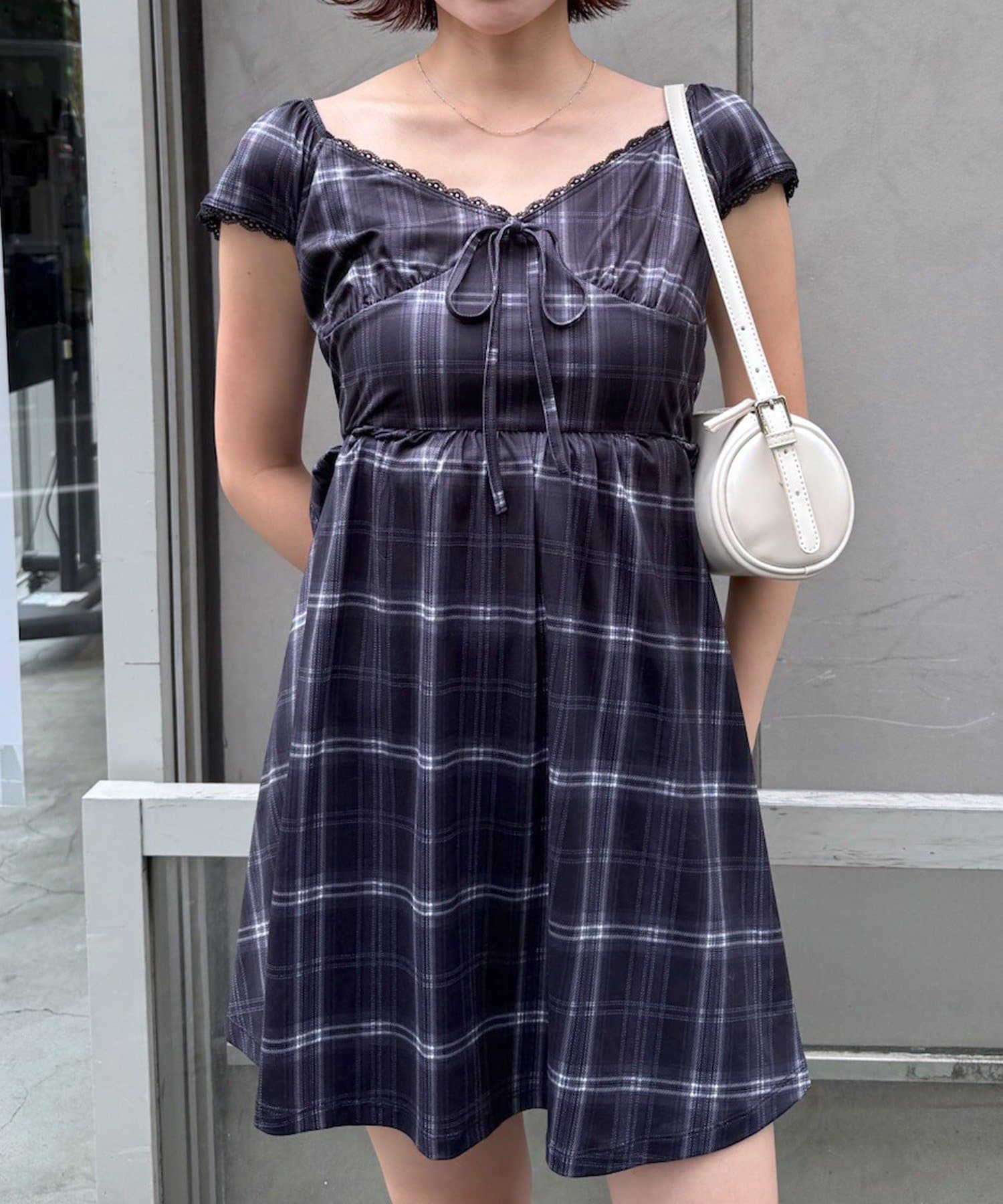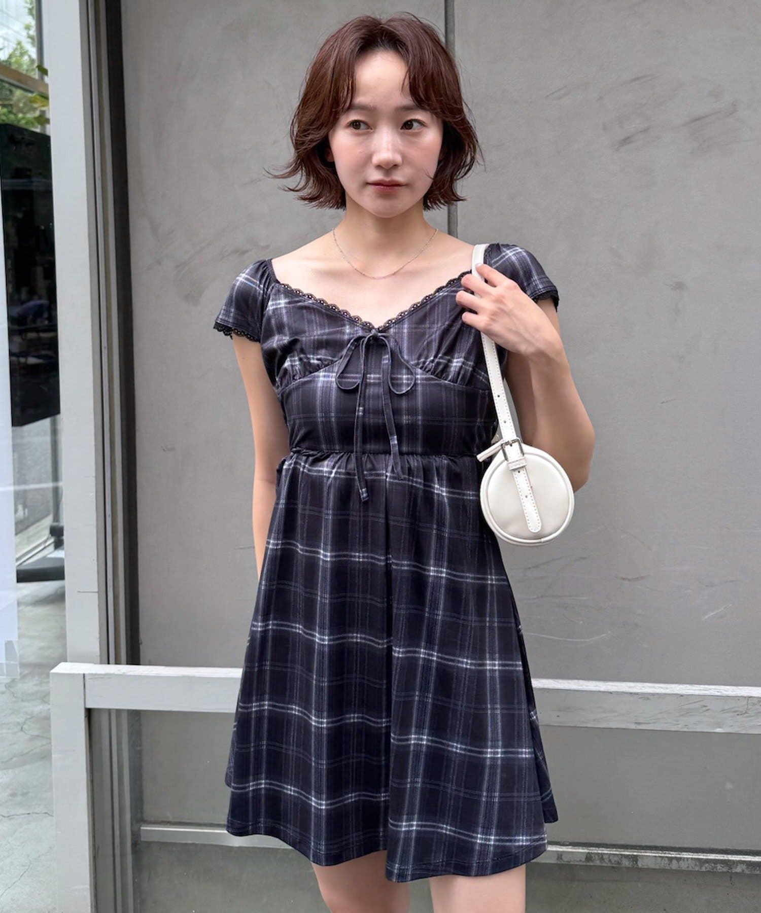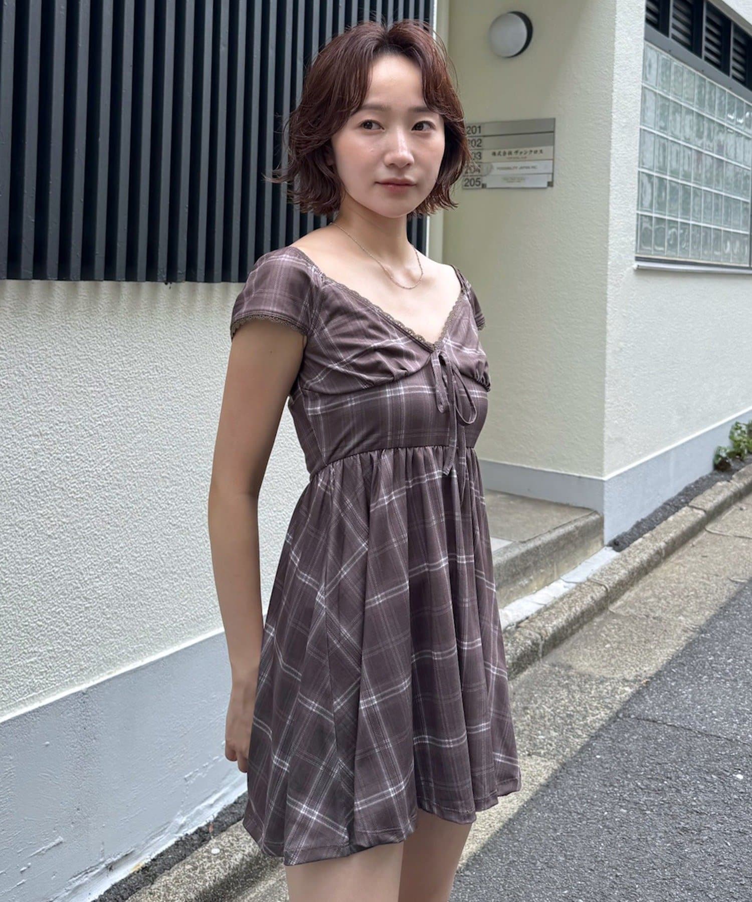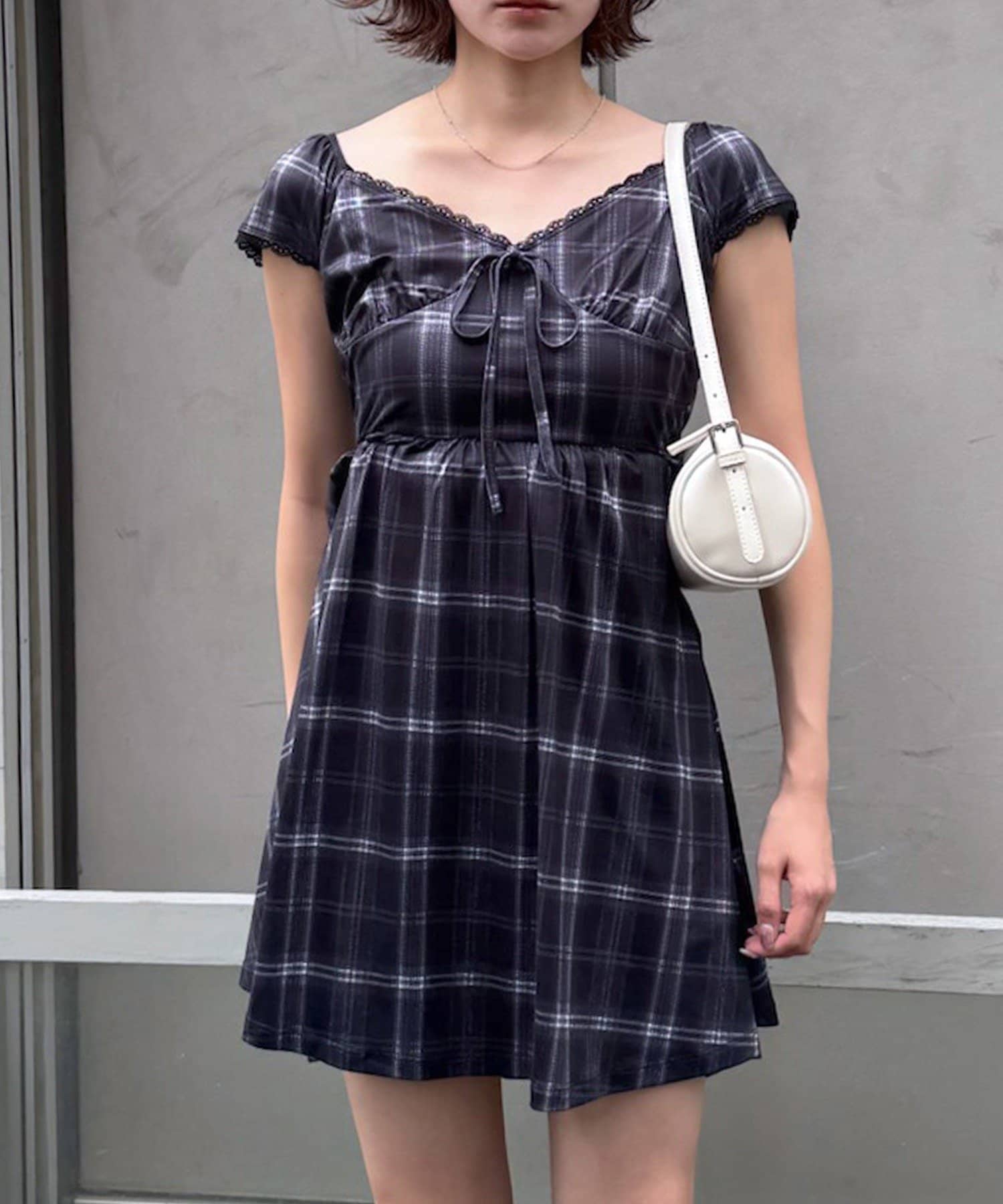 レトロガーリーなシアーチェックカットミニワンピ♡