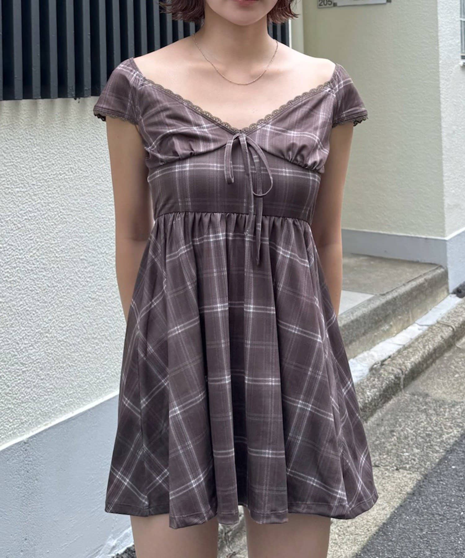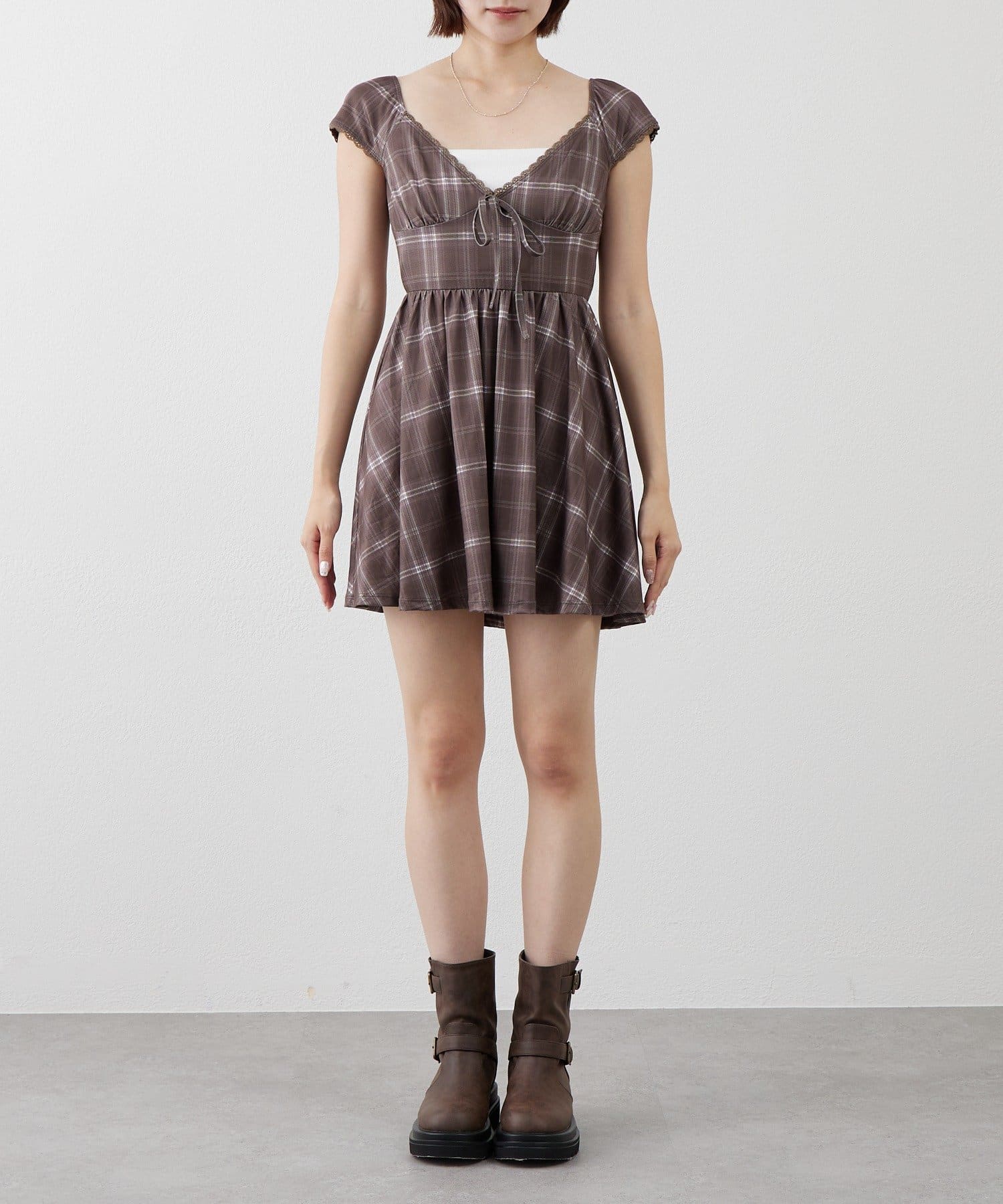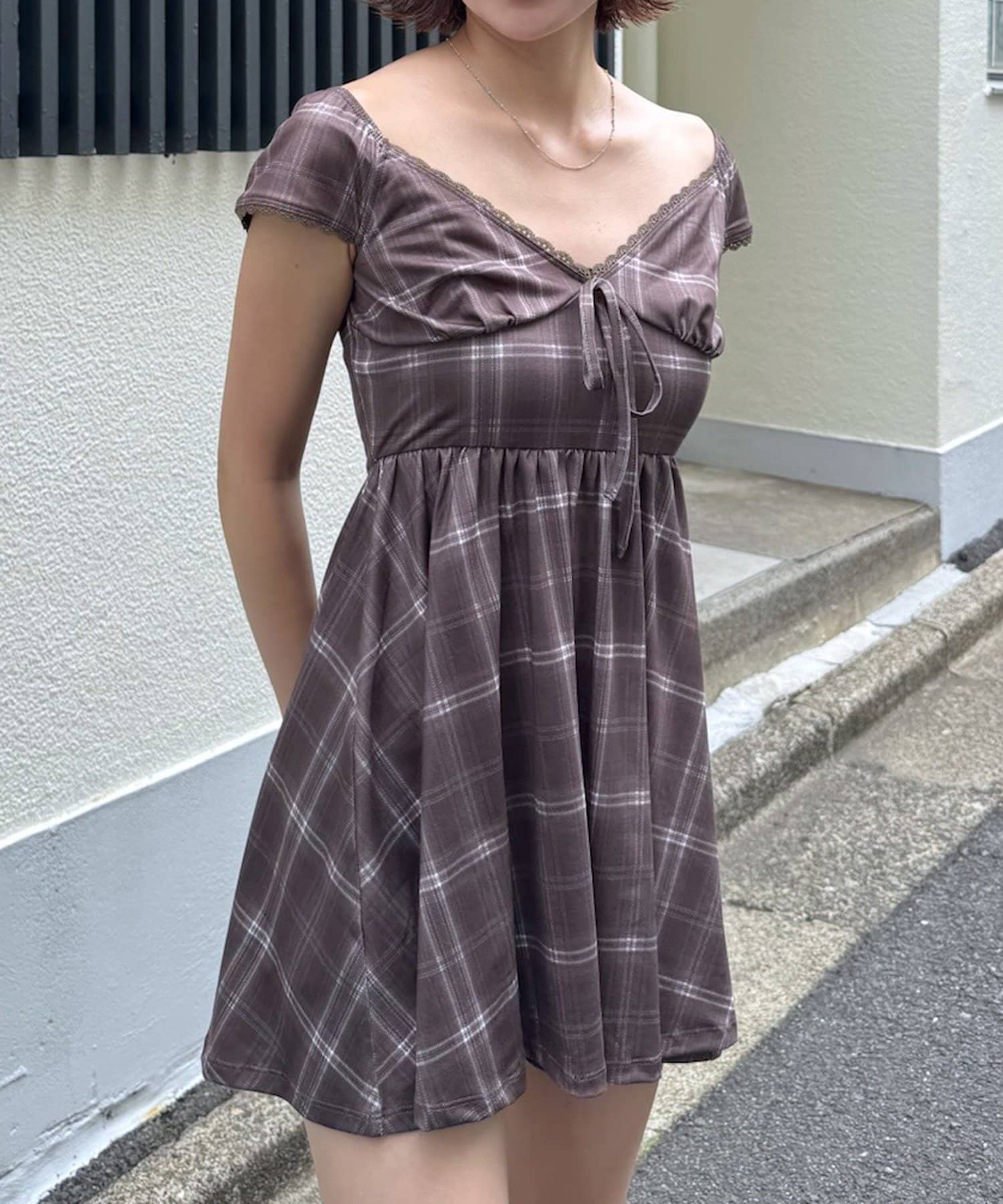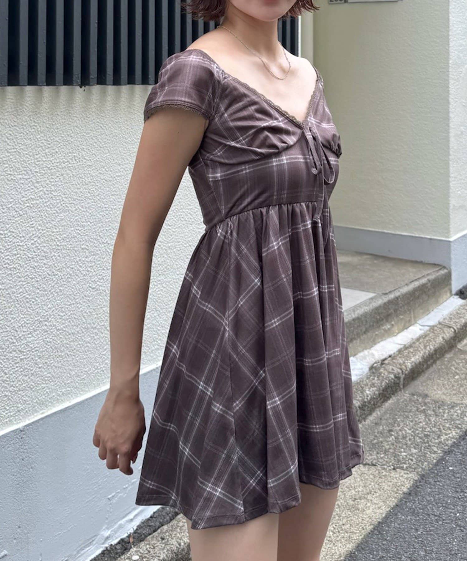 レトロガーリーなシアーチェックカットミニワンピ♡