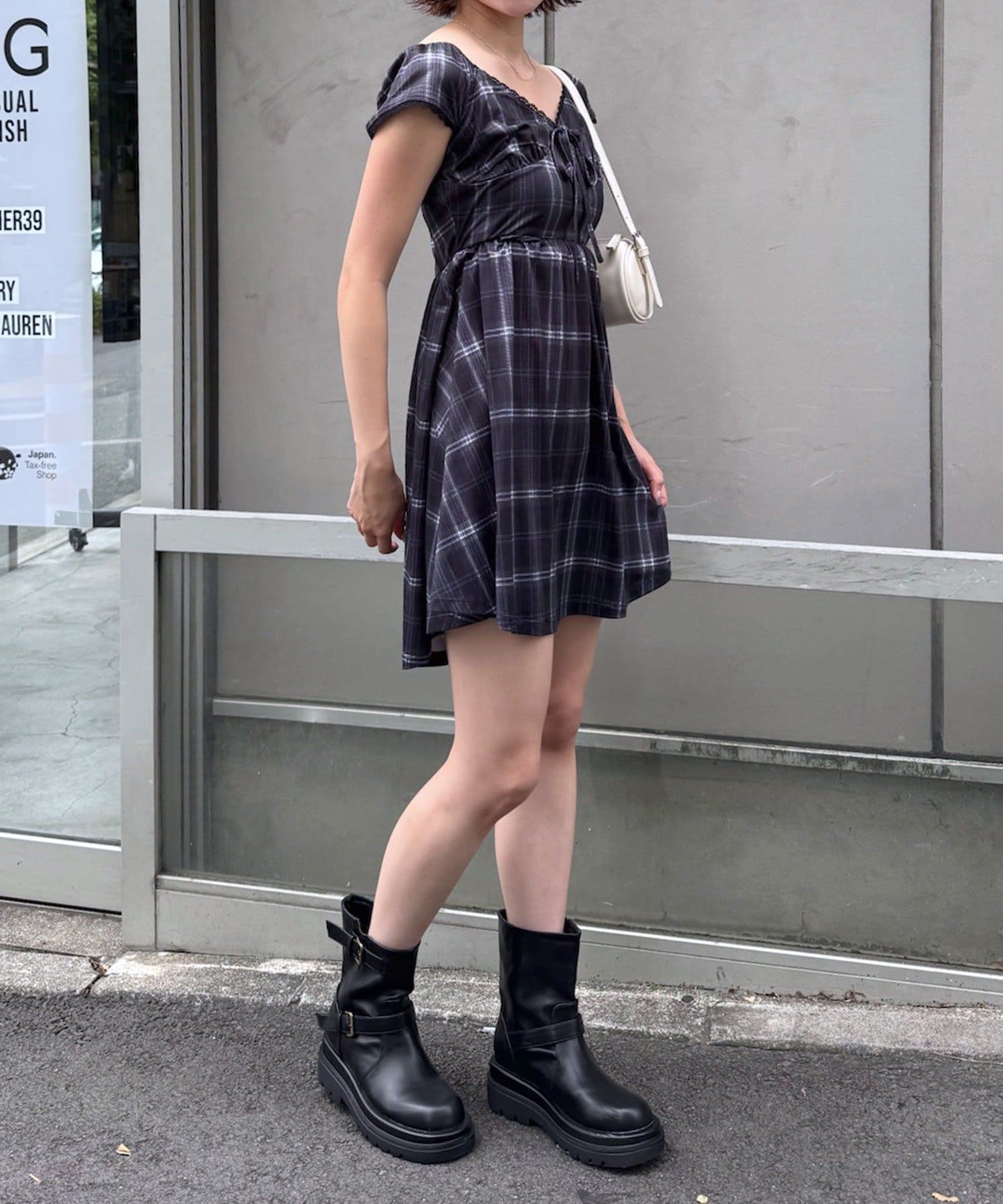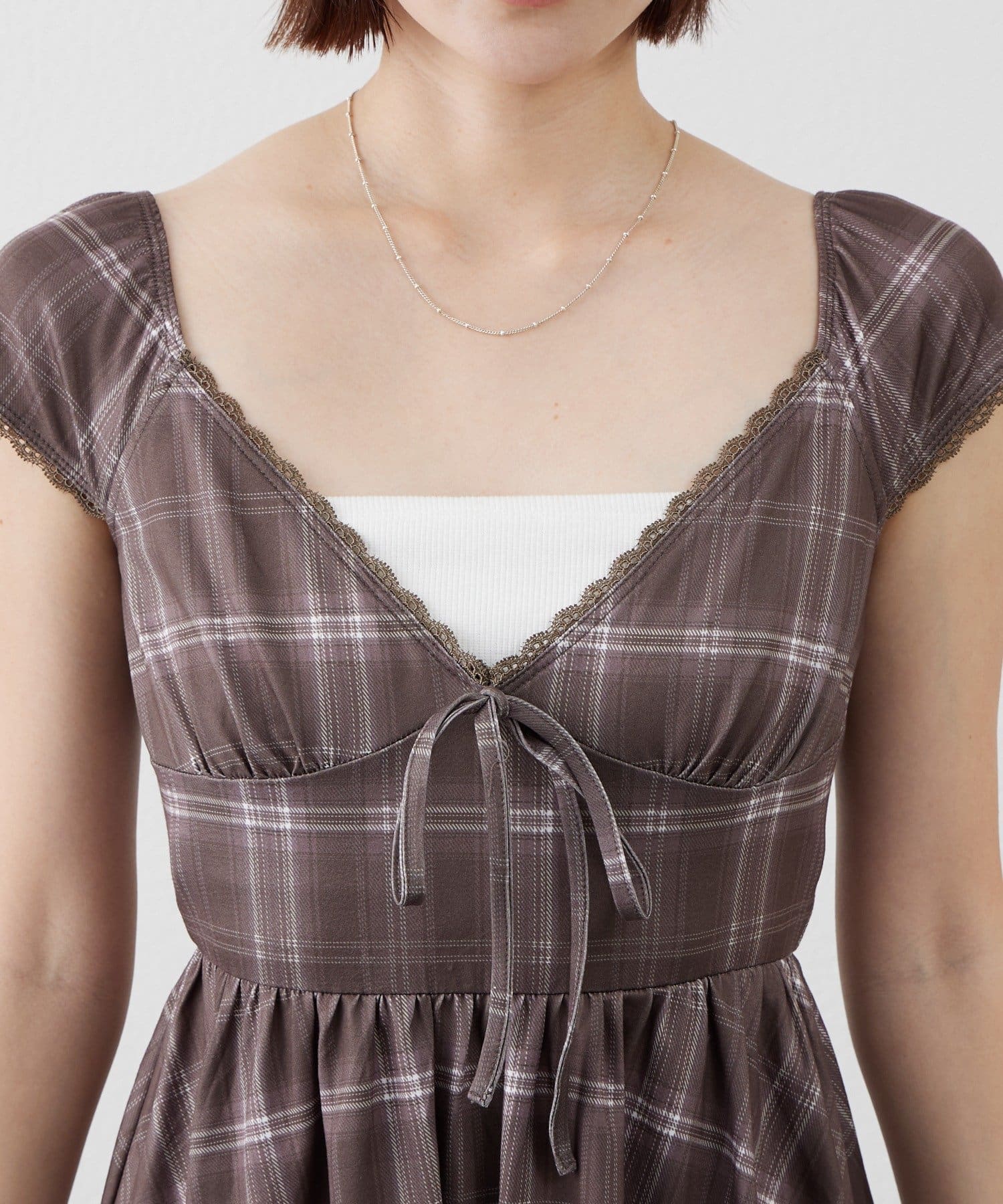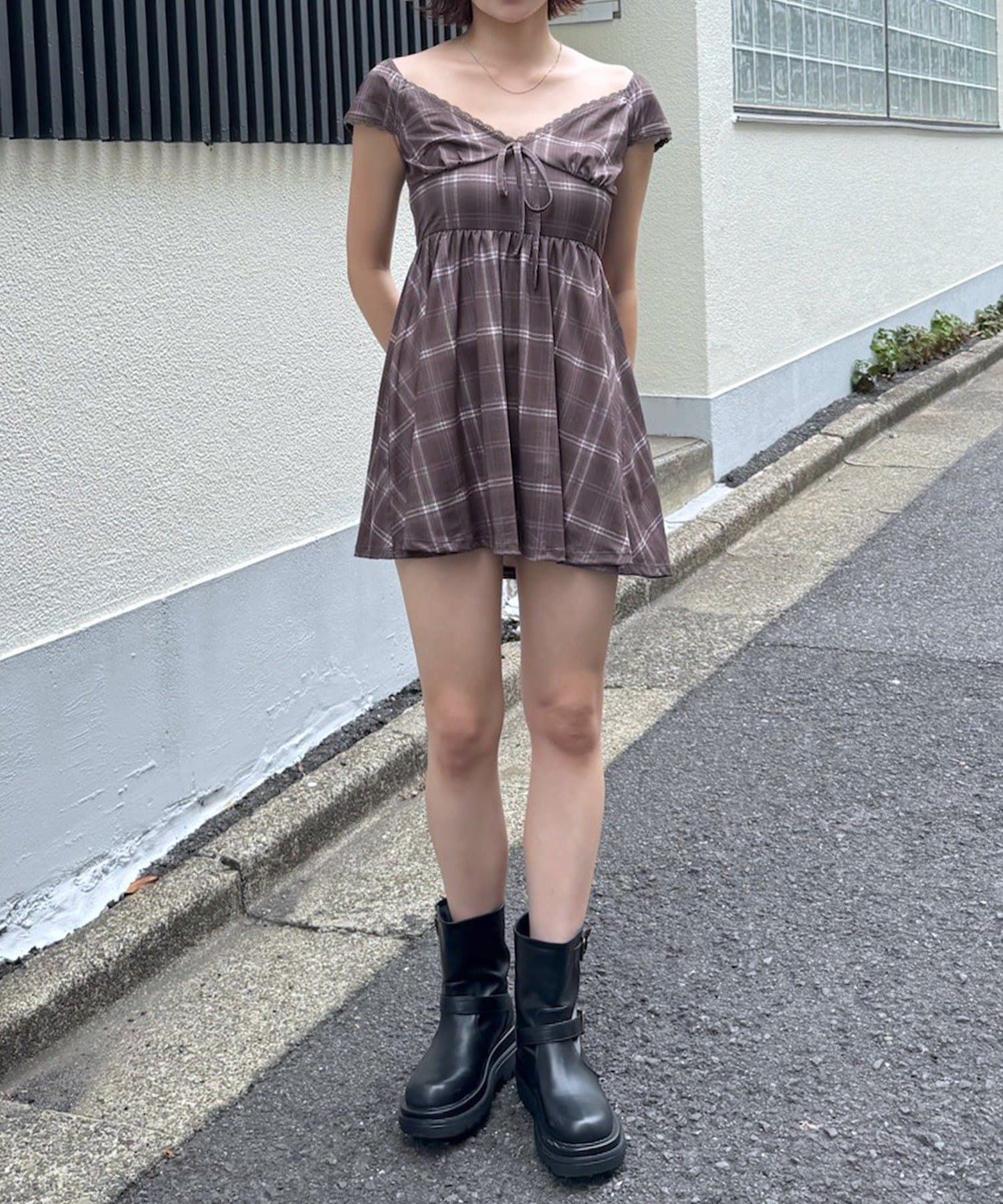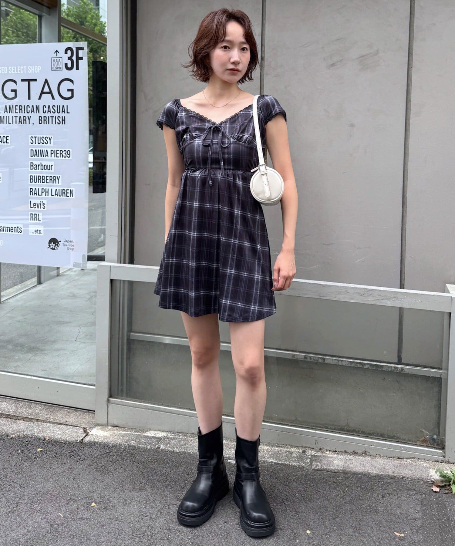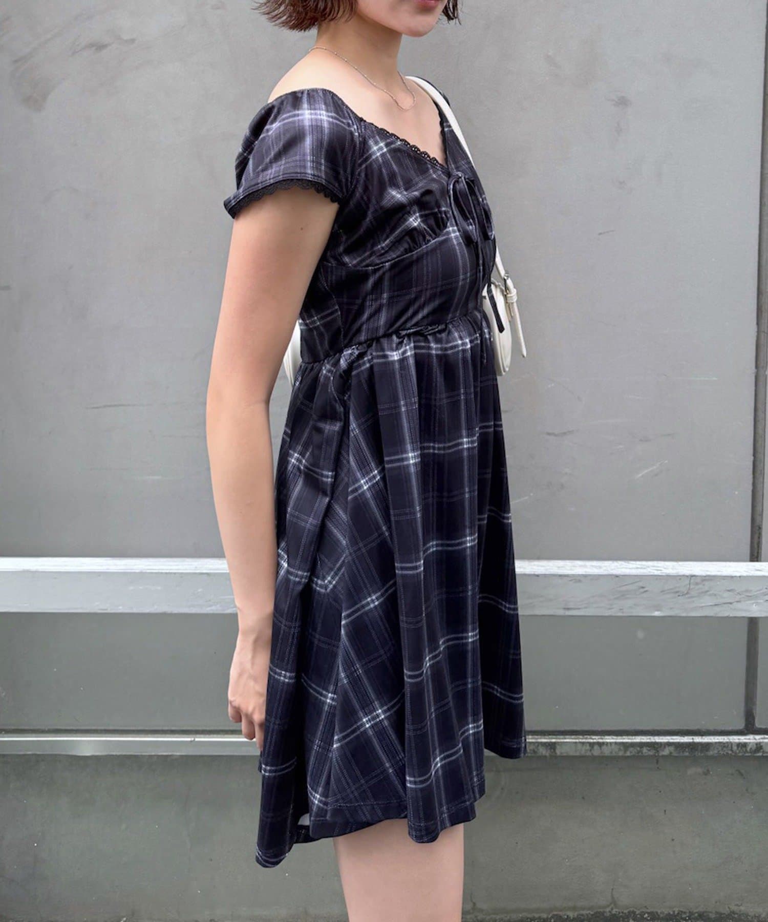 レトロガーリーなシアーチェックカットミニワンピ♡