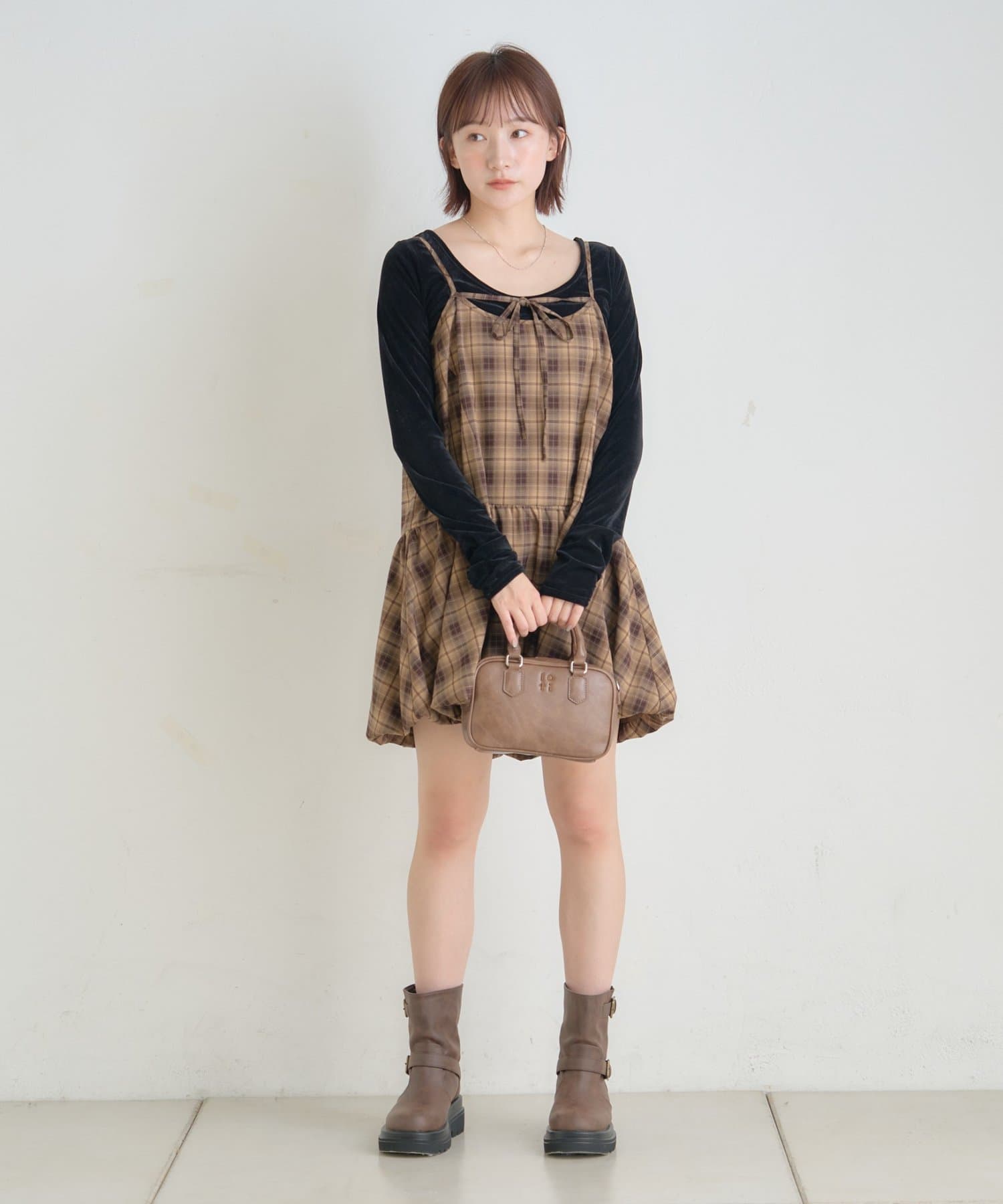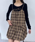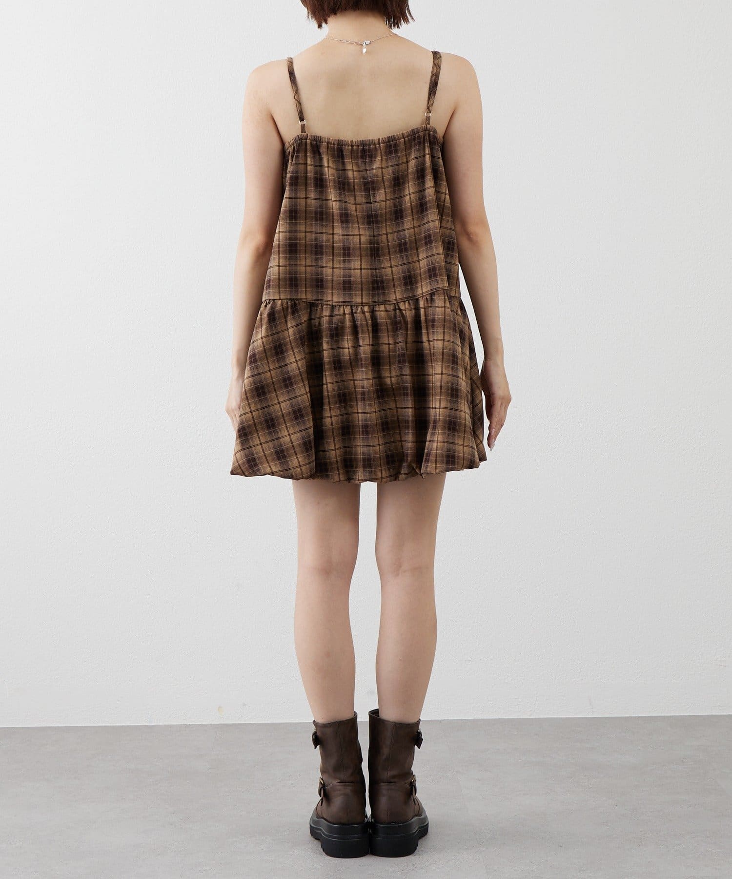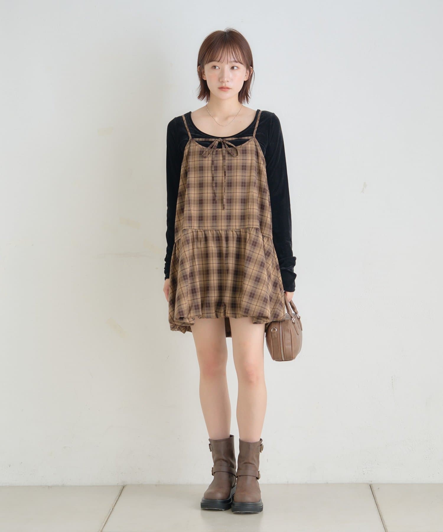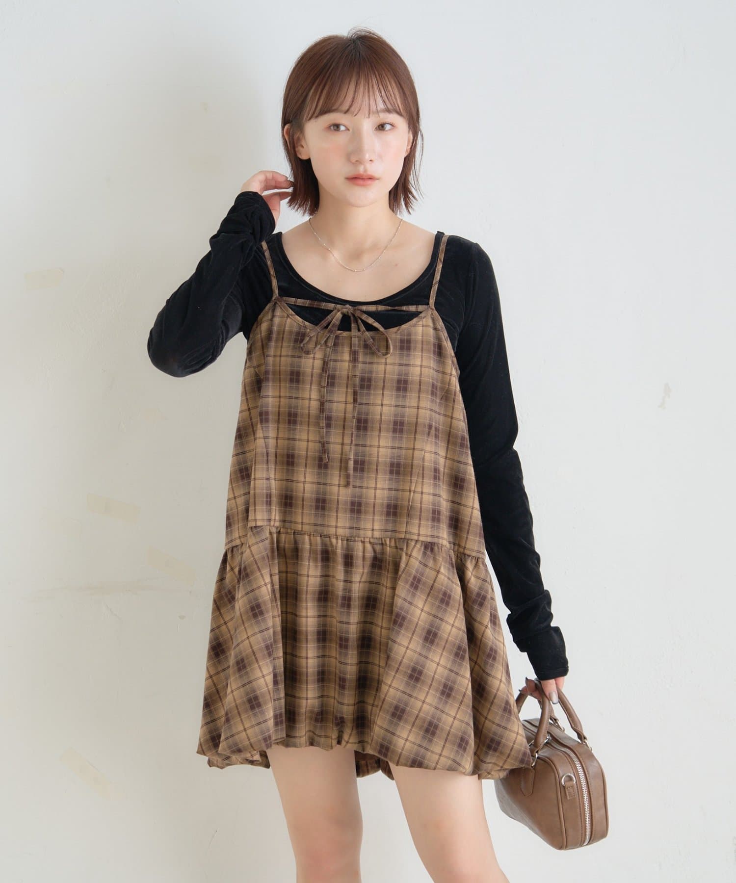 トレンド感満載のバルーンチェックキャミワンピで、旬のレイヤードスタイルを♡