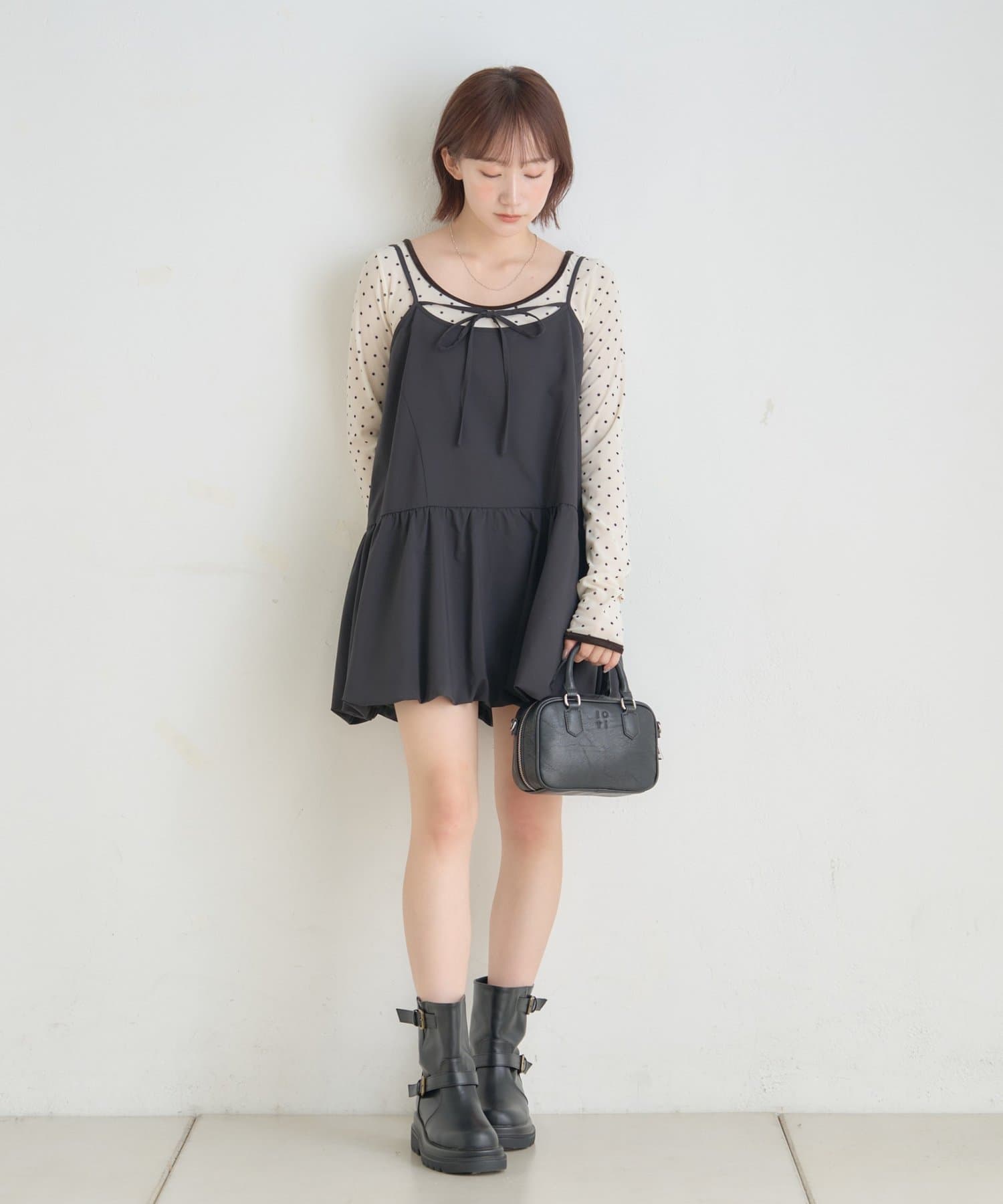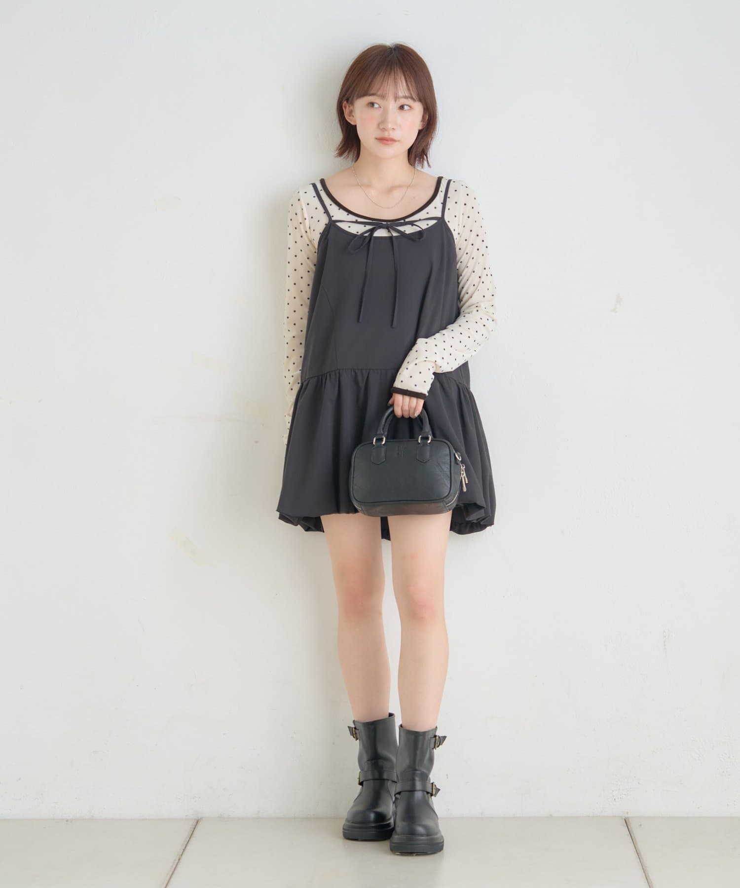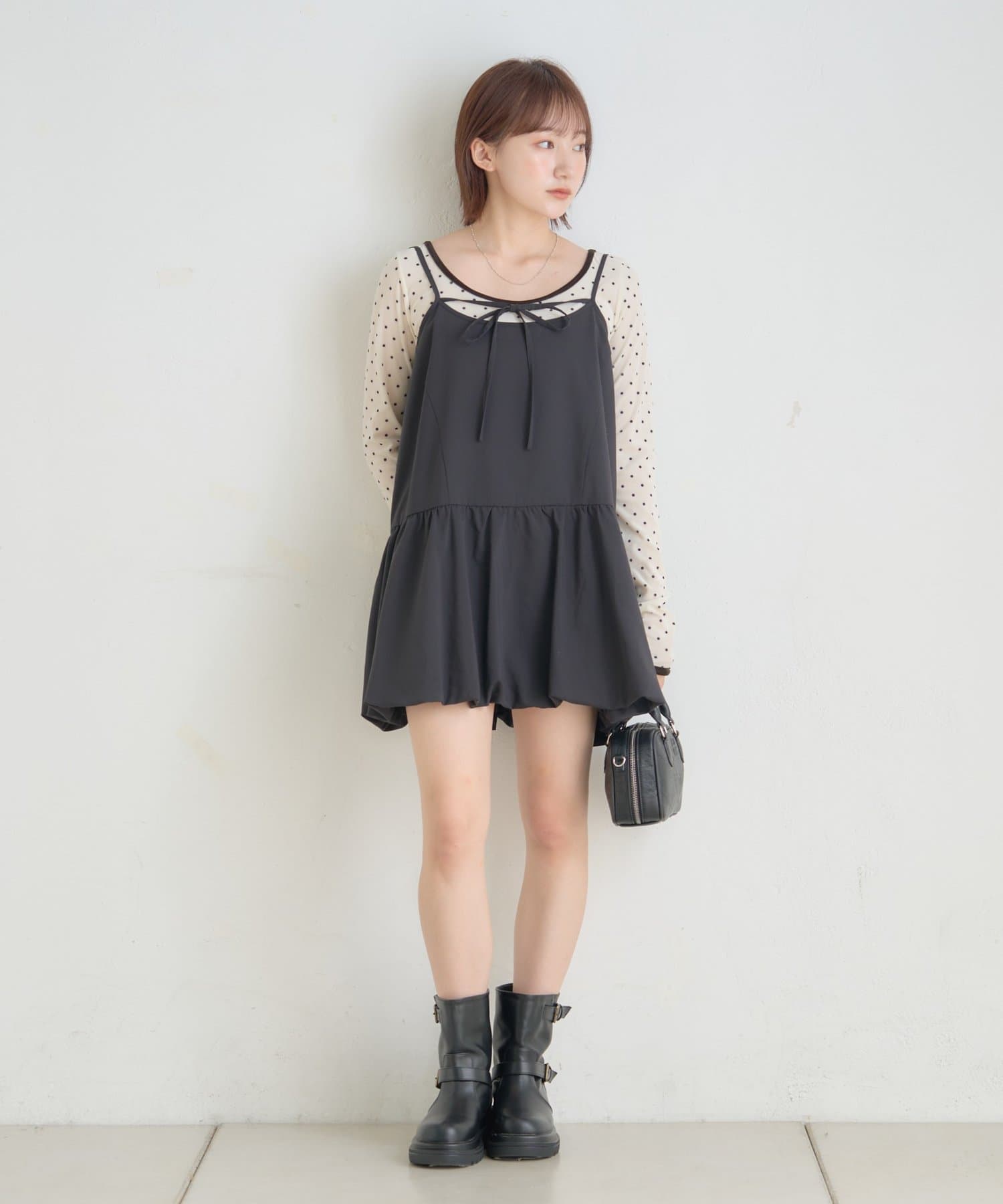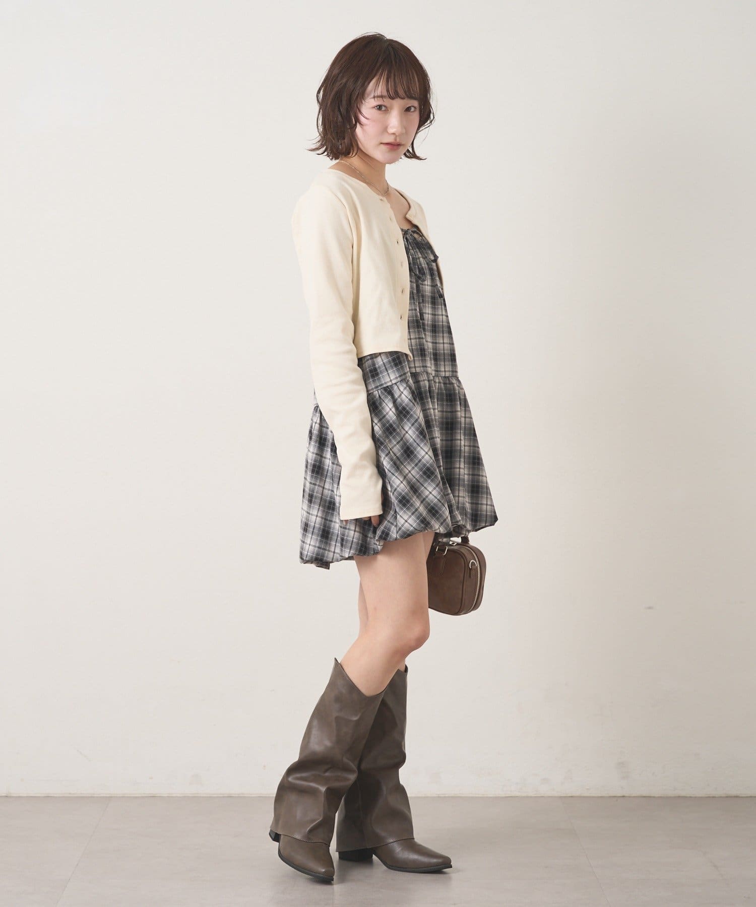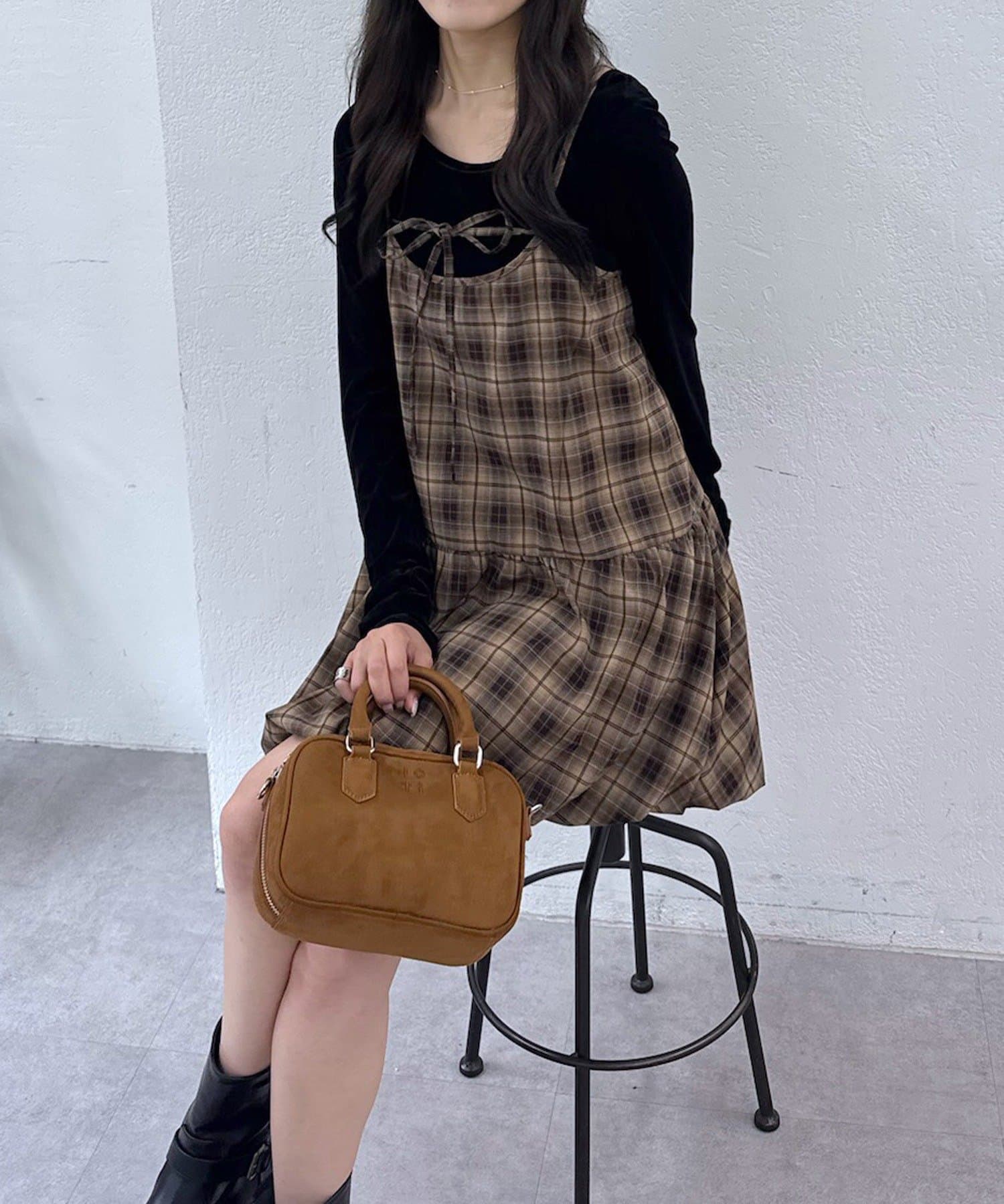 トレンド感満載のバルーンチェックキャミワンピで、旬のレイヤードスタイルを♡