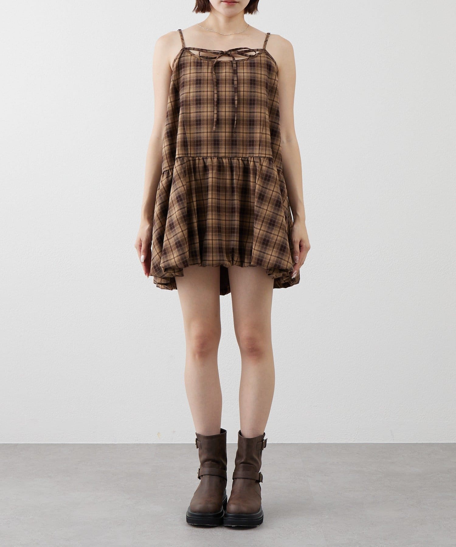 【SET FAIR対象】[mline]バルーンチェック キャミワンピ