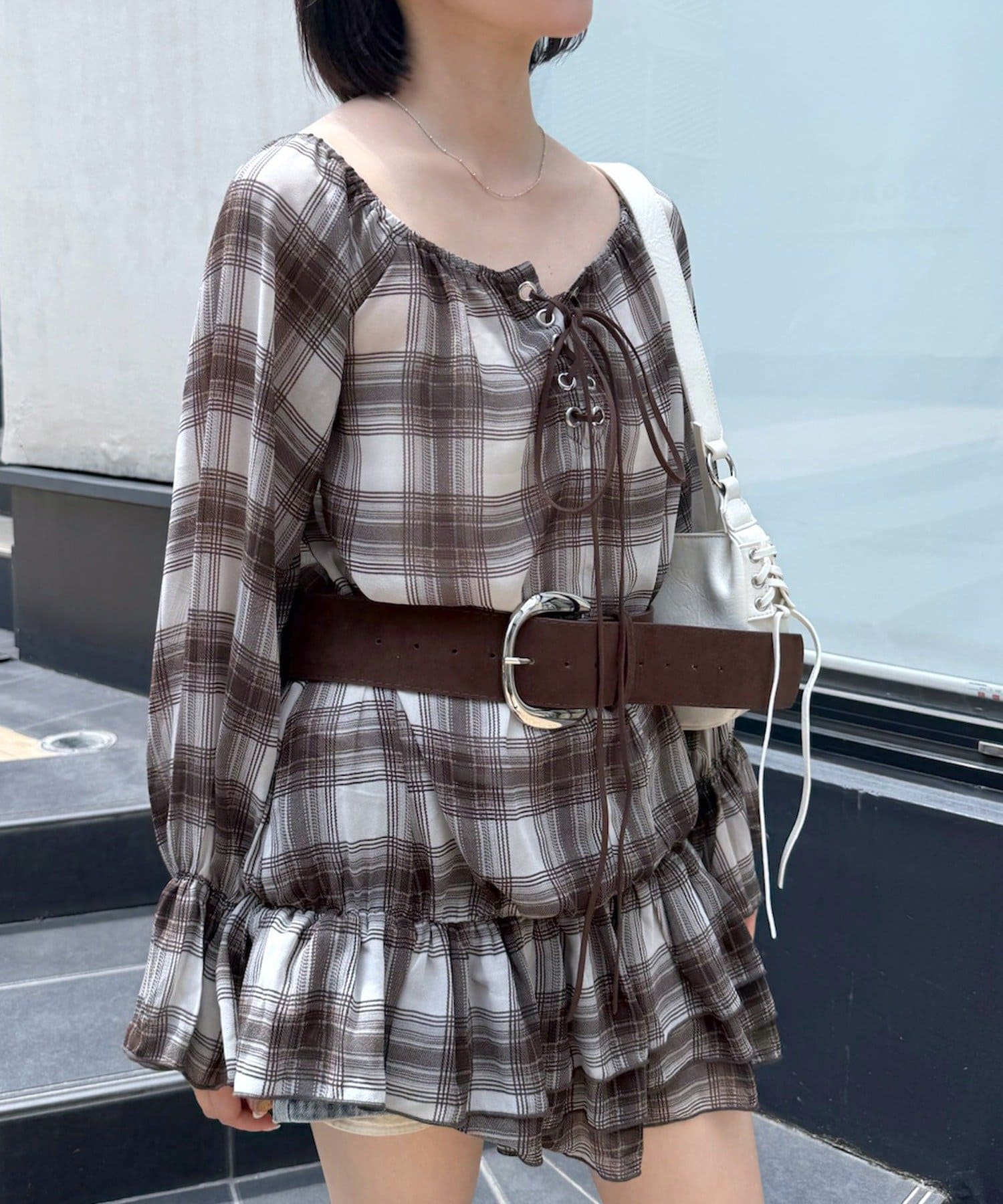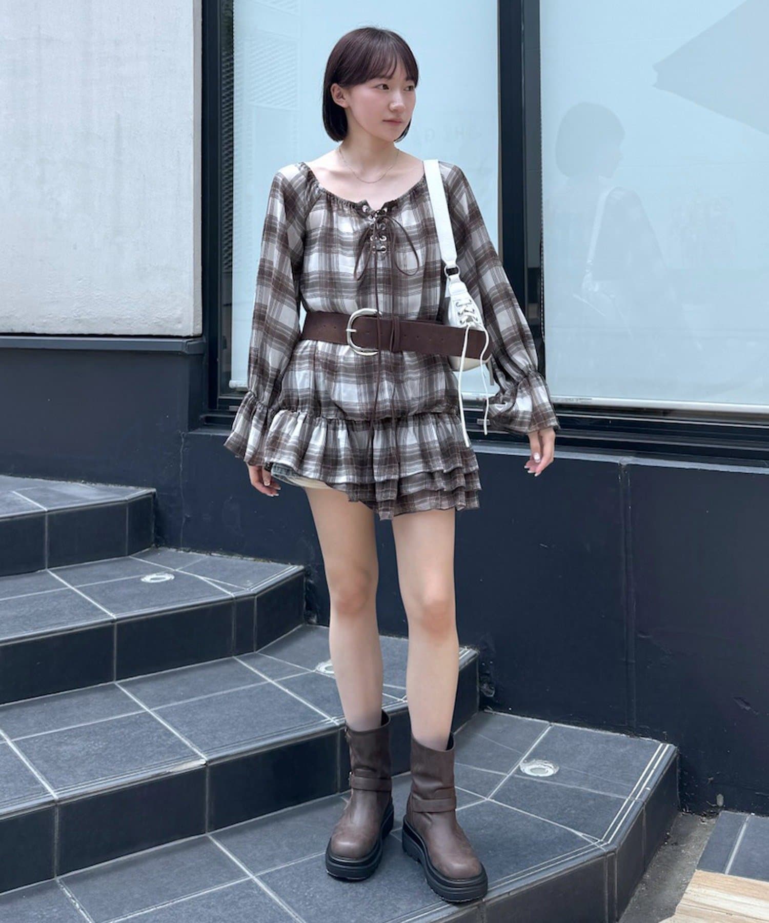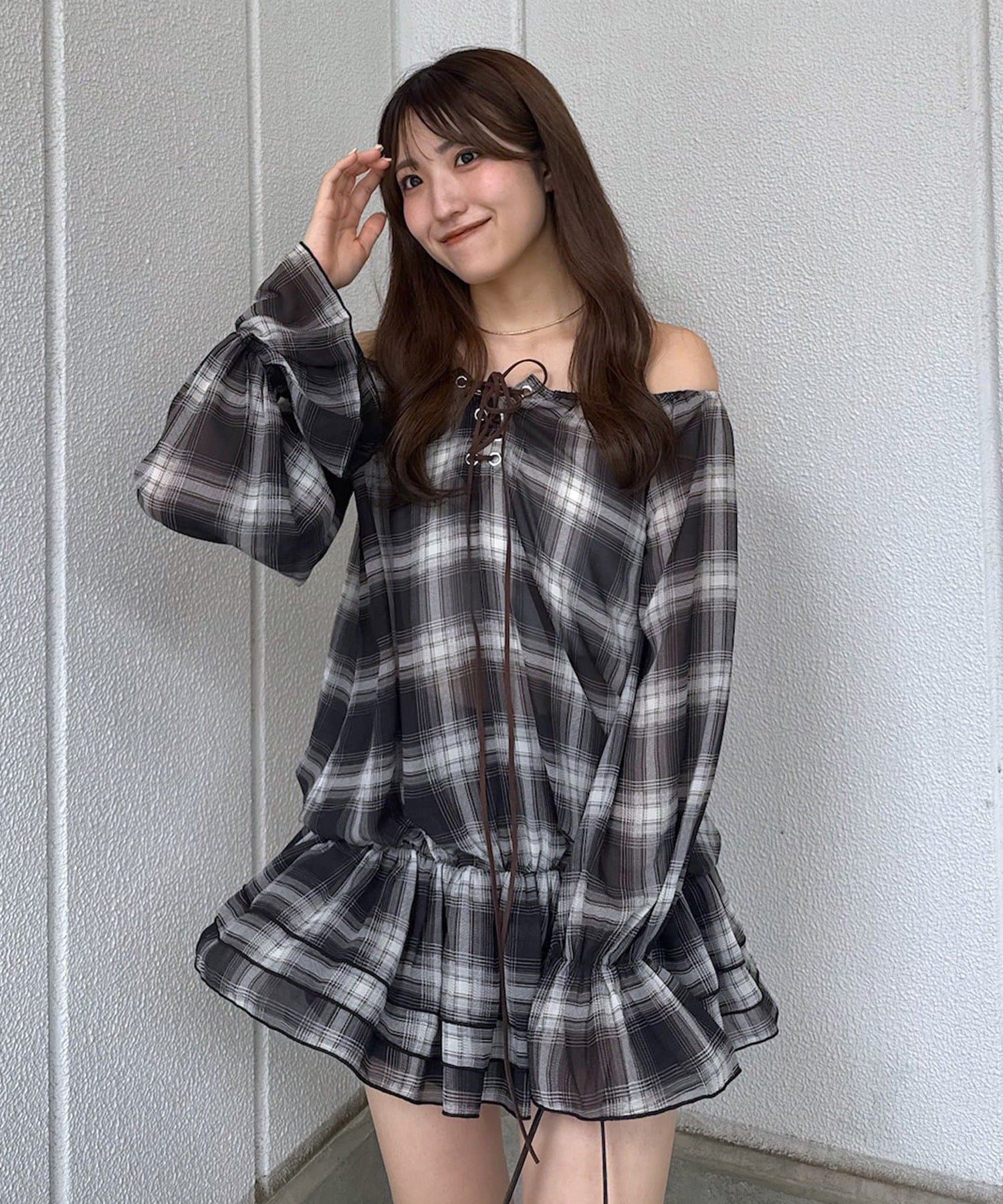 ボリュームスリーブでトレンド感をプラス◎レースアップフリルミニワンピが登場!