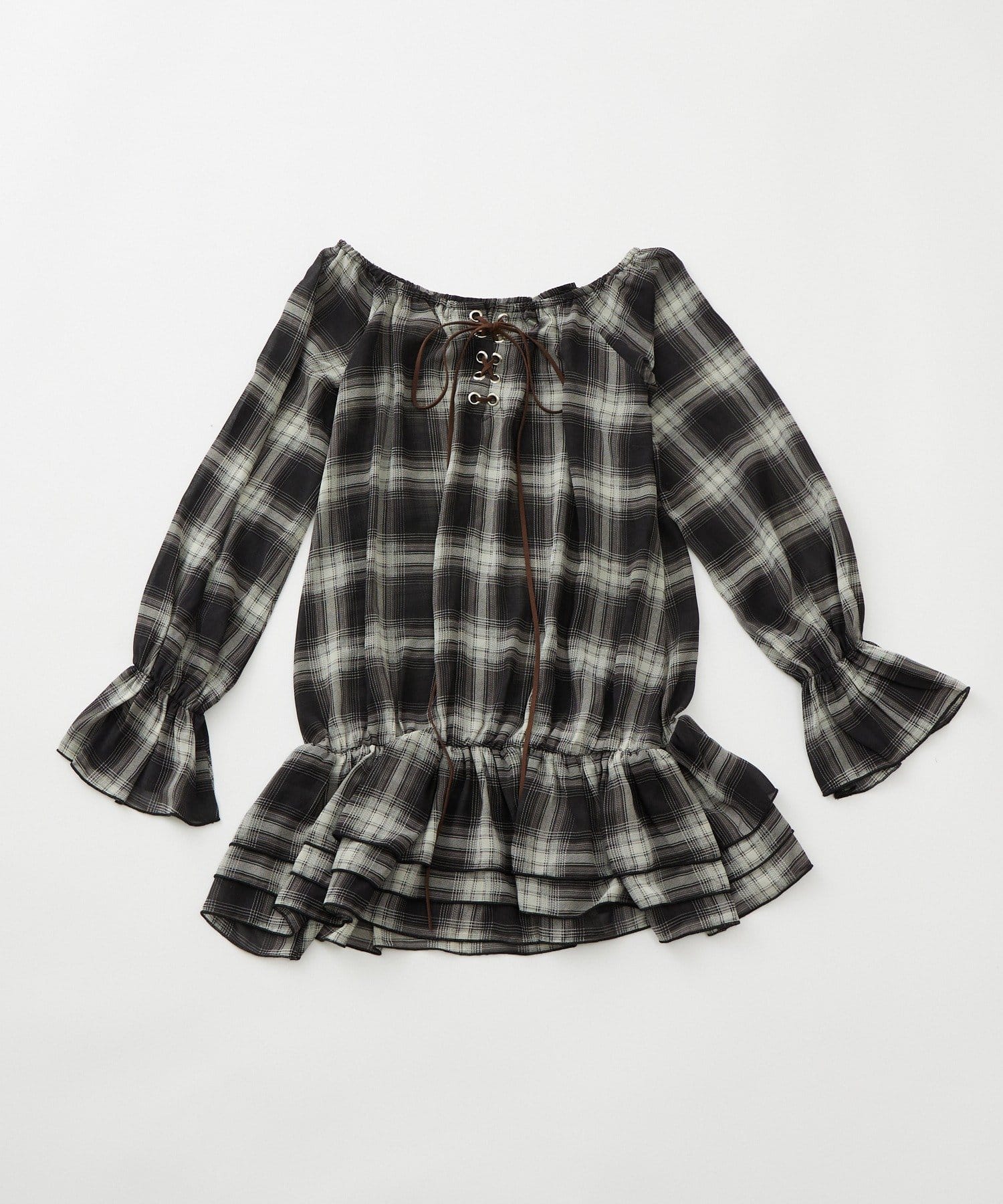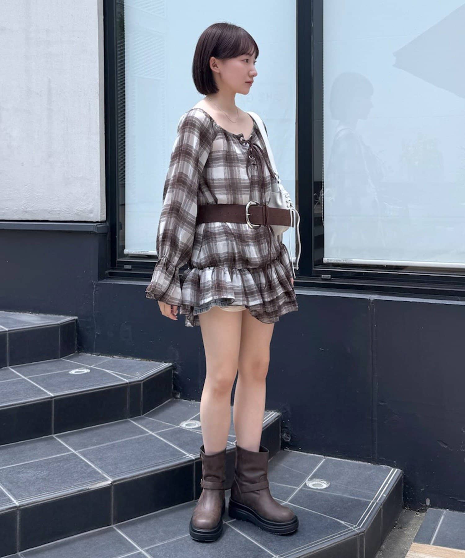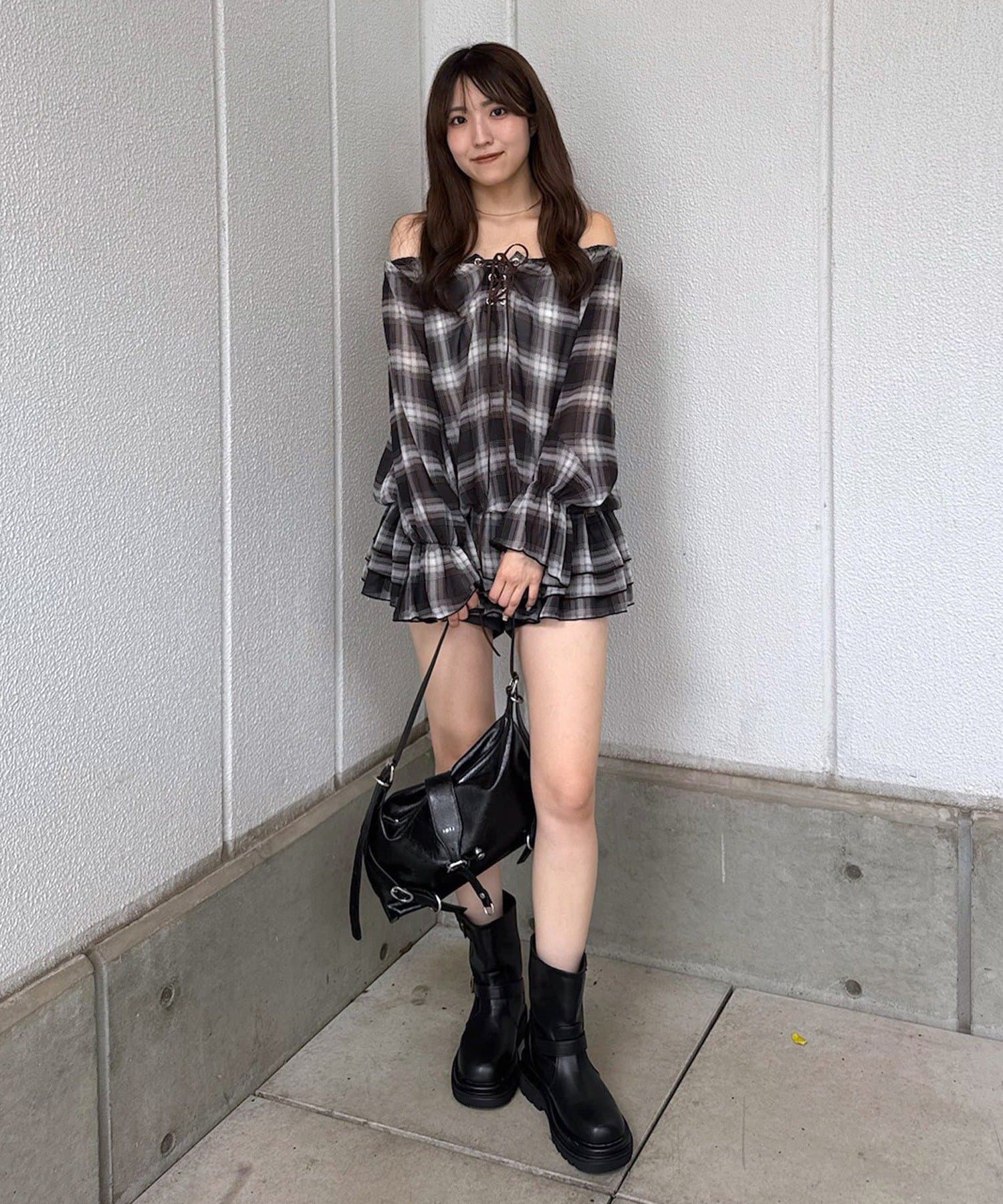 ボリュームスリーブでトレンド感をプラス◎レースアップフリルミニワンピが登場!