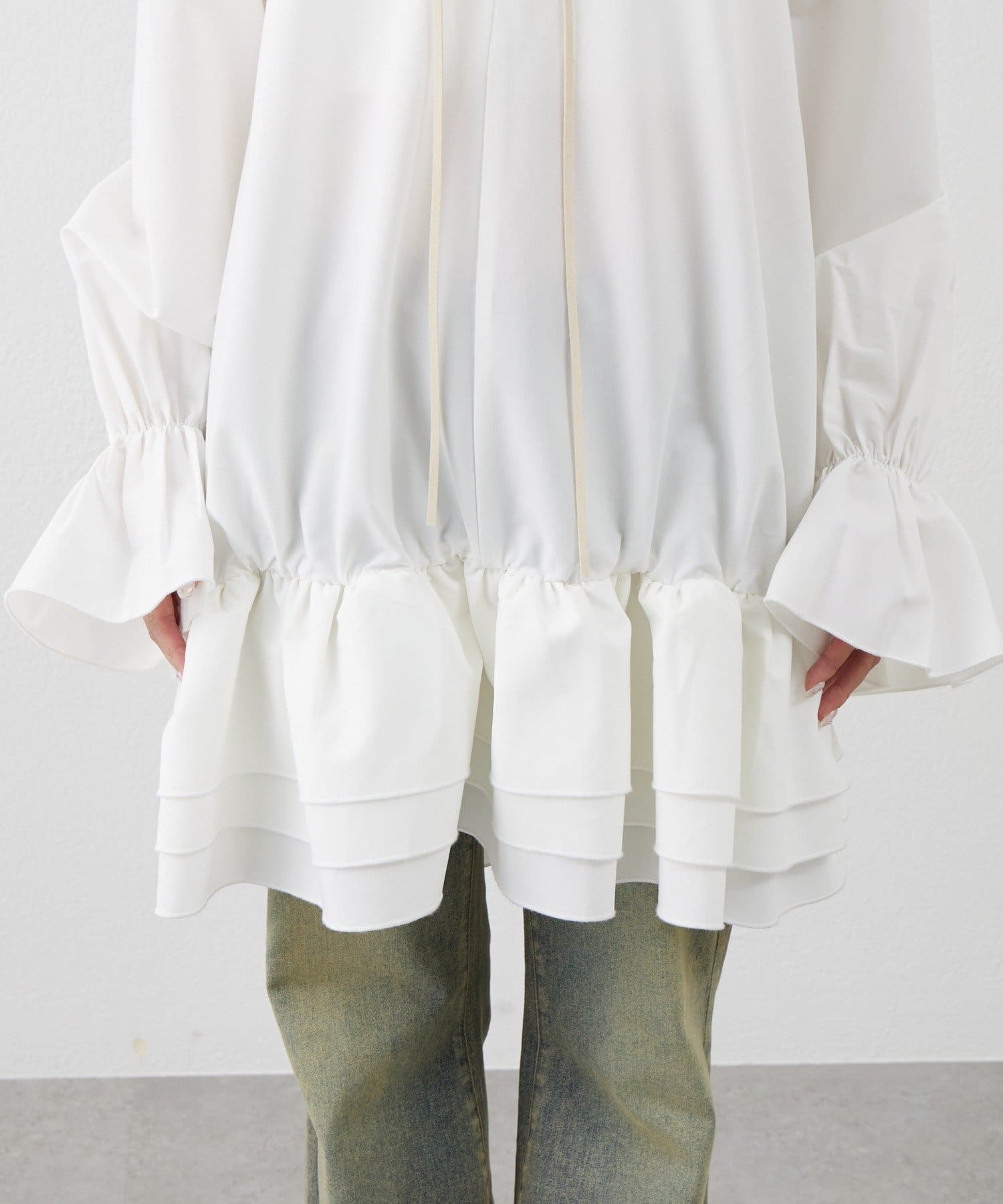 ・袖のボリューム感も、気になる二の腕をカバーしつつ、トレンド感を演出します。
