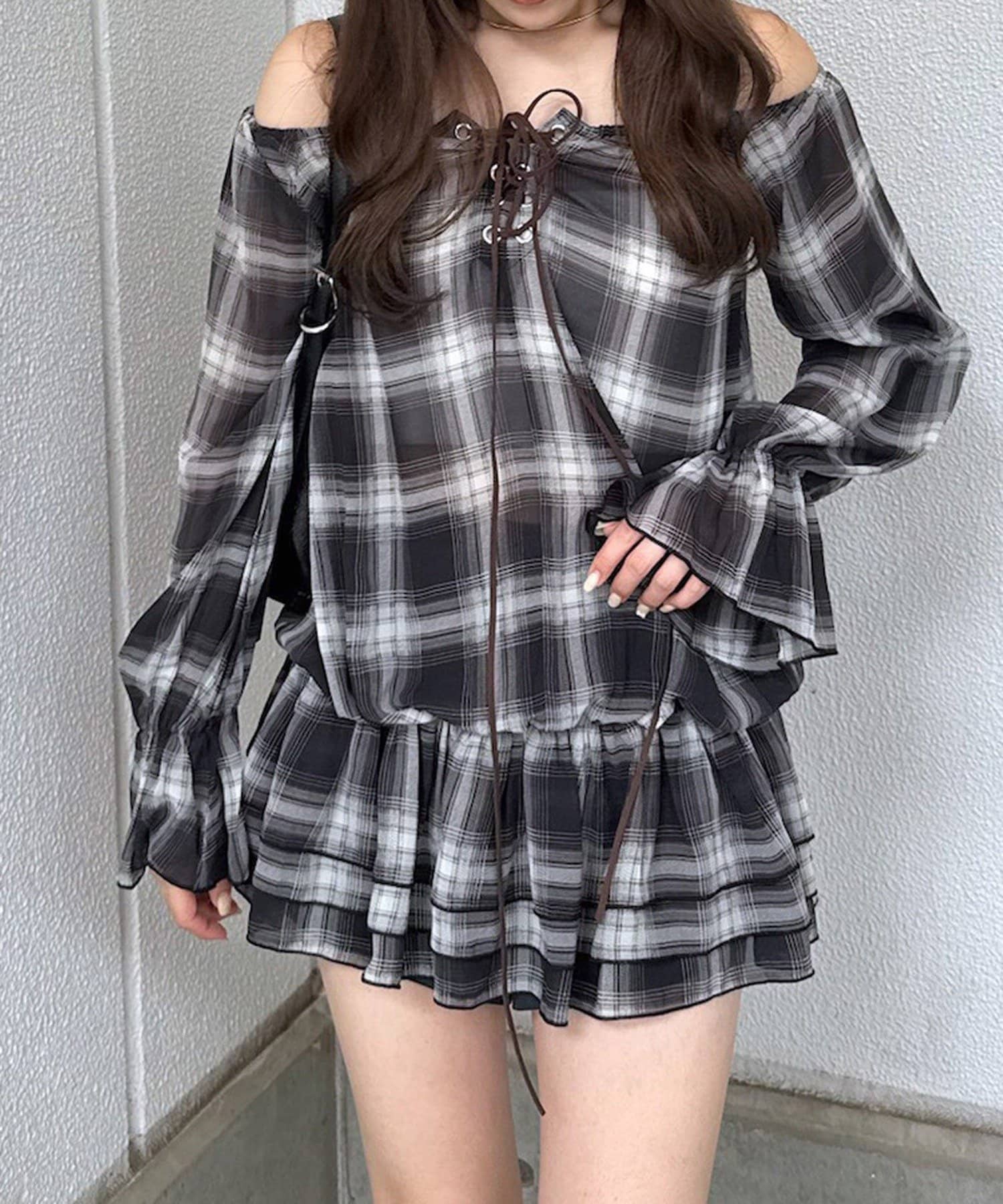 【SET FAIR対象】[mline]レースアップ フリルミニワンピ
