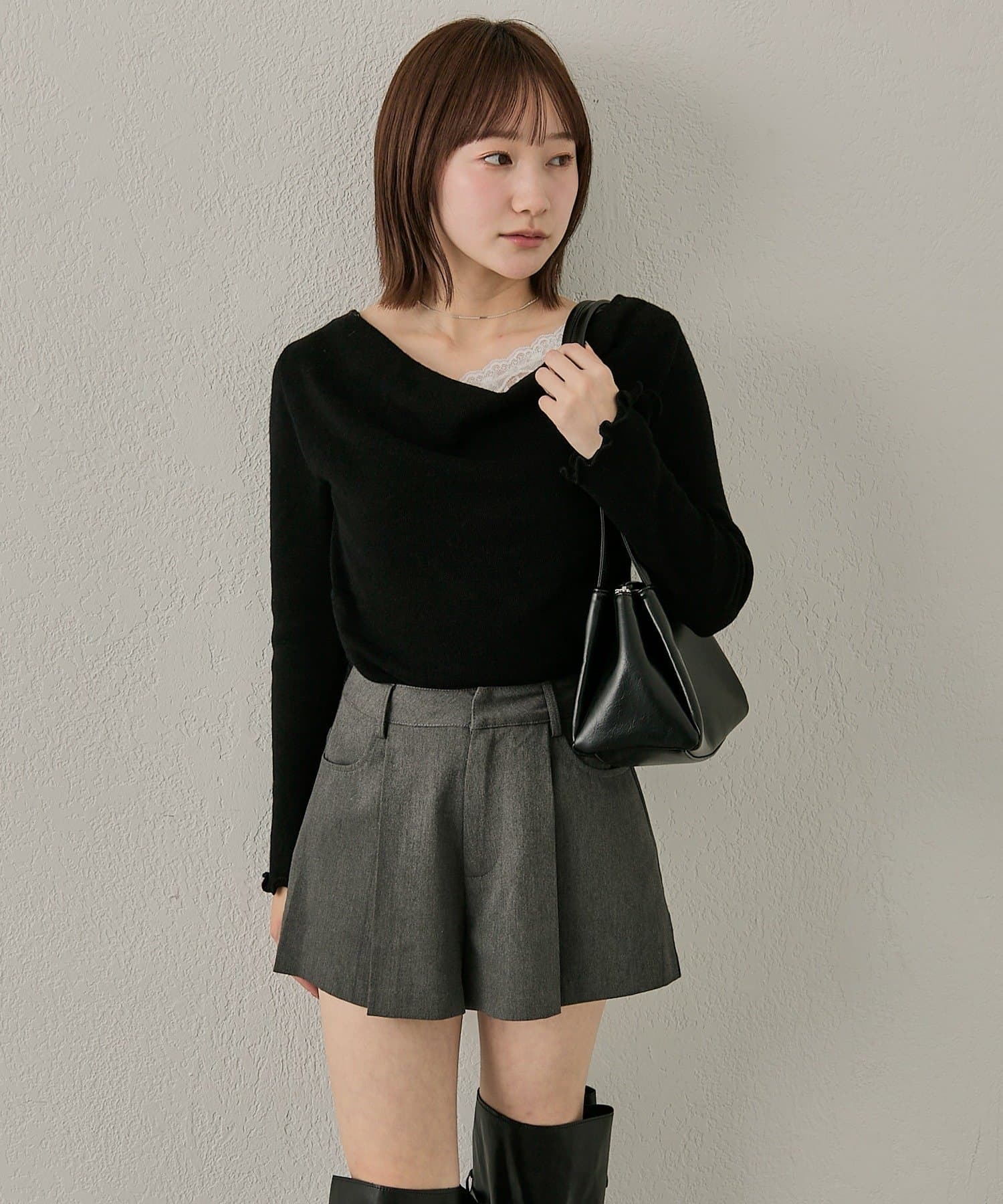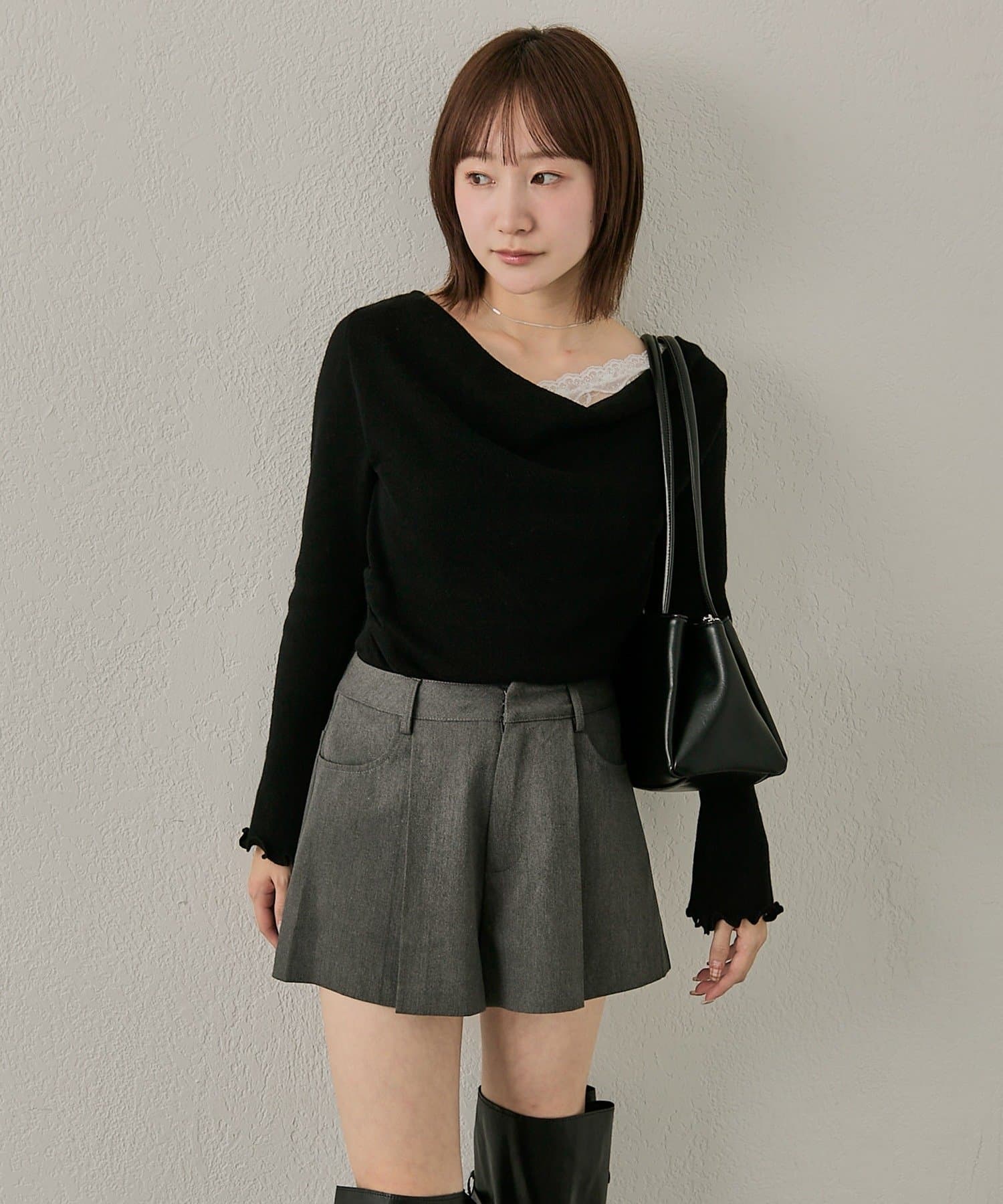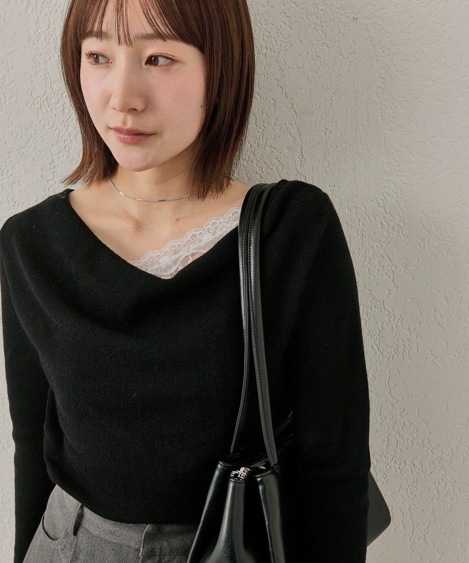 レースレイヤードがキュートな大人っぽオフショルニット♡