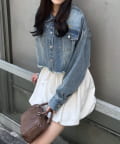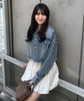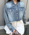 定番アイテムをトレンド感あふれるシルエットでUPDATE!ロゴショートデニムジャケットが登場♡