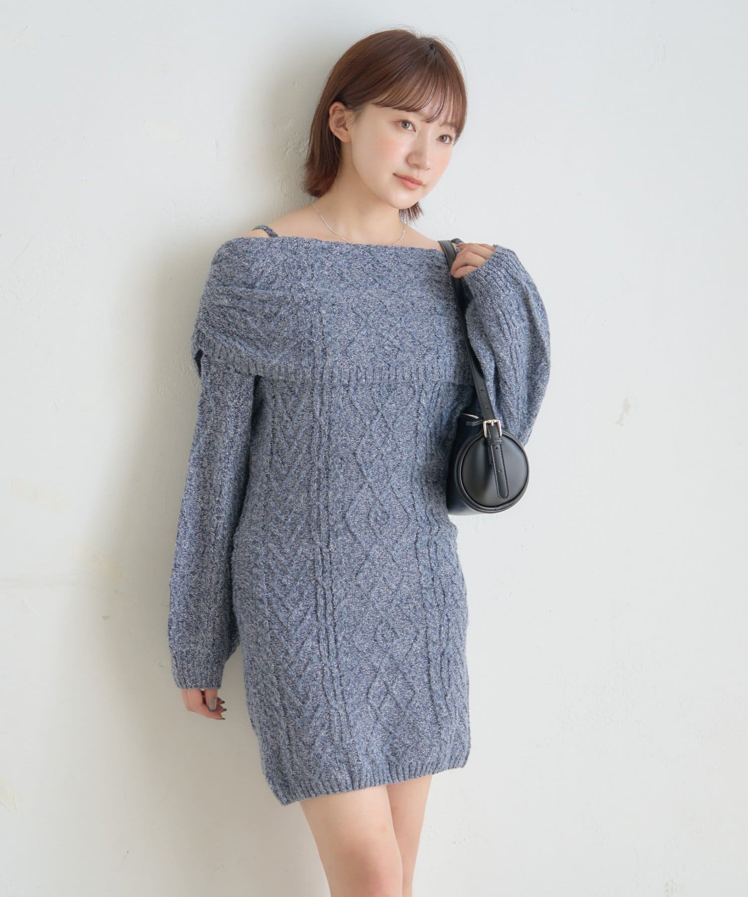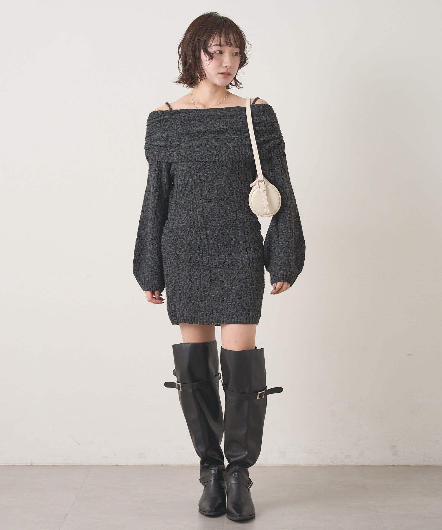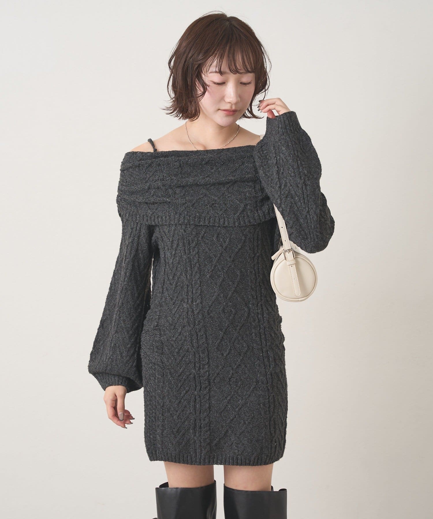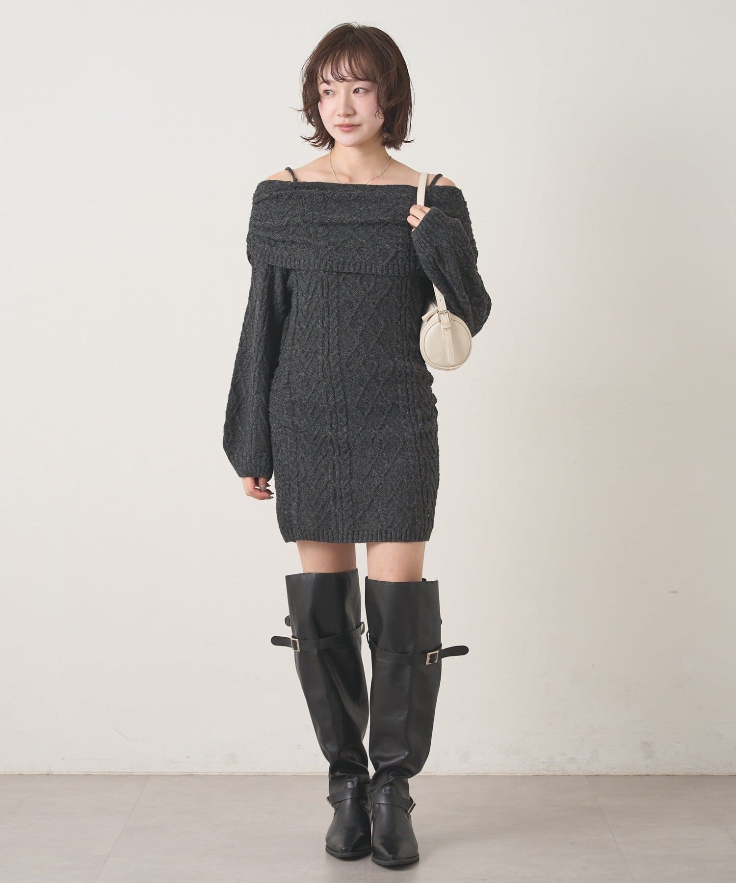 ケーブル編みがかわいい♡オフショルニットワンピが登場