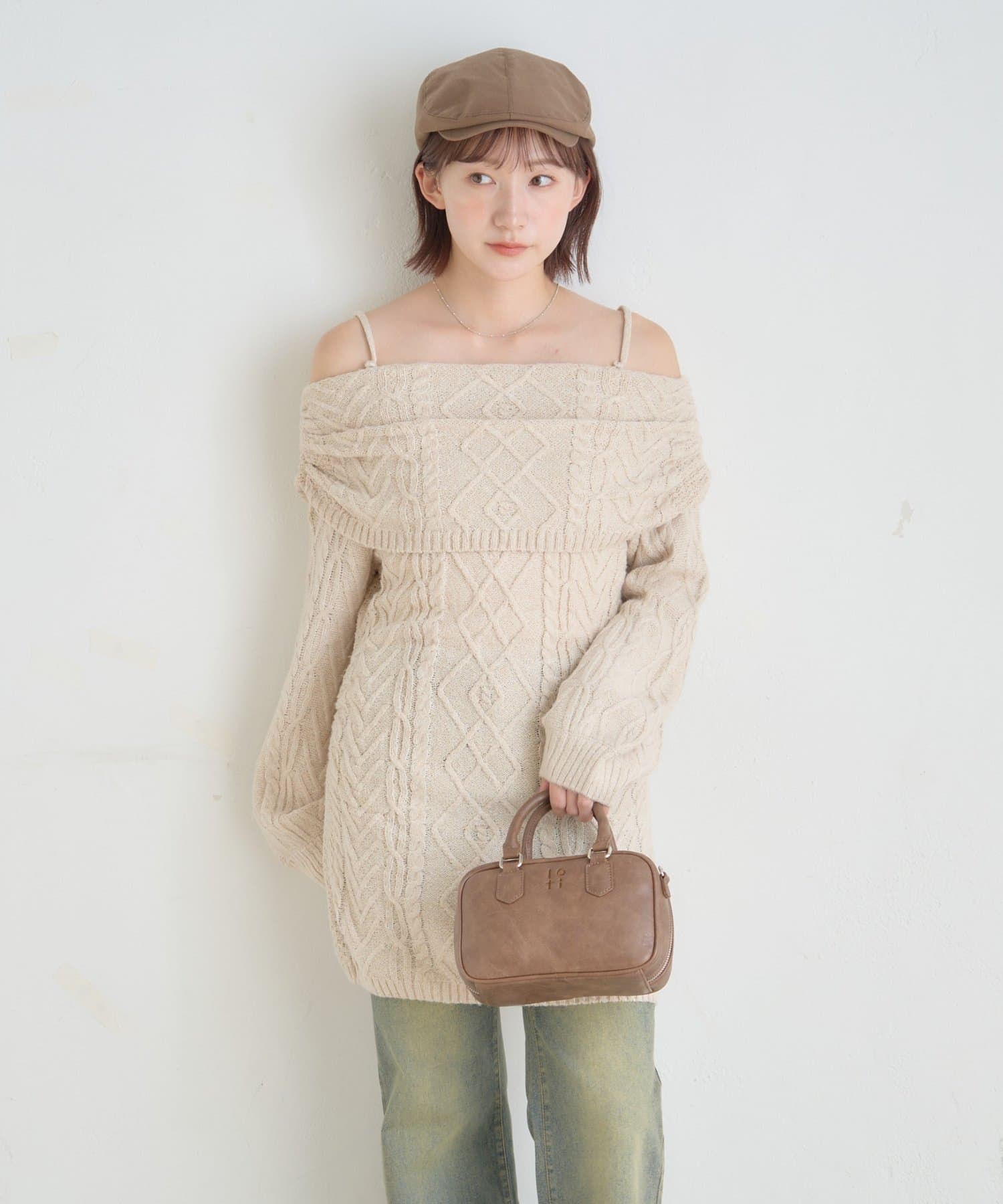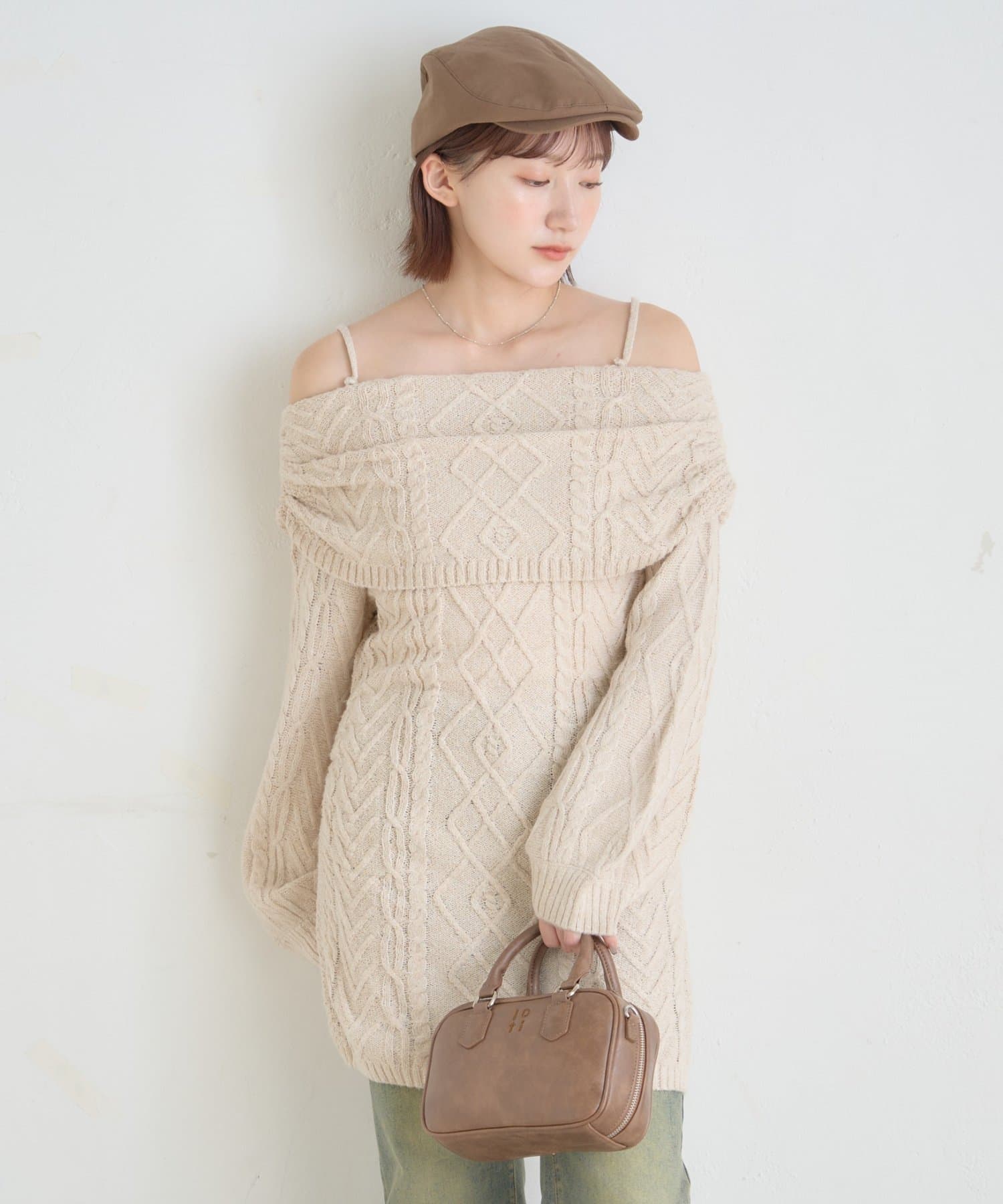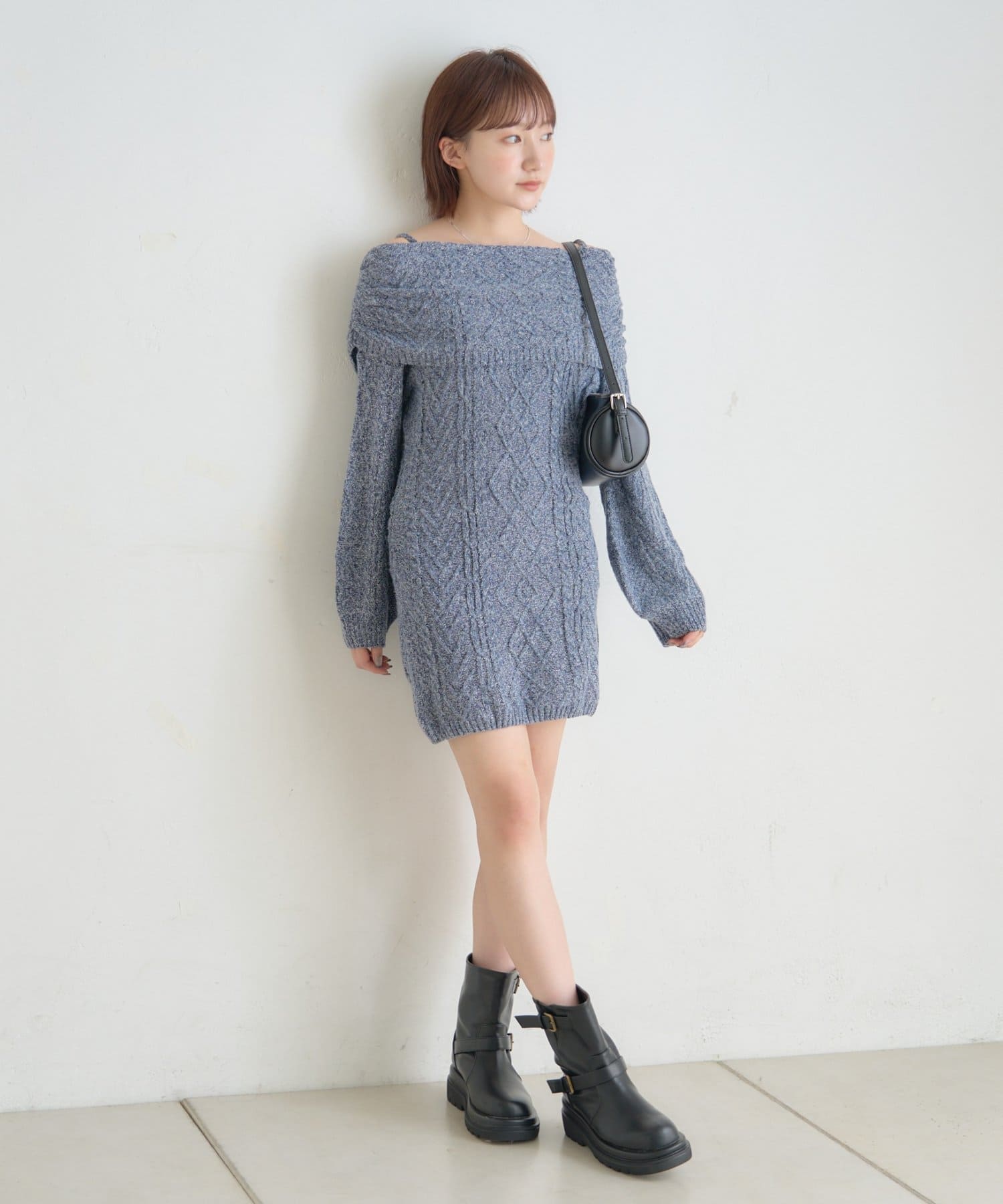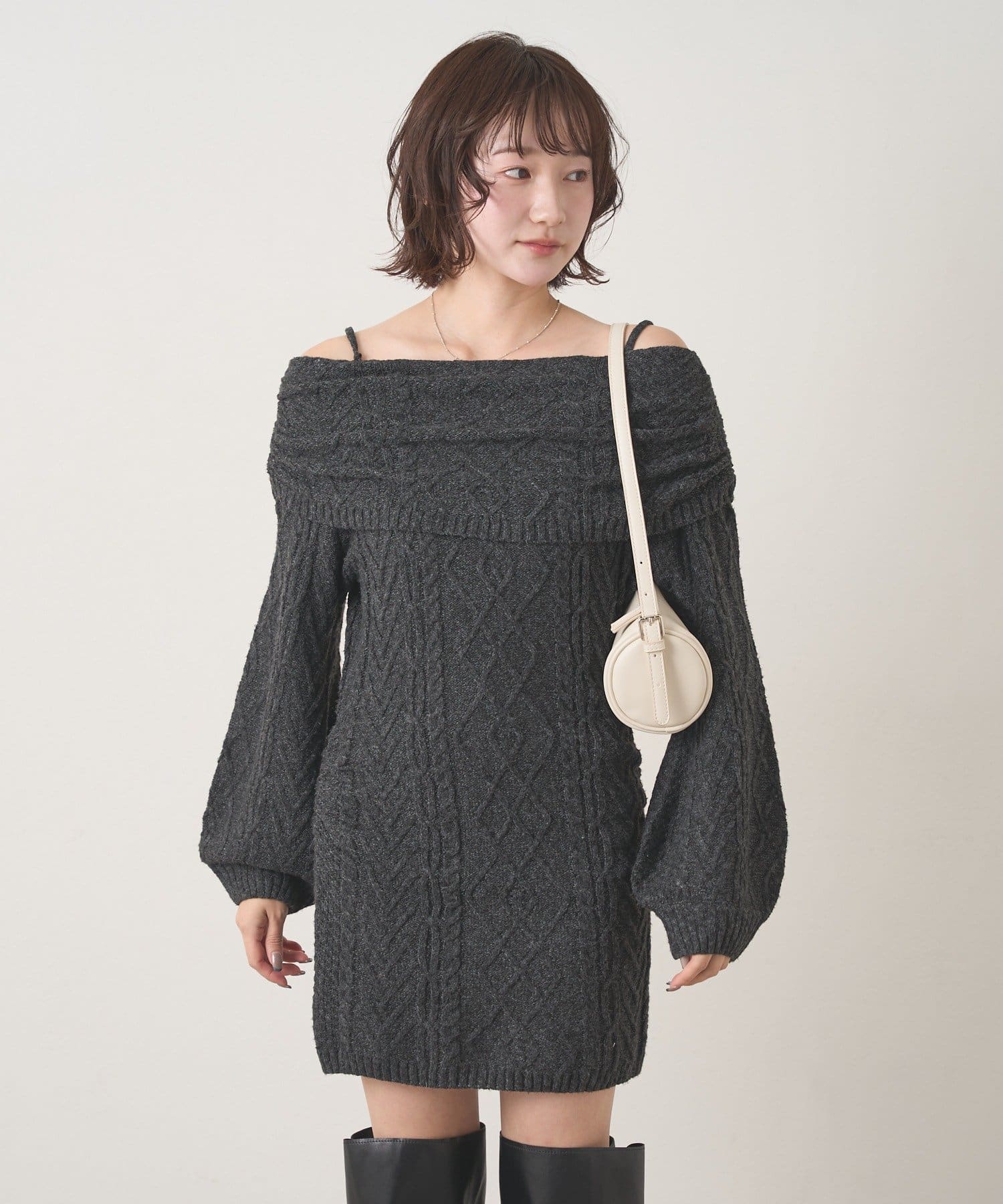 ケーブル編みがかわいい♡オフショルニットワンピが登場