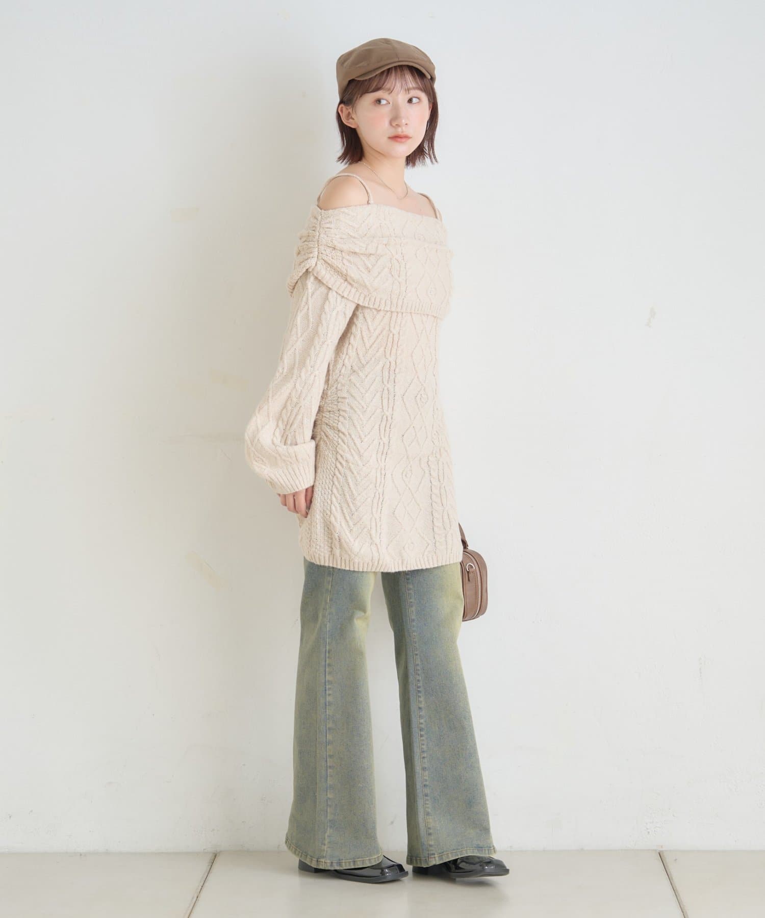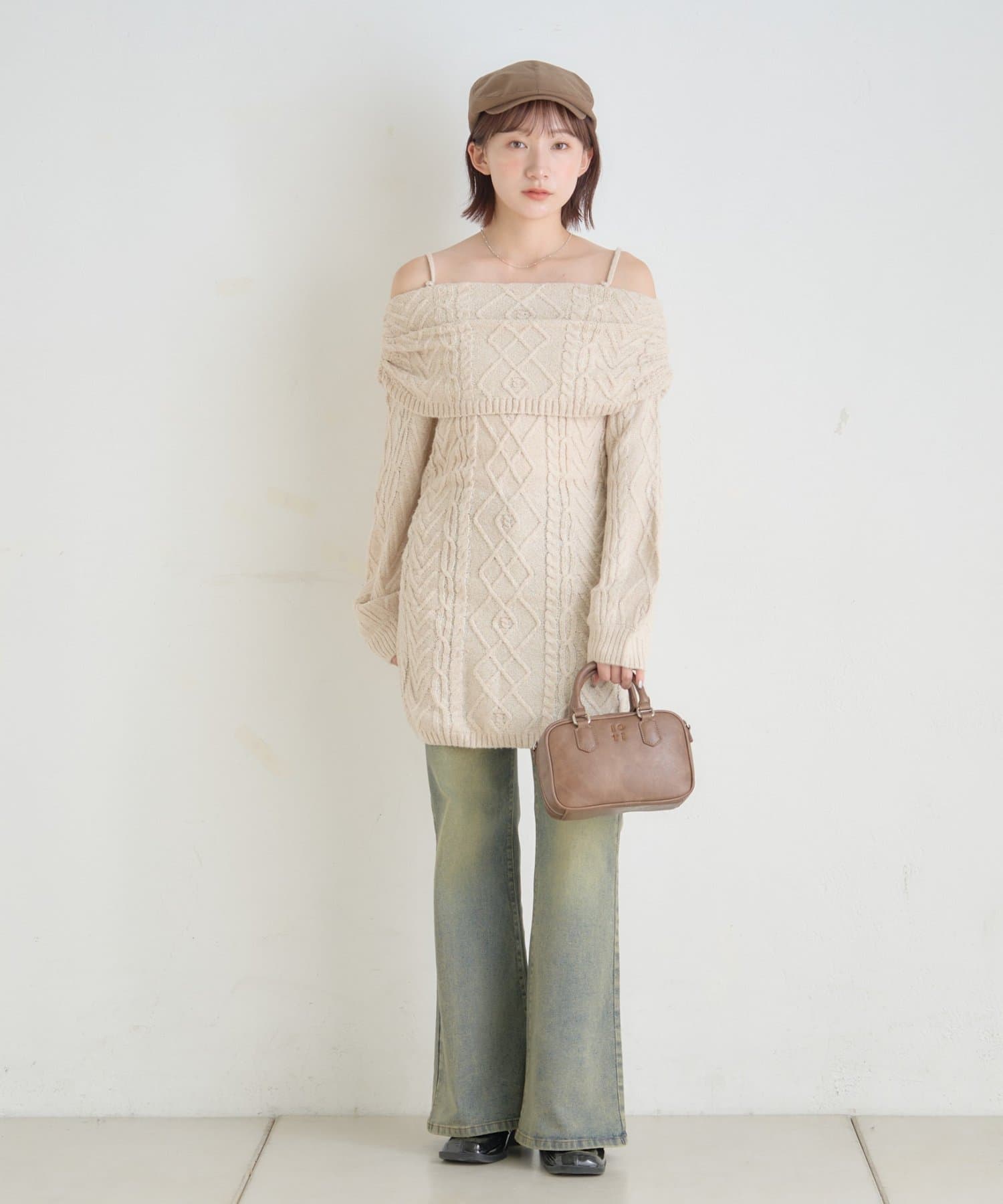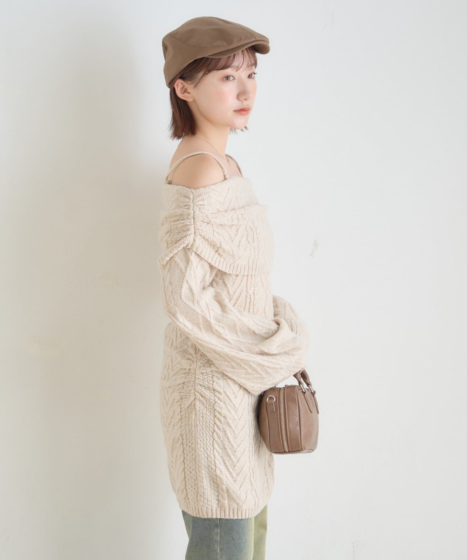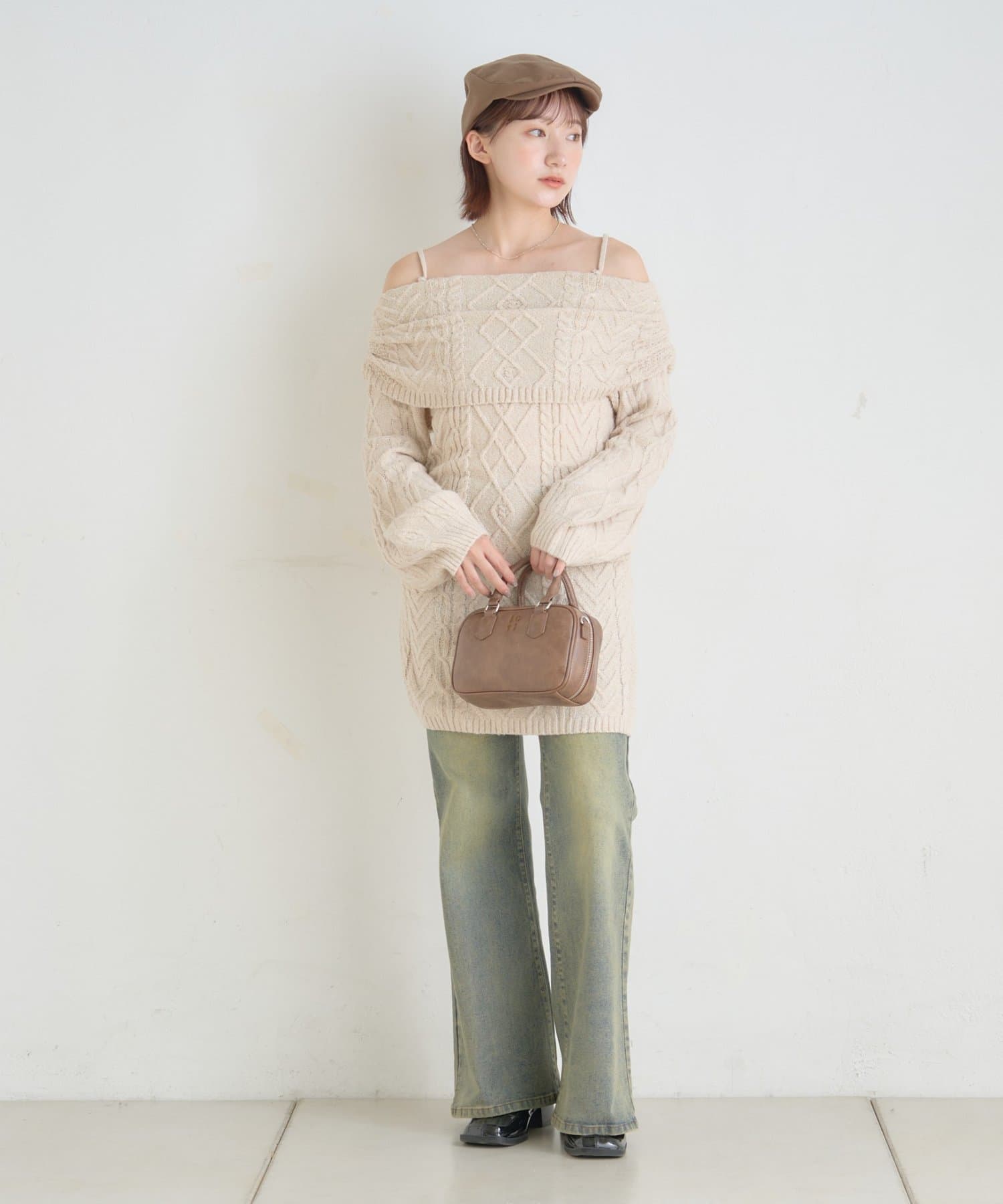 ケーブル編みがかわいい♡オフショルニットワンピが登場