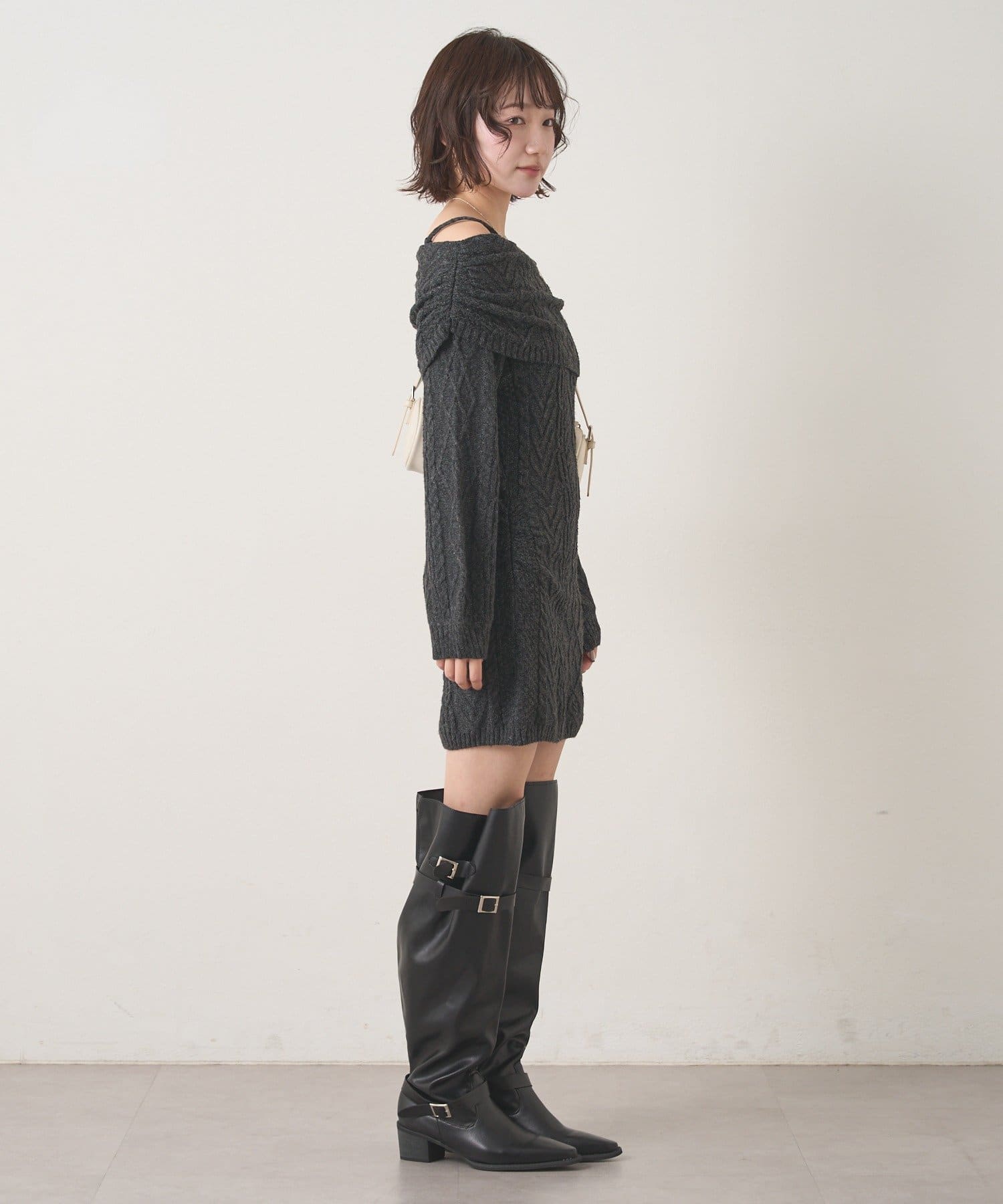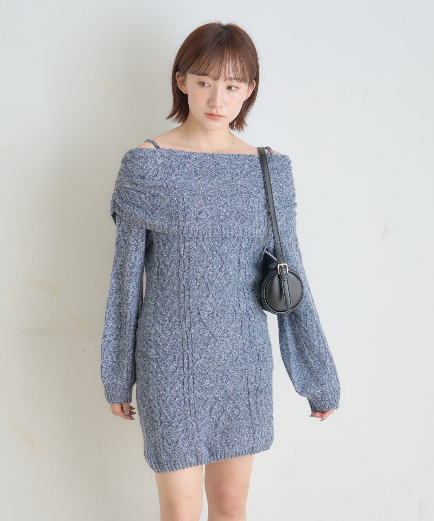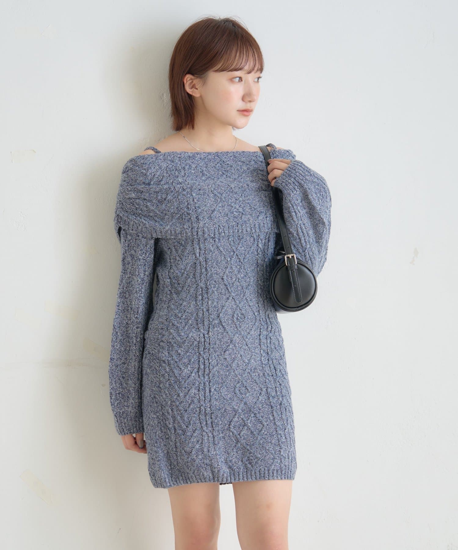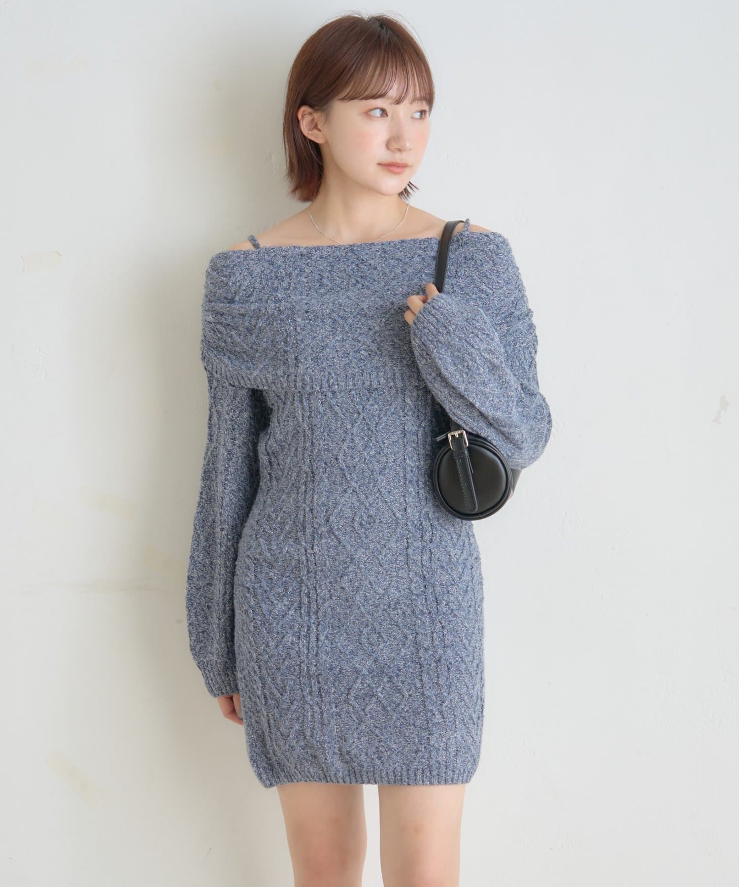 【mystic】[mline]オフショル ケーブルニットワンピース