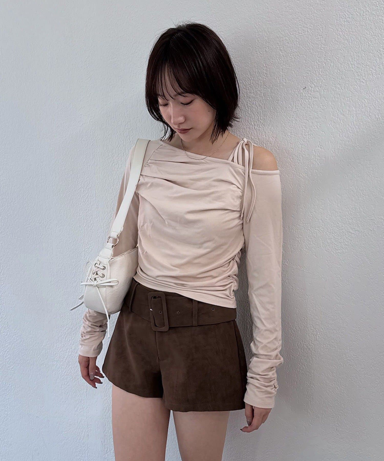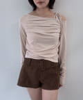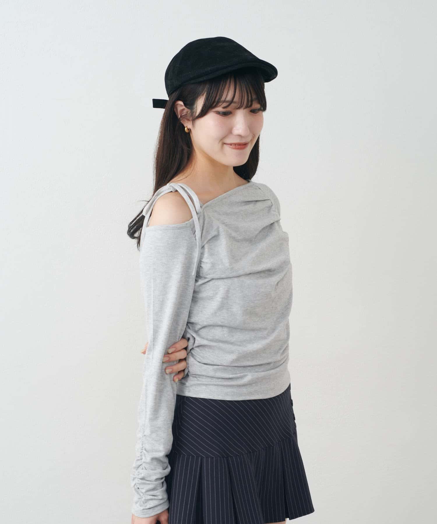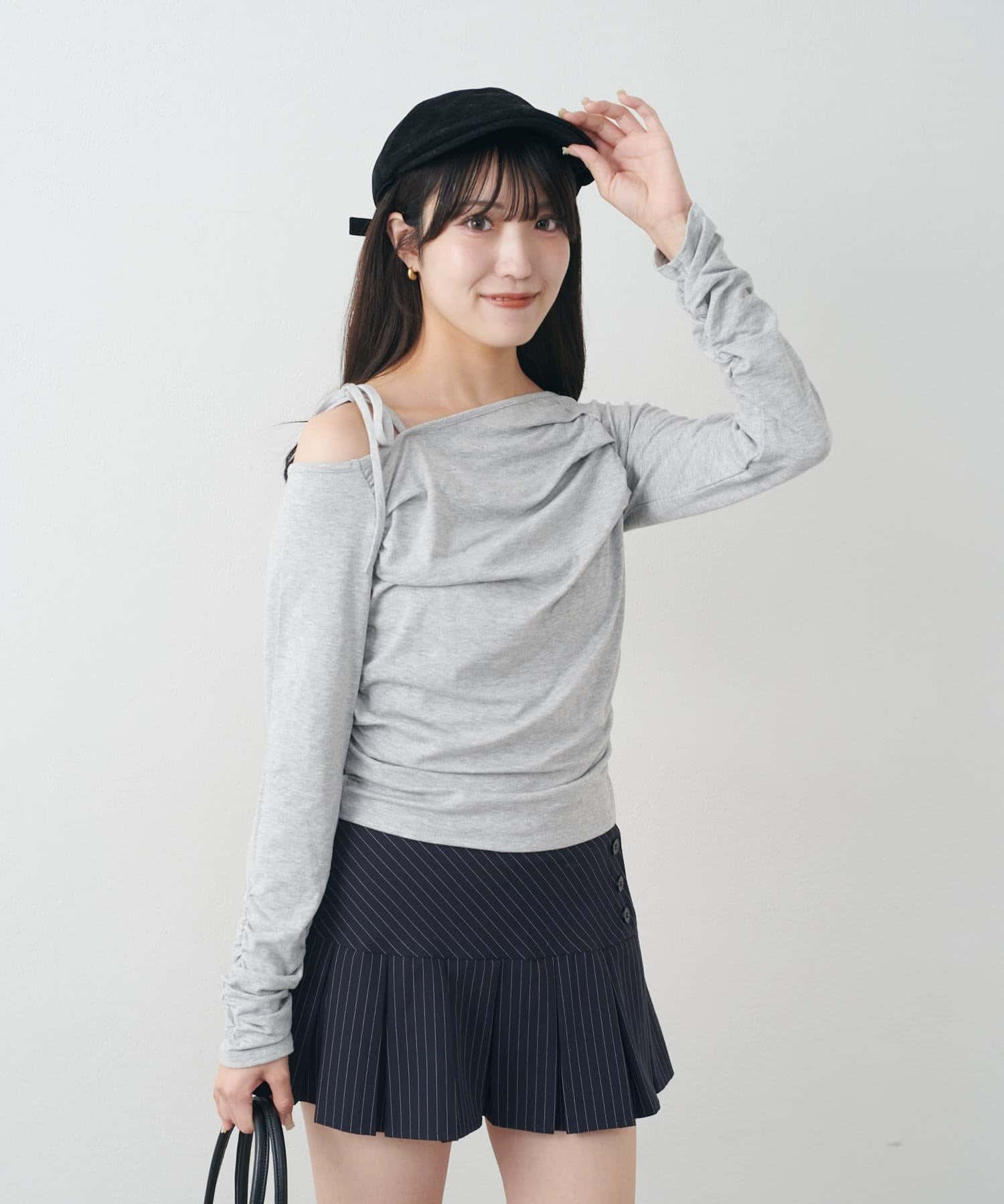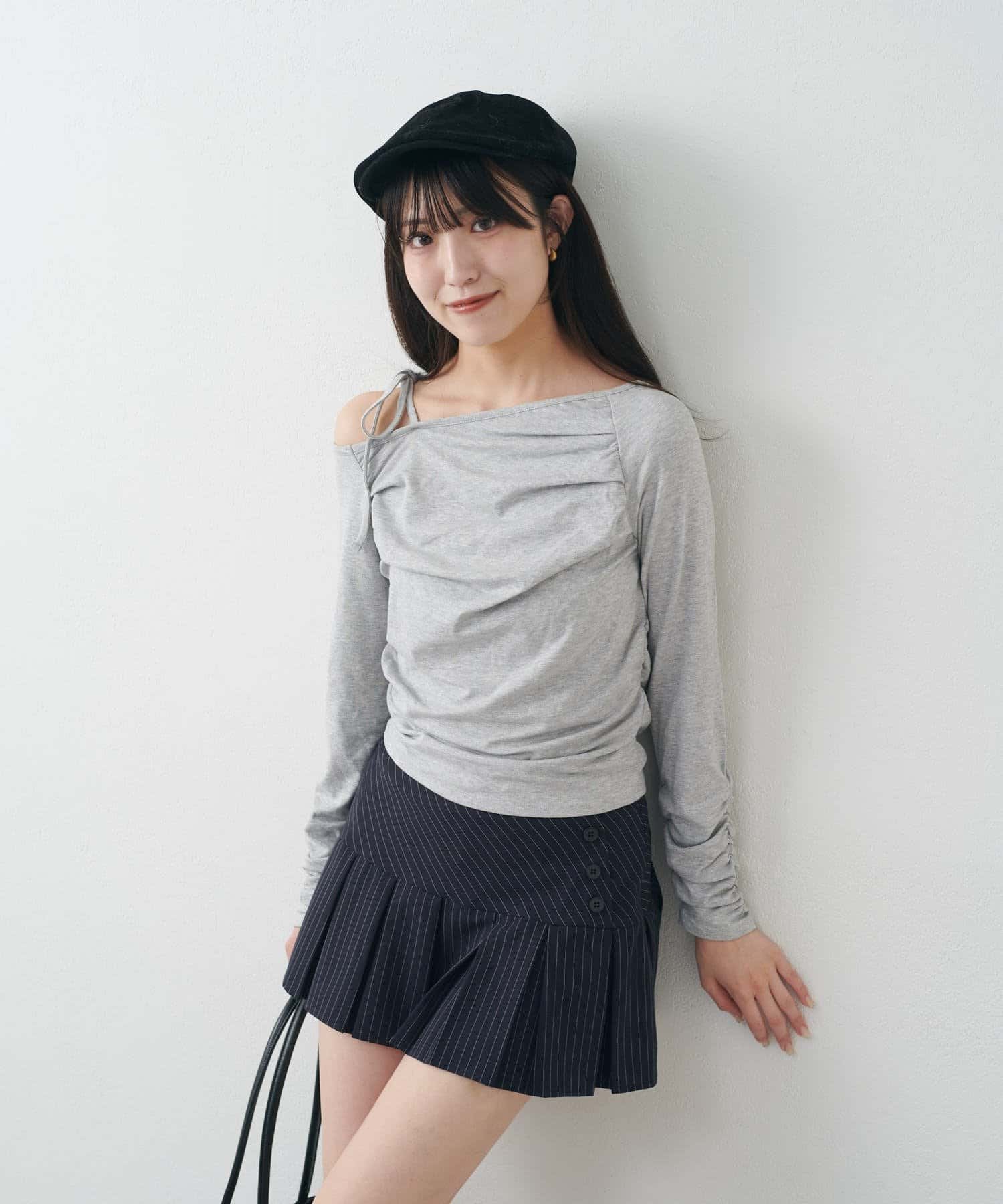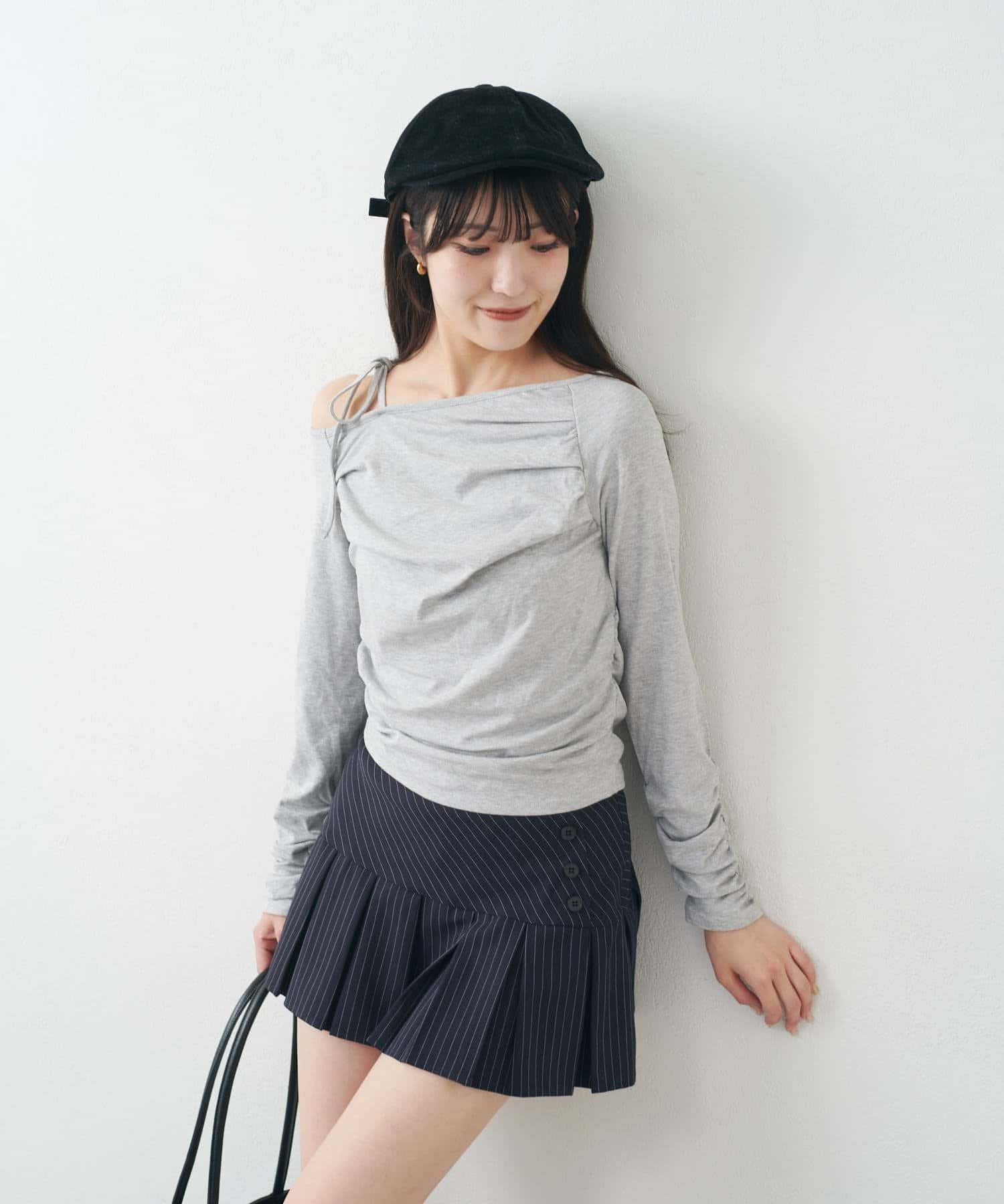 ドロストデザインが目を引く♡1枚で決まるオフショルカットソーが登場♡