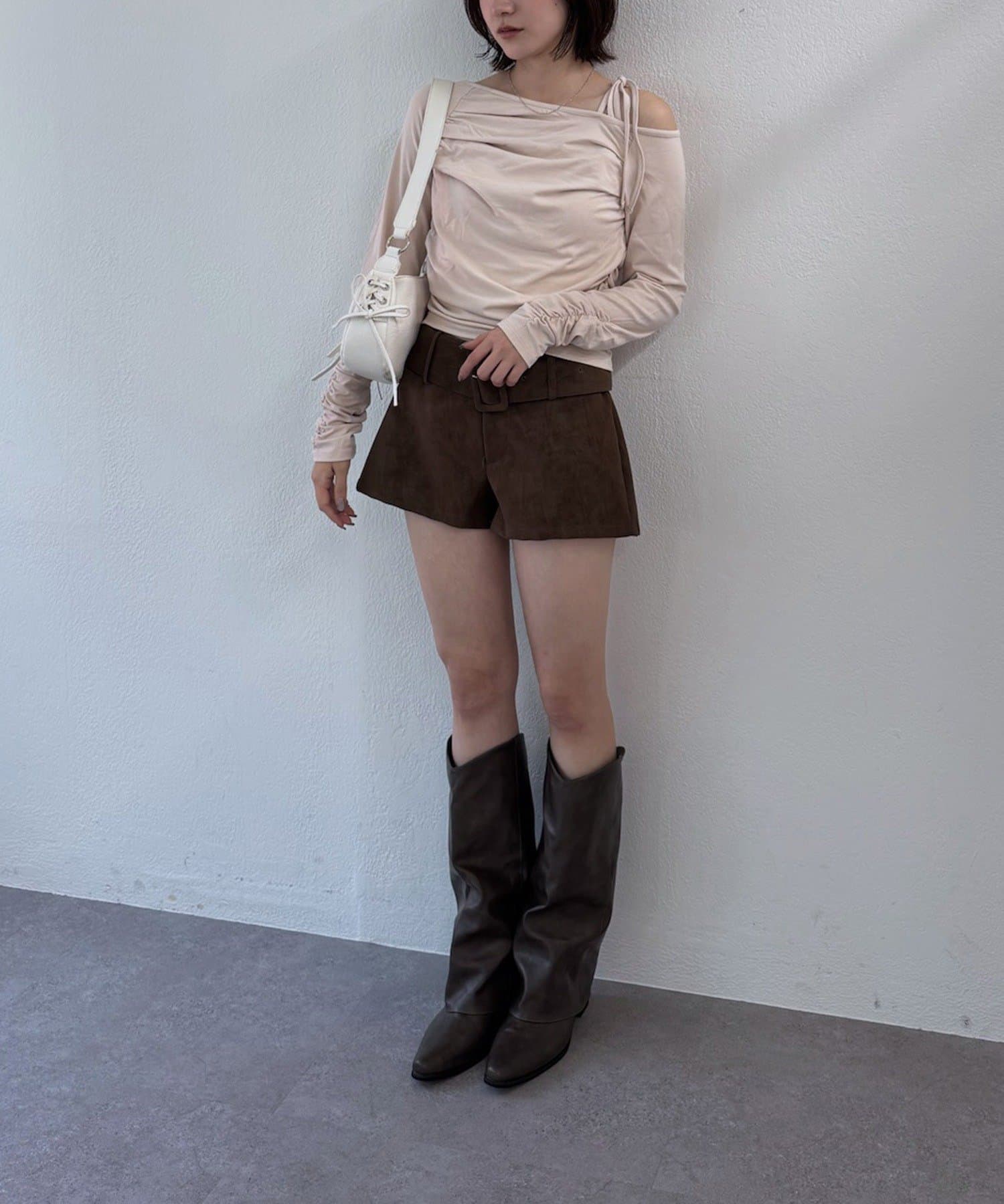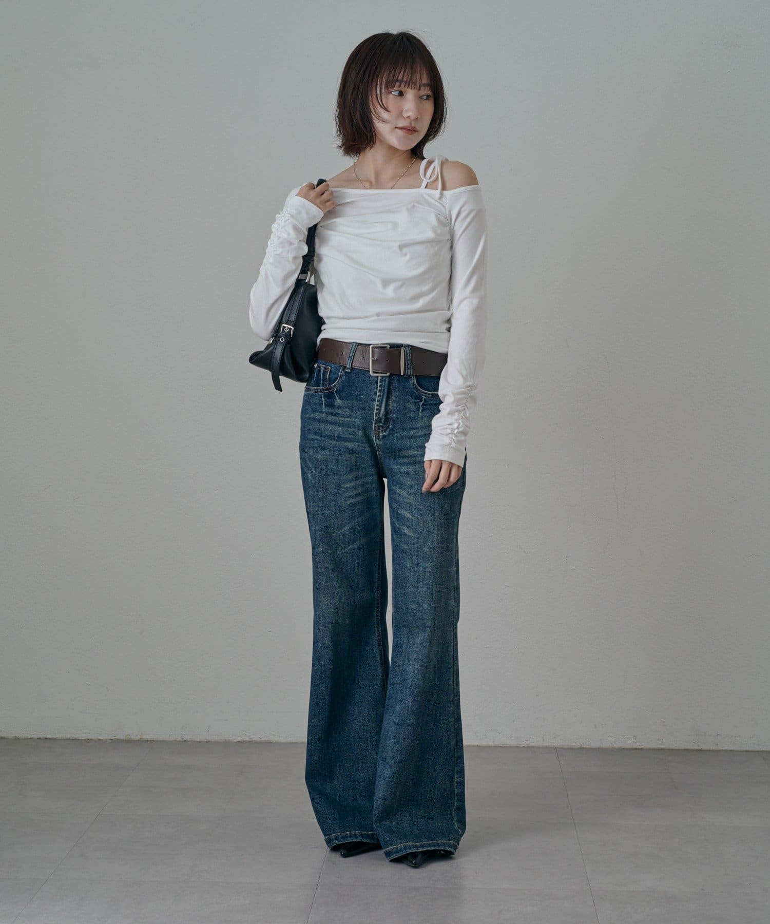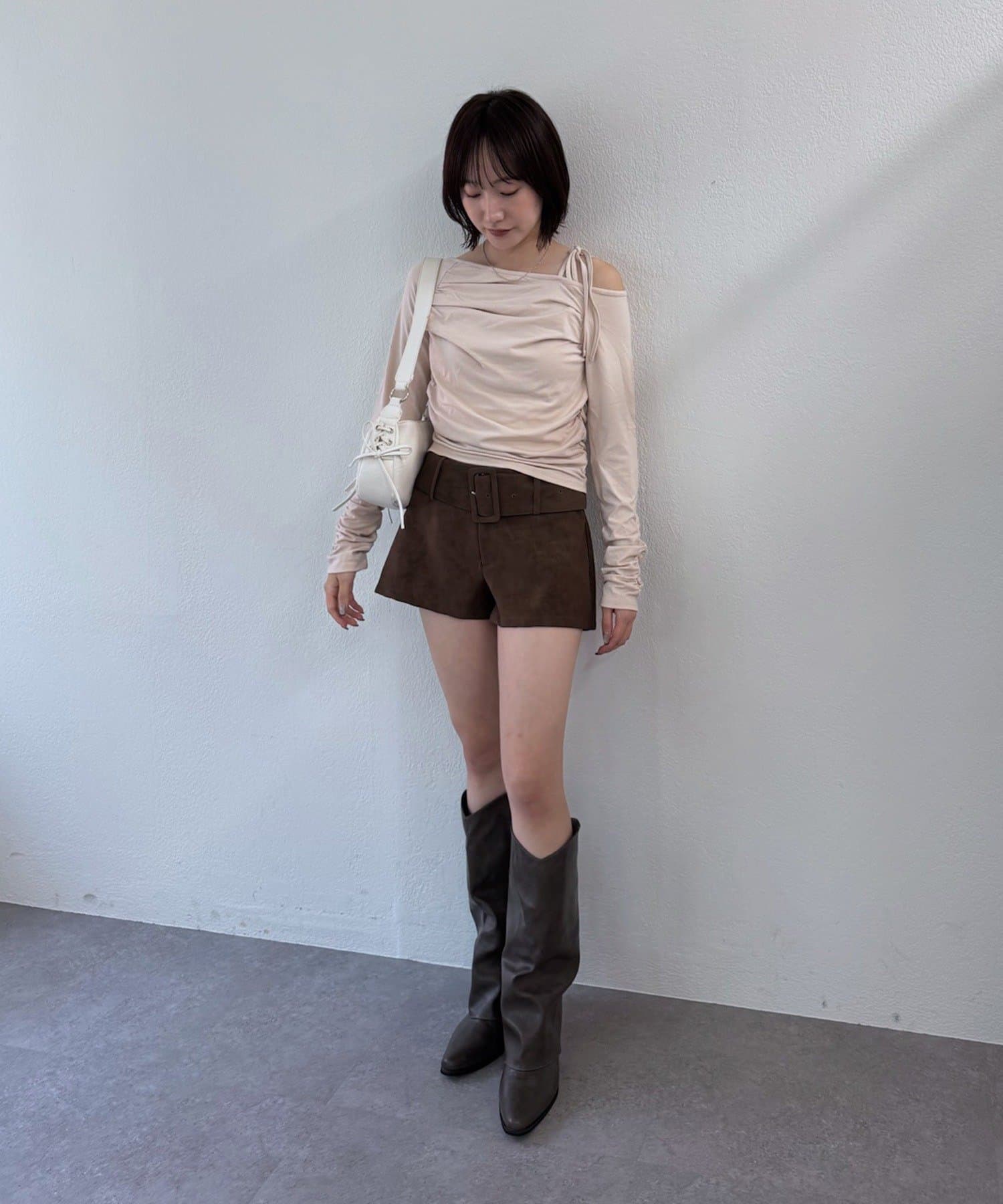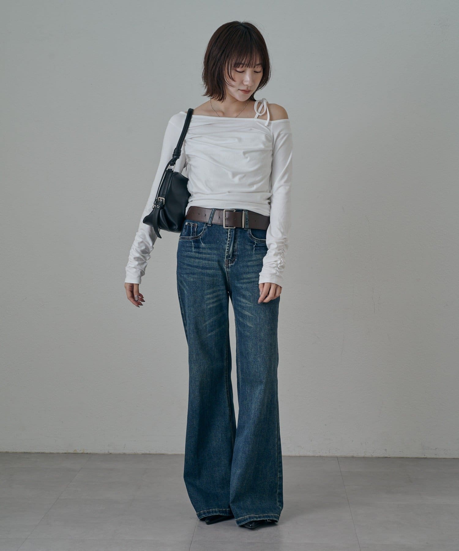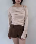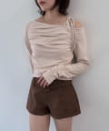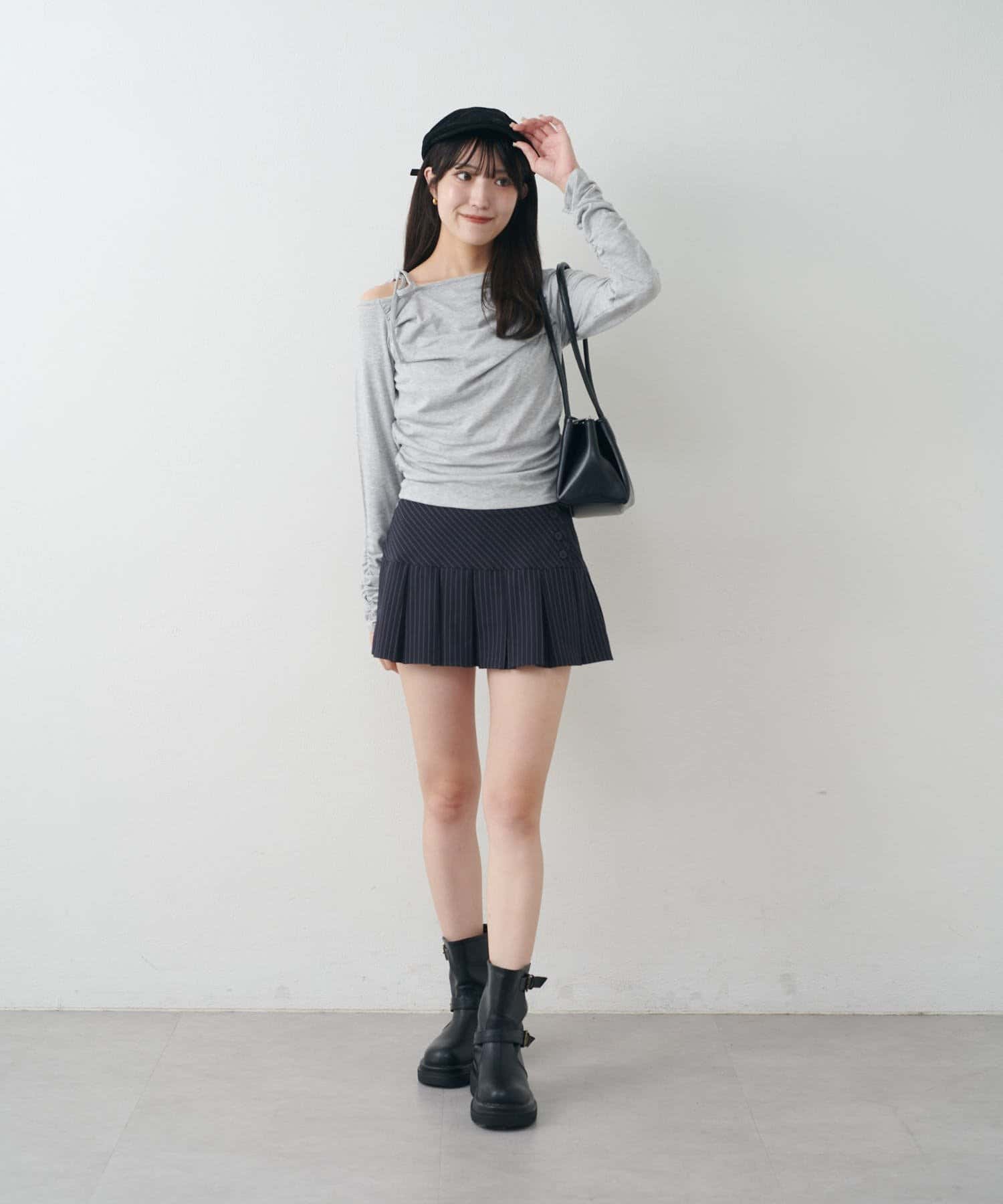 ドロストデザインが目を引く♡1枚で決まるオフショルカットソーが登場♡