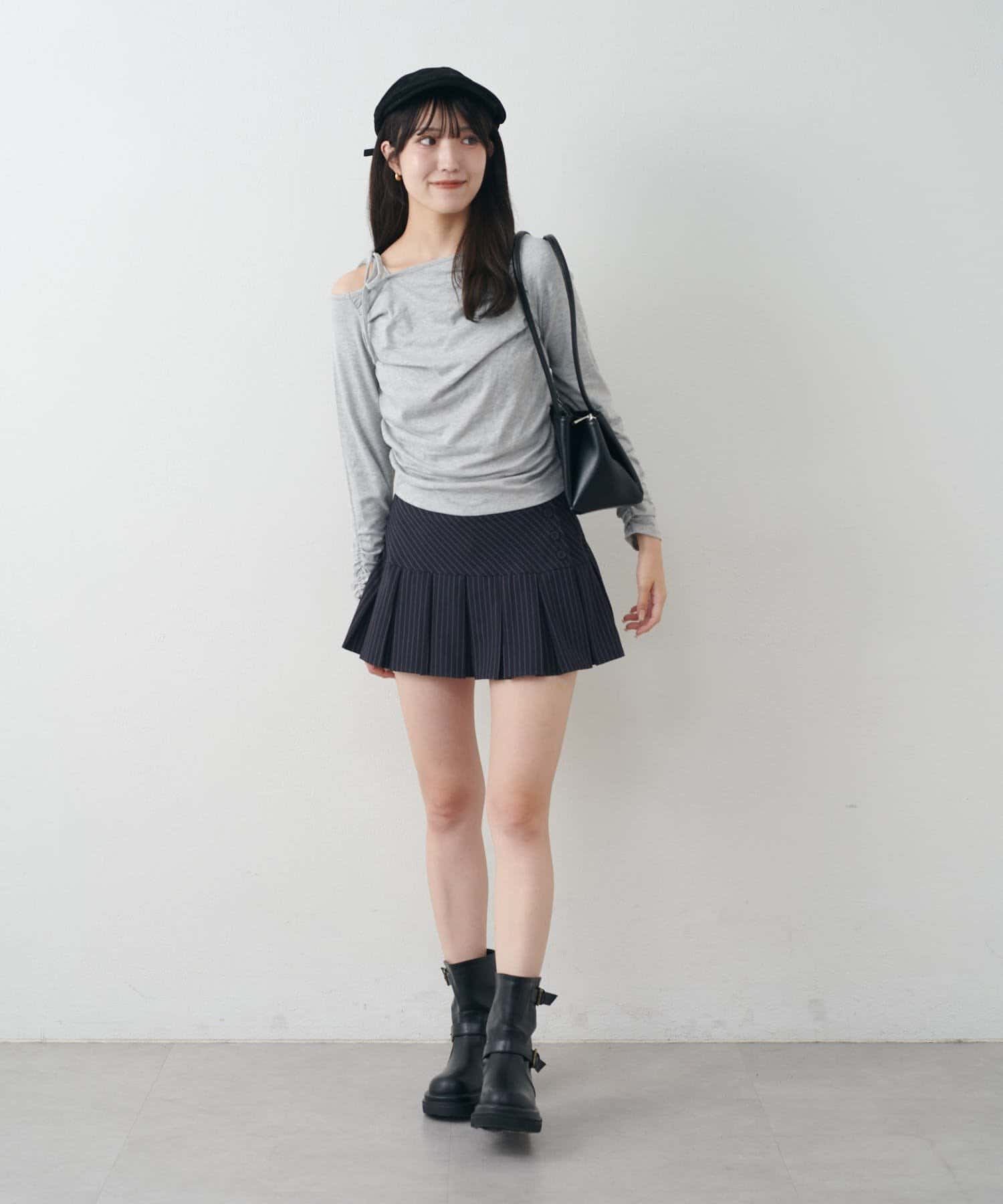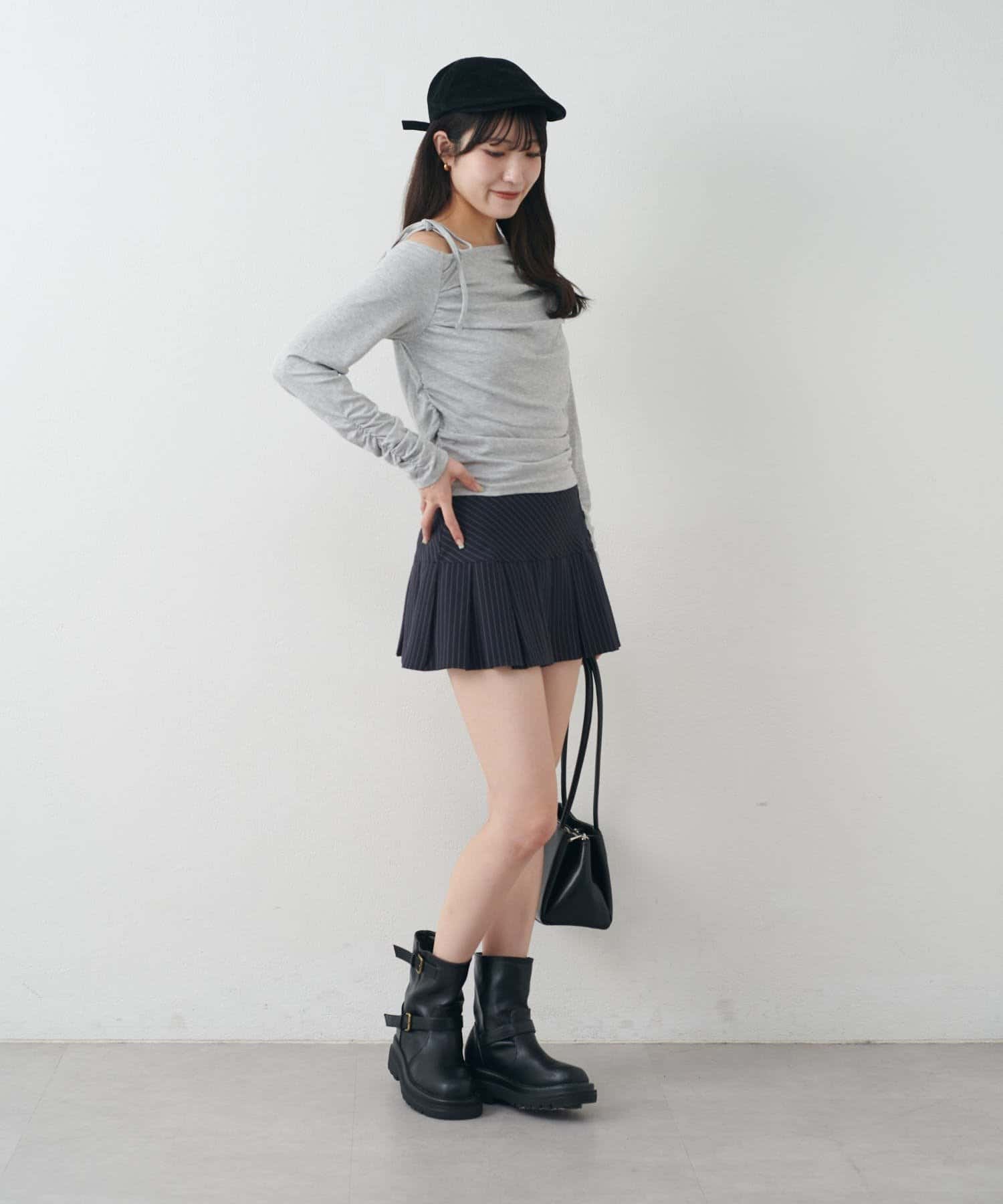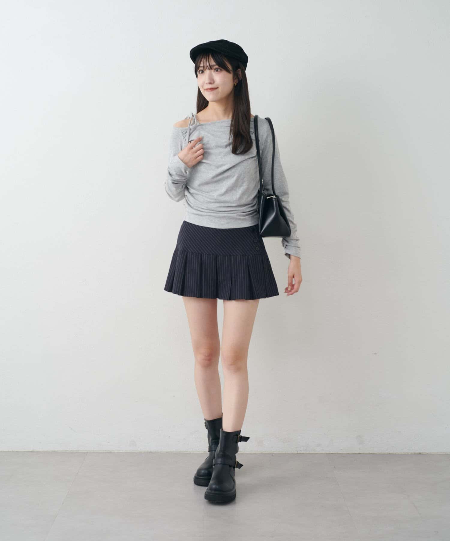 ・ミニ丈のスカートにアウトスタイルで合わせるのがおすすめ◎