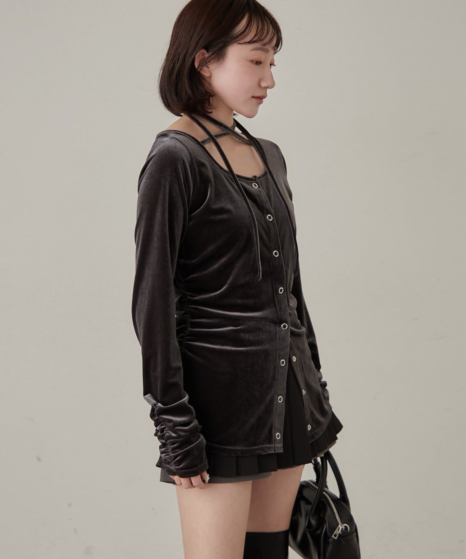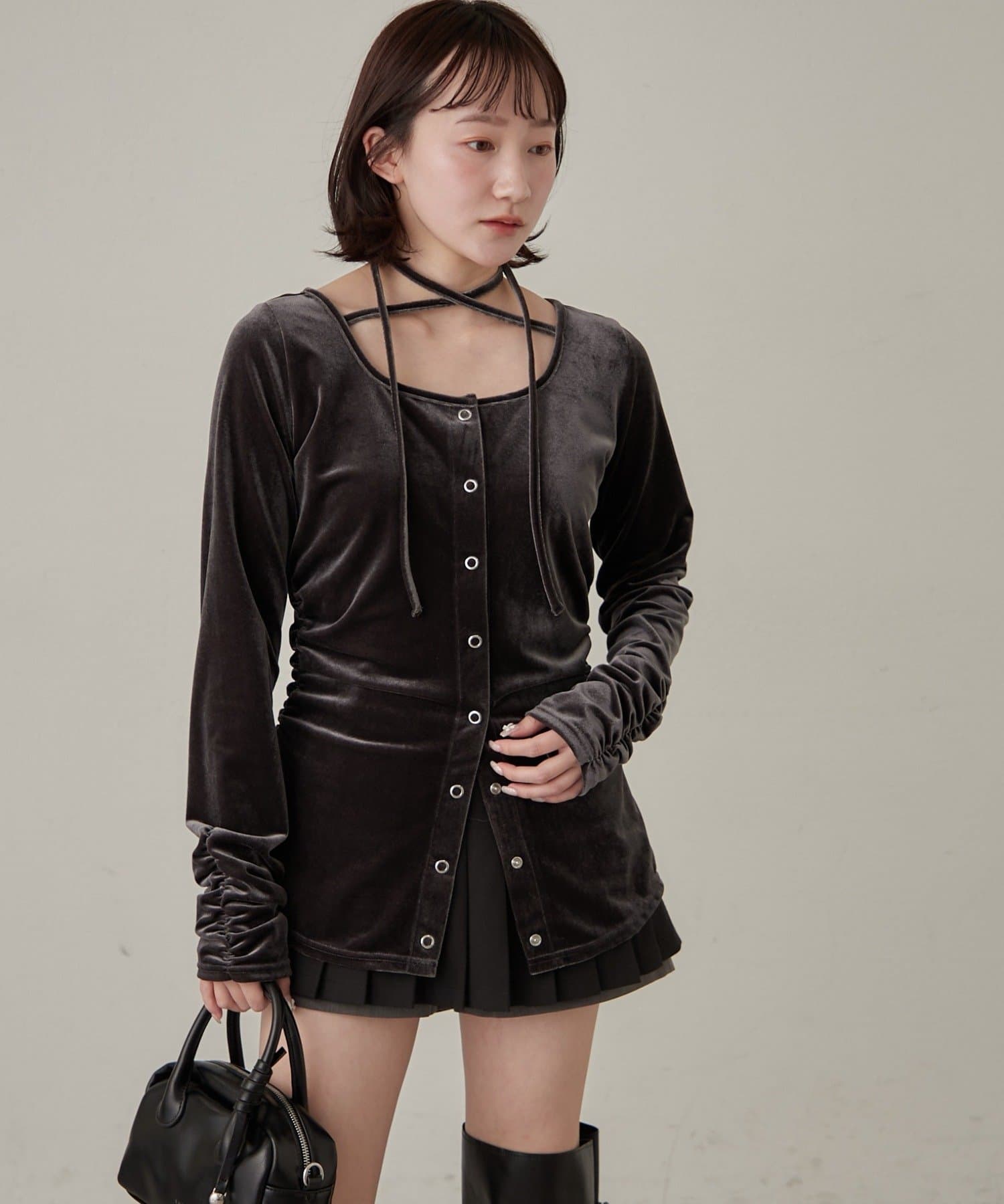 女性らしさ溢れる♡ベロアチョーカーボタンカーディガンが登場♡