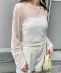 サイドや袖口のギャザーが可愛いトレンドライクなチュールトップスが登場!