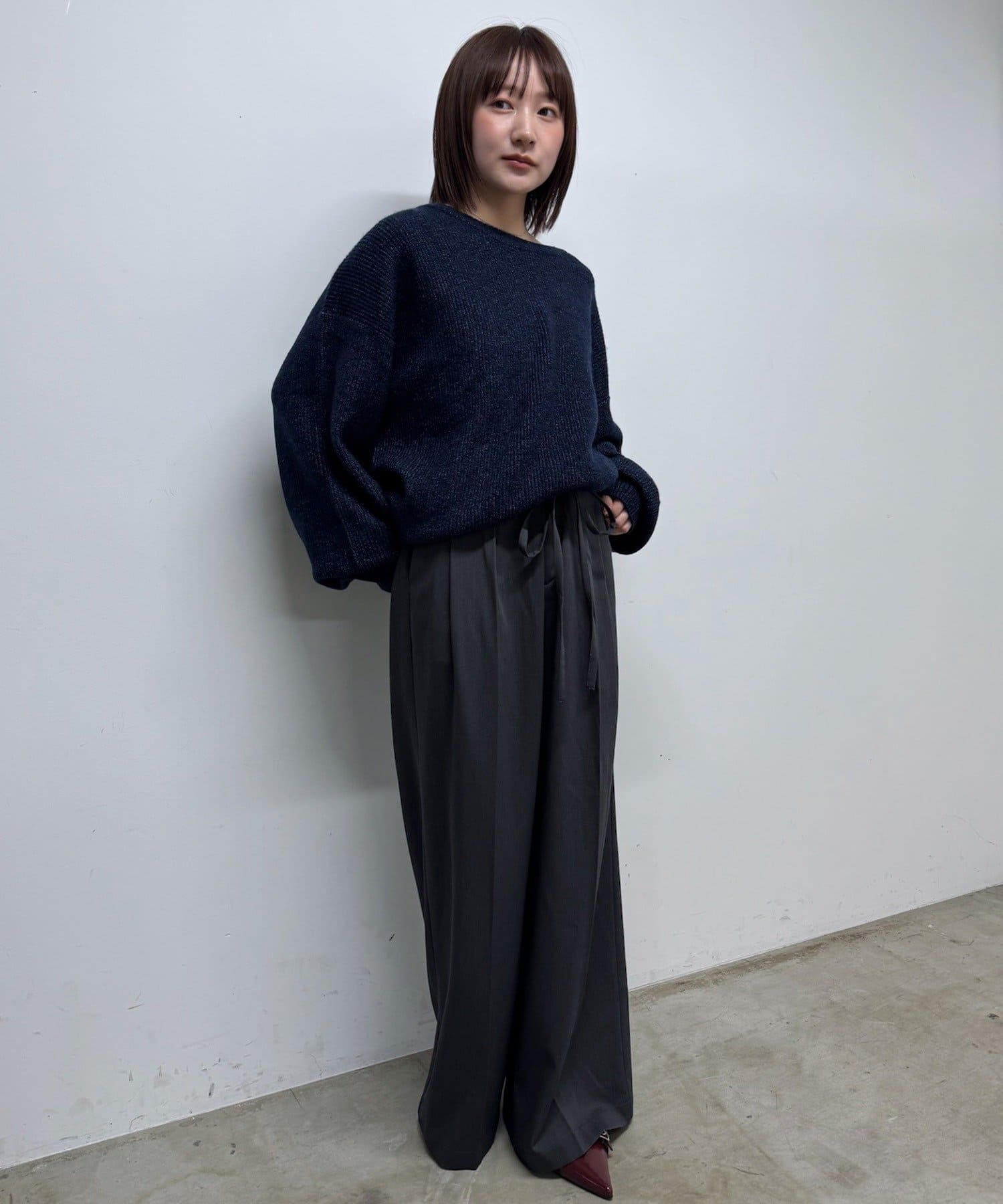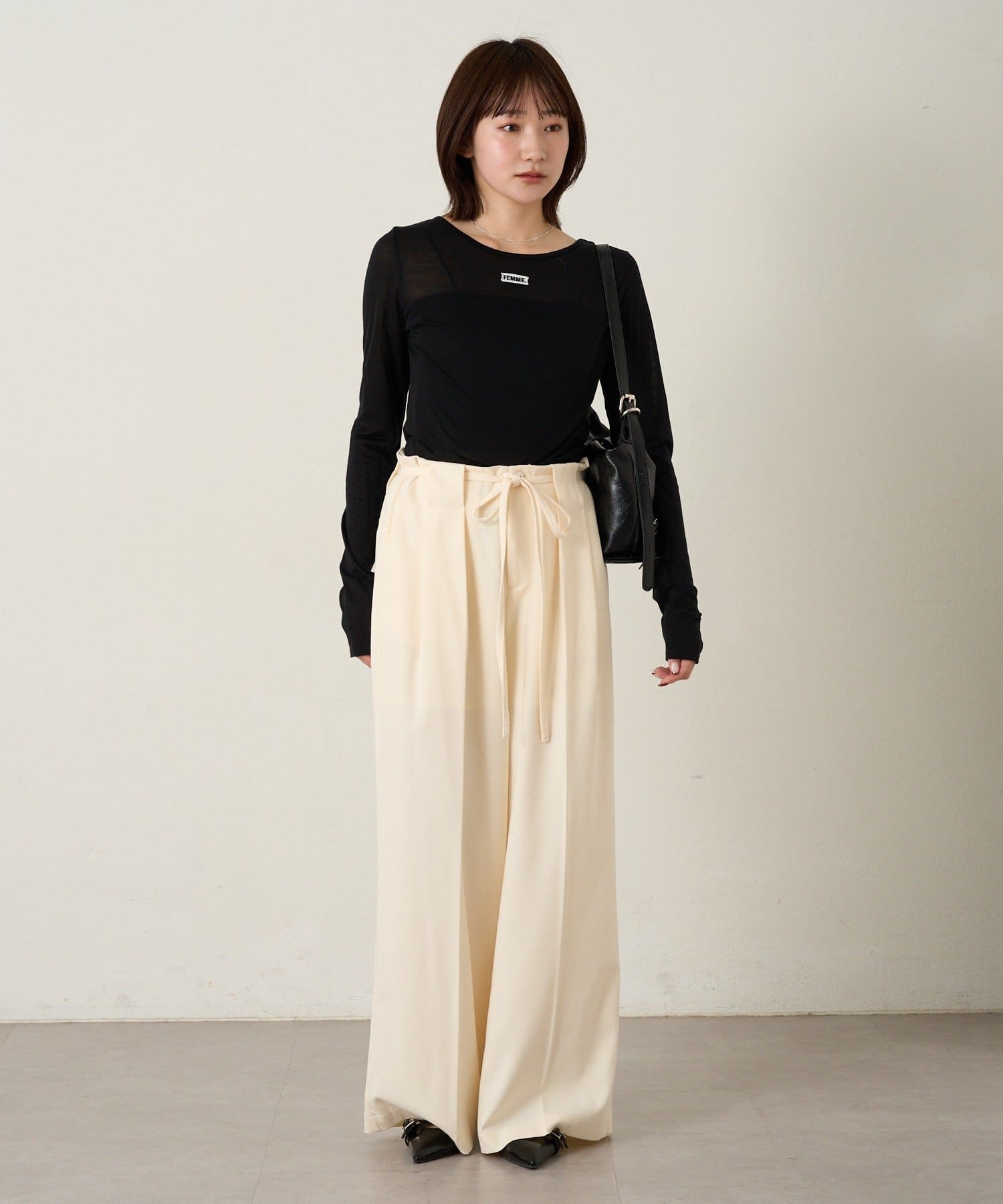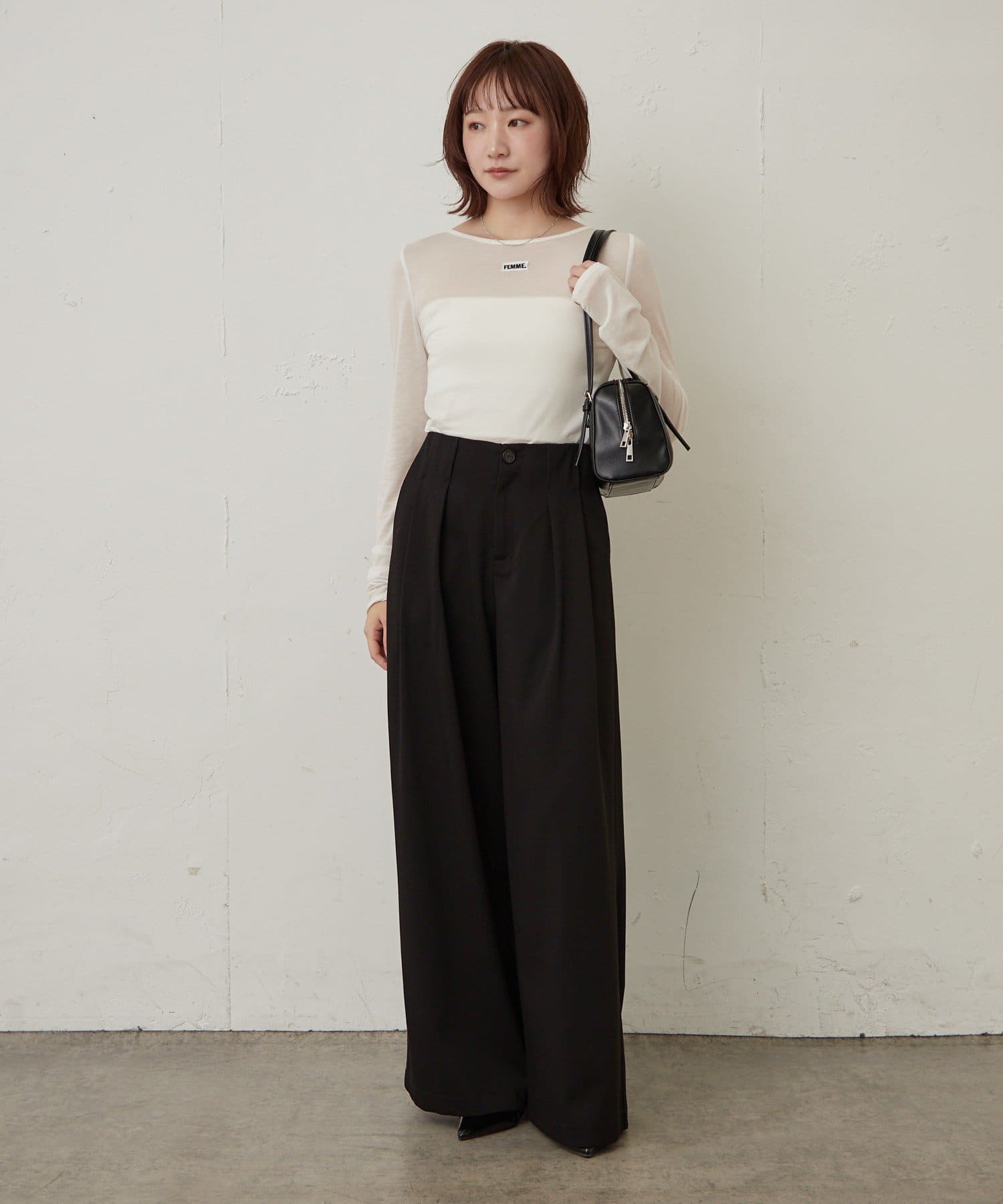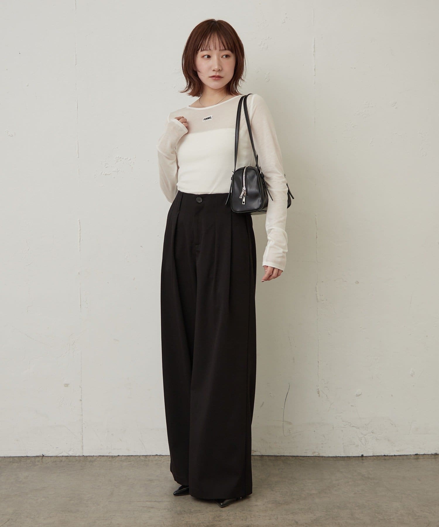・ワイドシルエットのため、リブ素材などの細身のトップスとの相性抜群です!