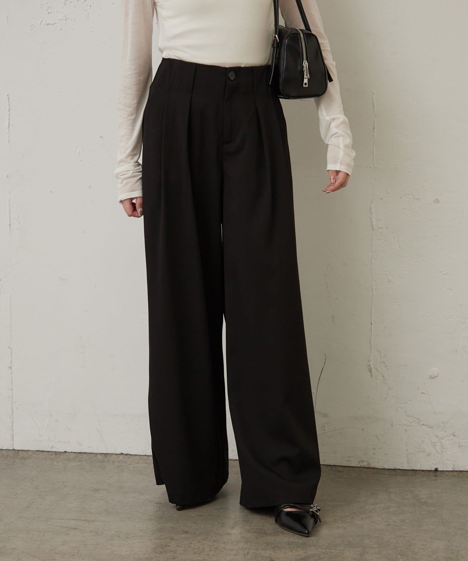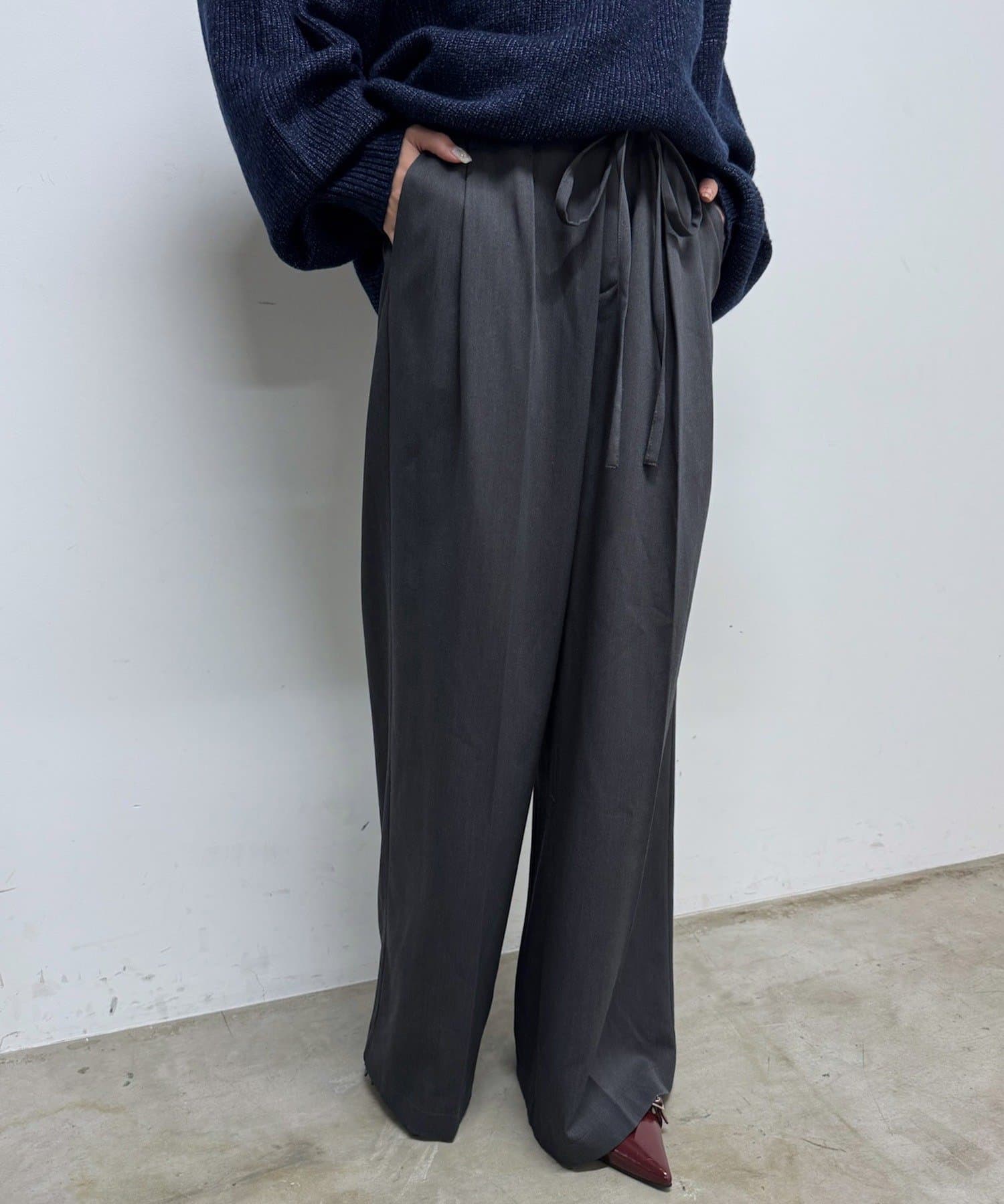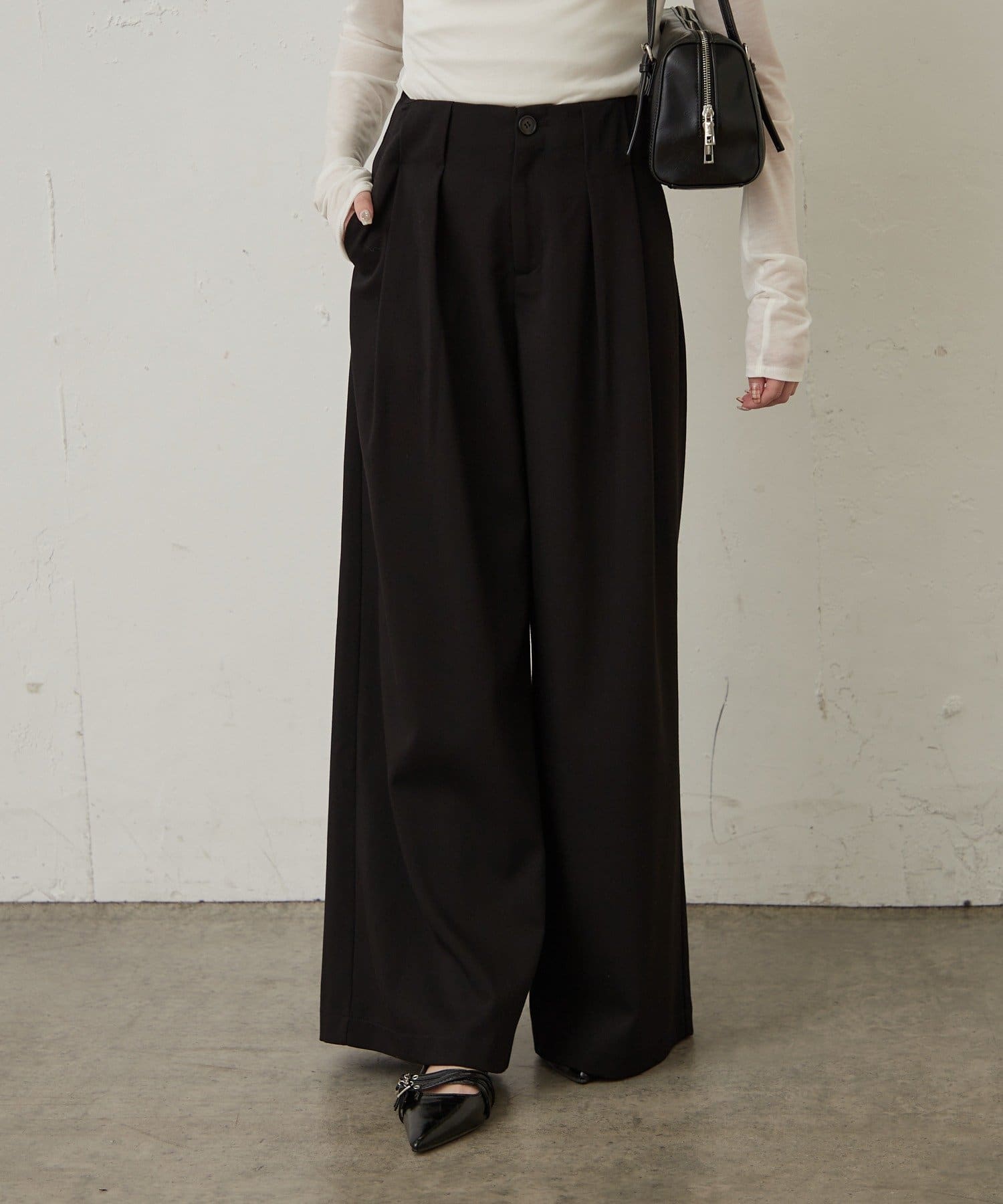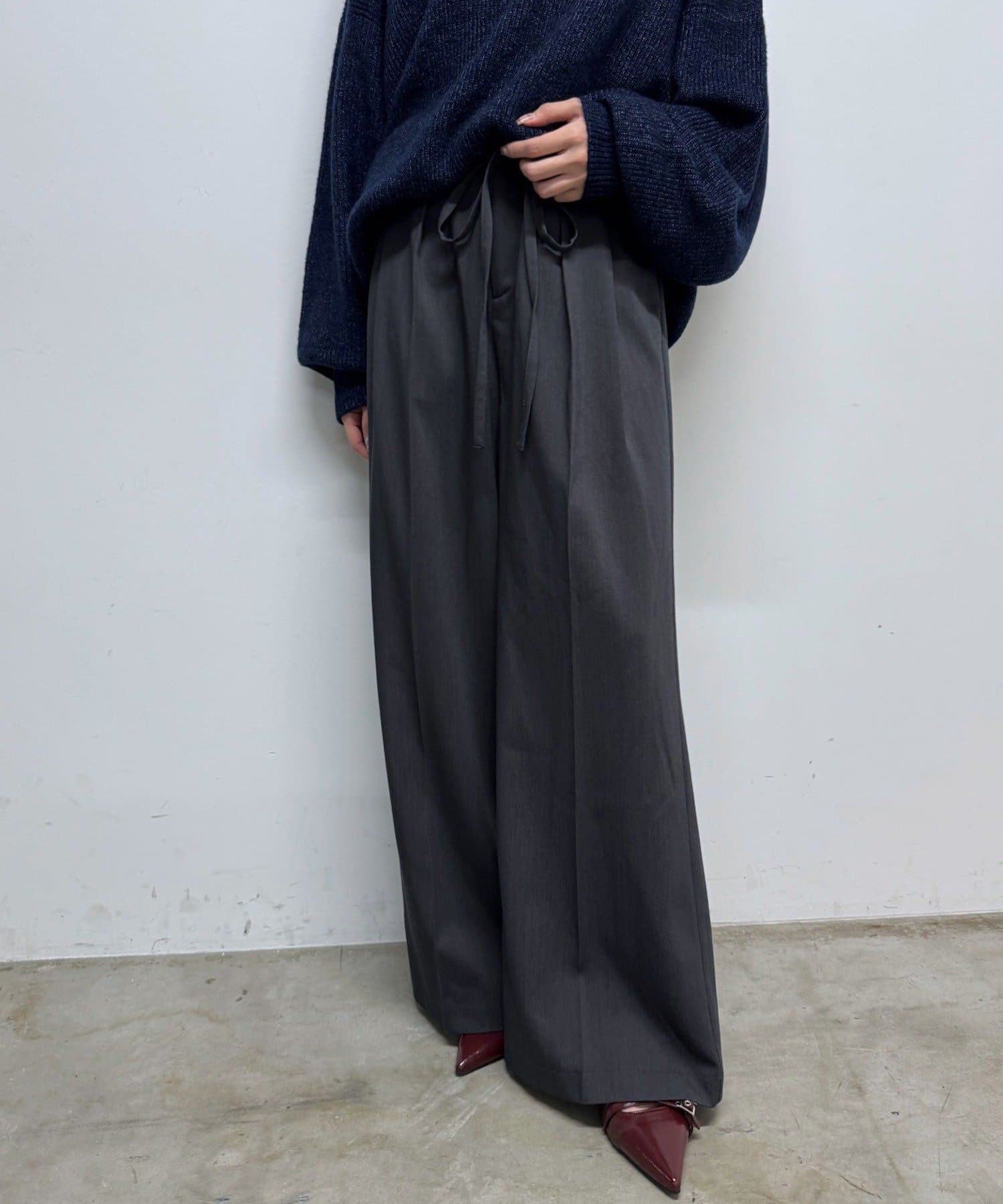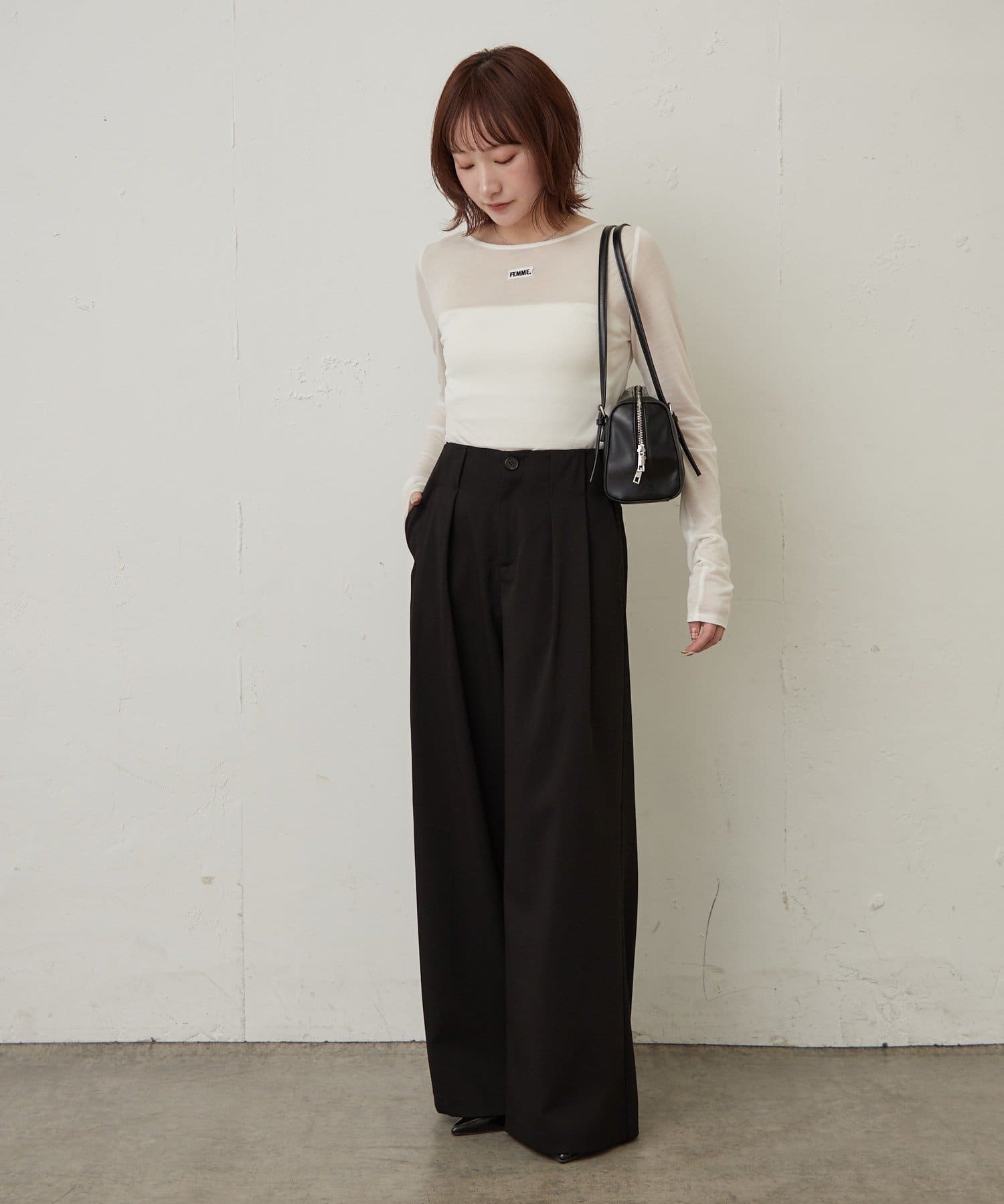 ・ワイドシルエットのため、リブ素材などの細身のトップスとの相性抜群です!