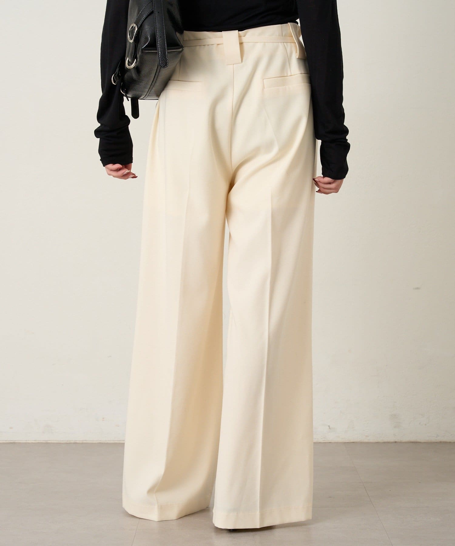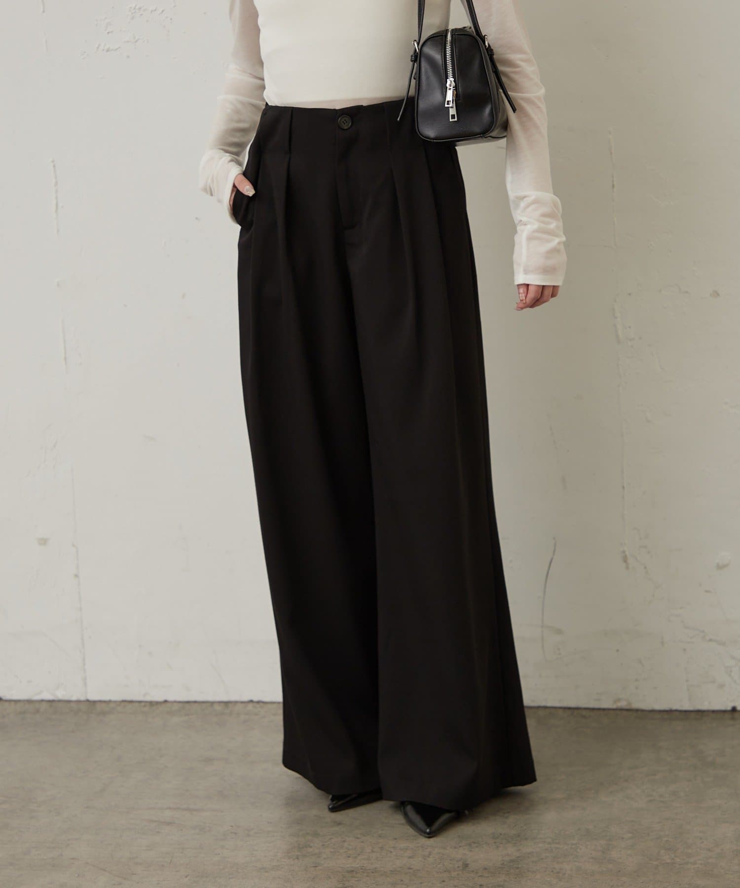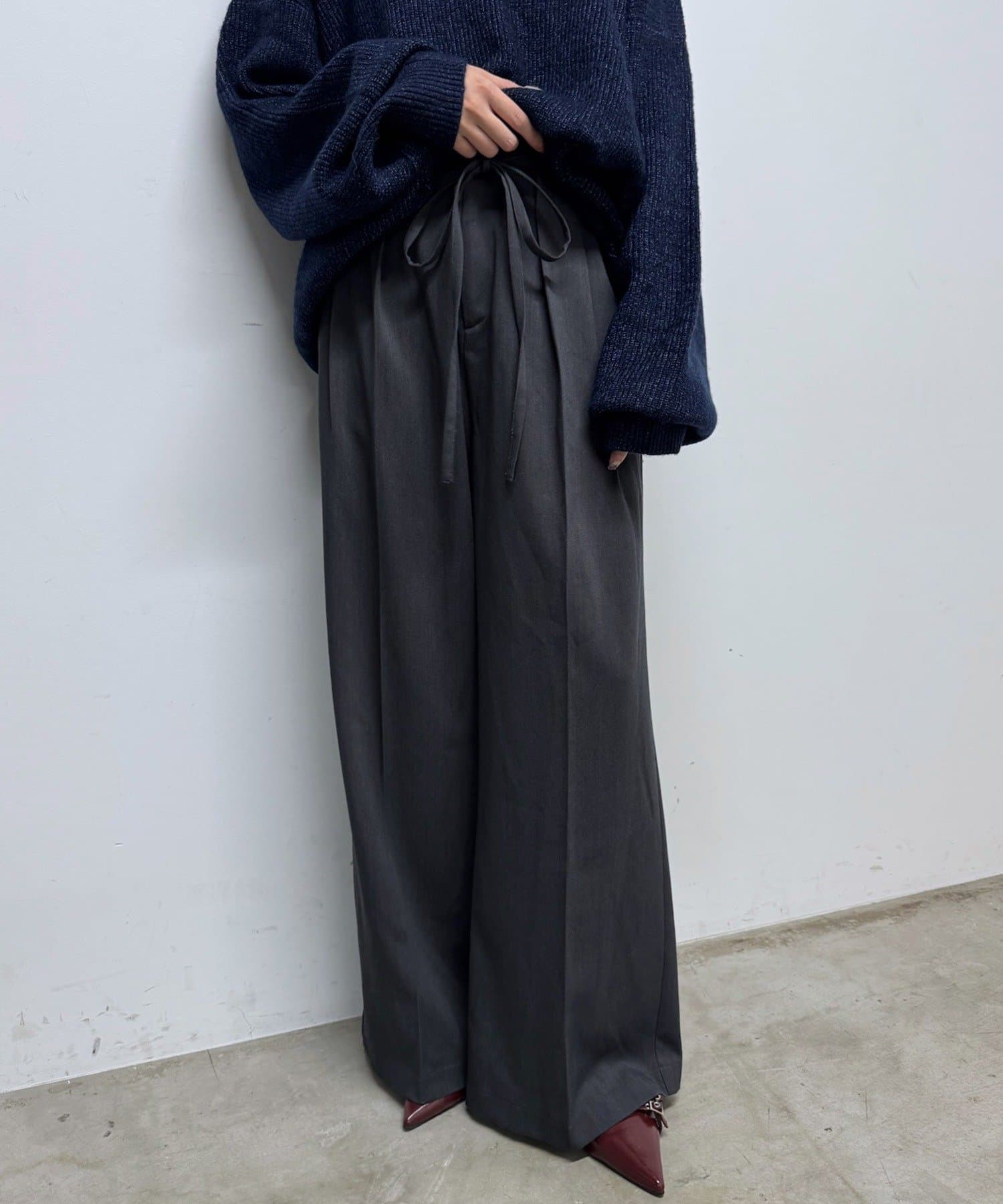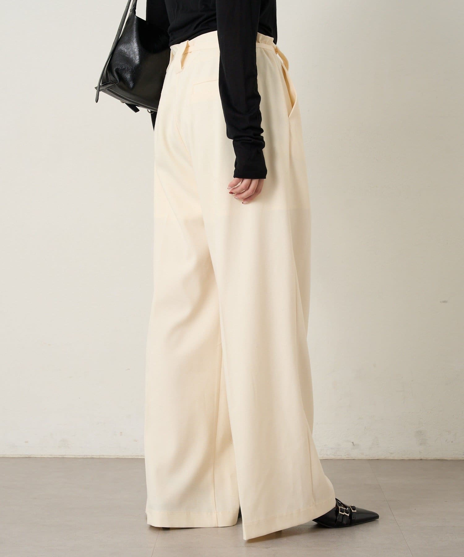 ・ワイドシルエットのため、リブ素材などの細身のトップスとの相性抜群です!