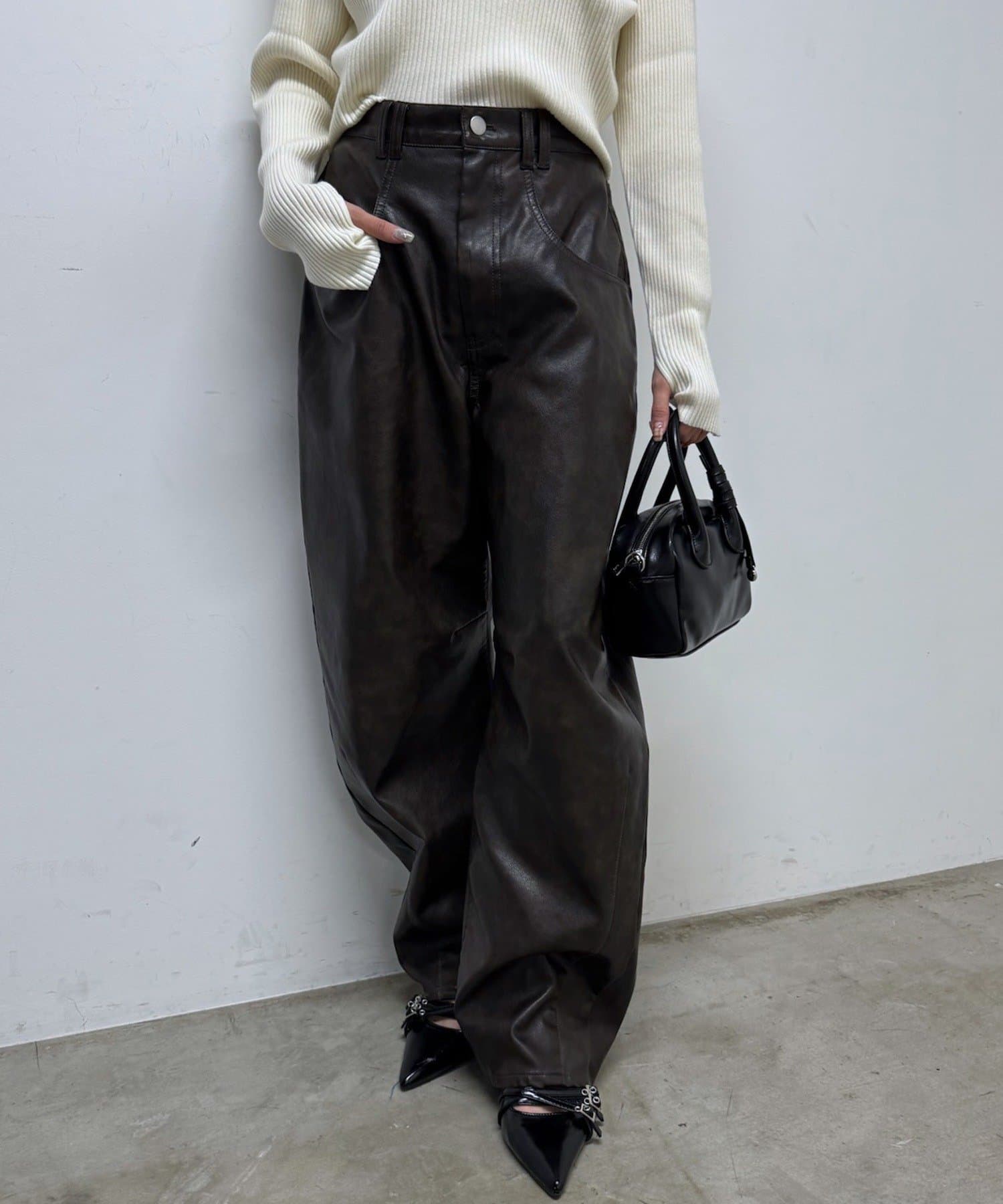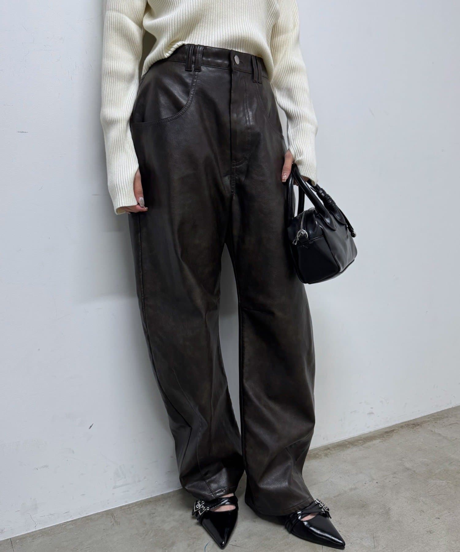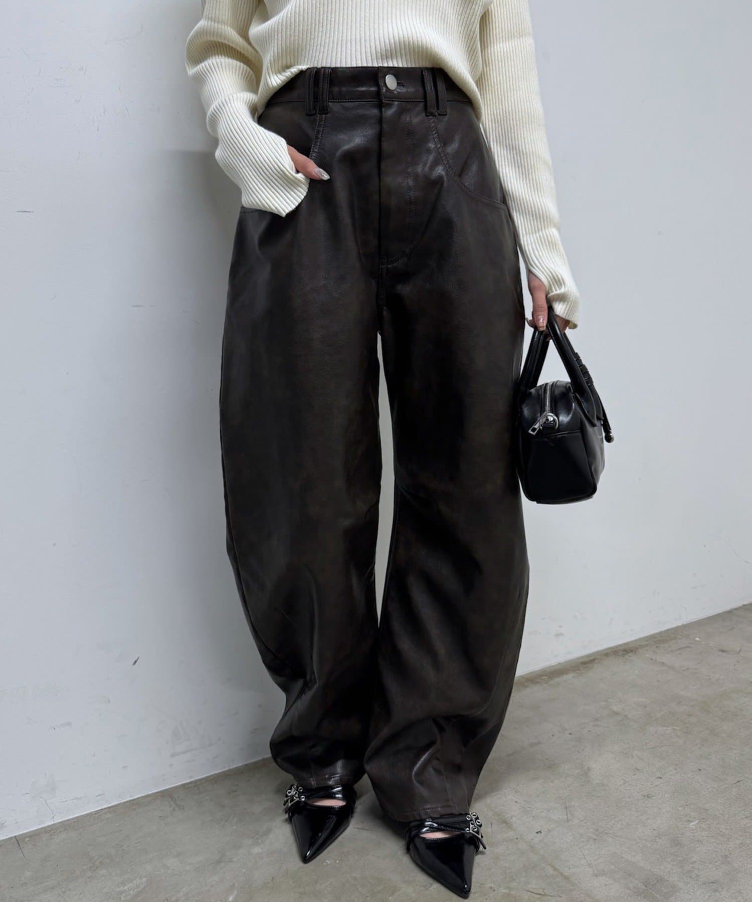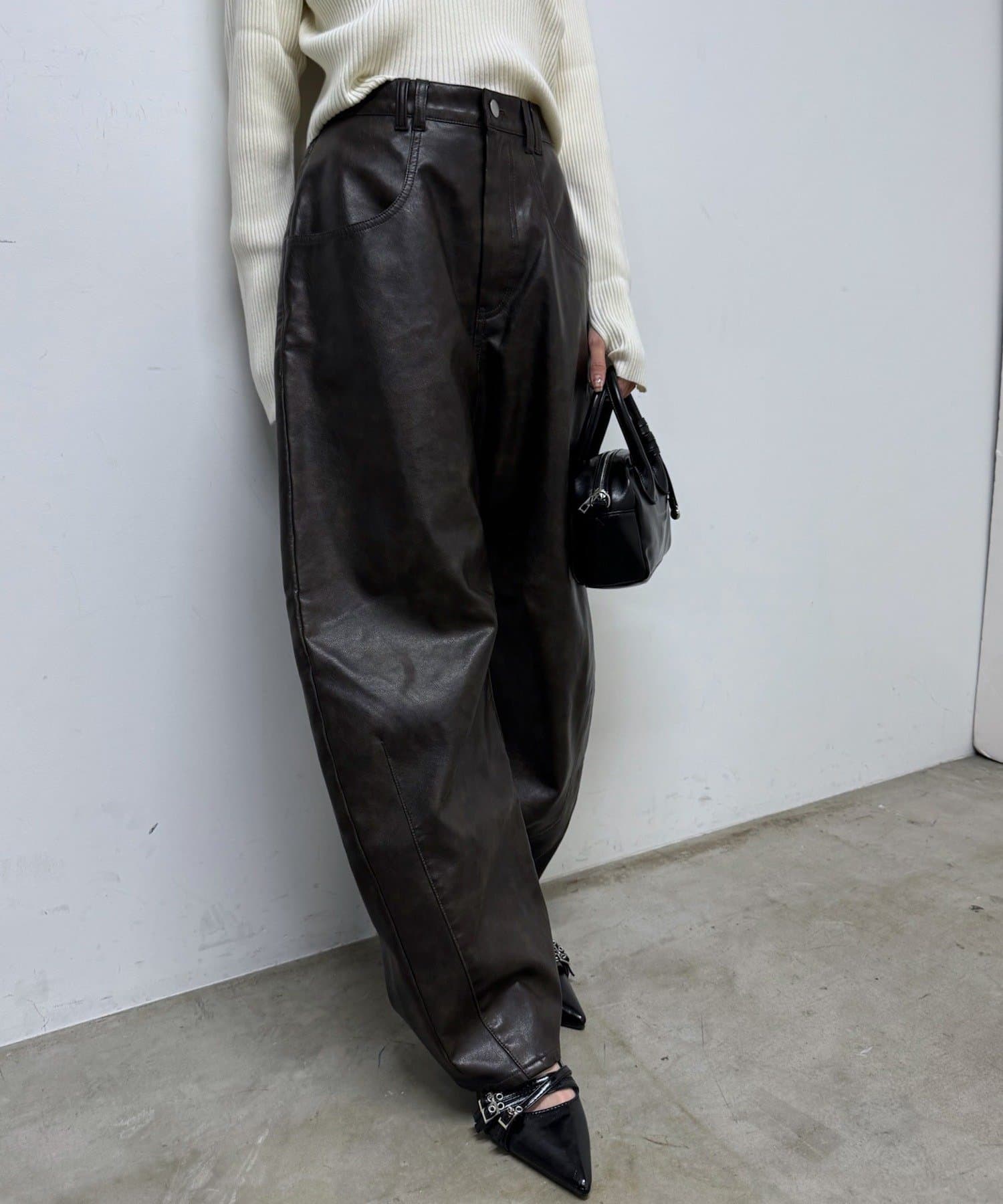 トレンドのカーブシルエットが可愛い◎レザーパンツが登場!