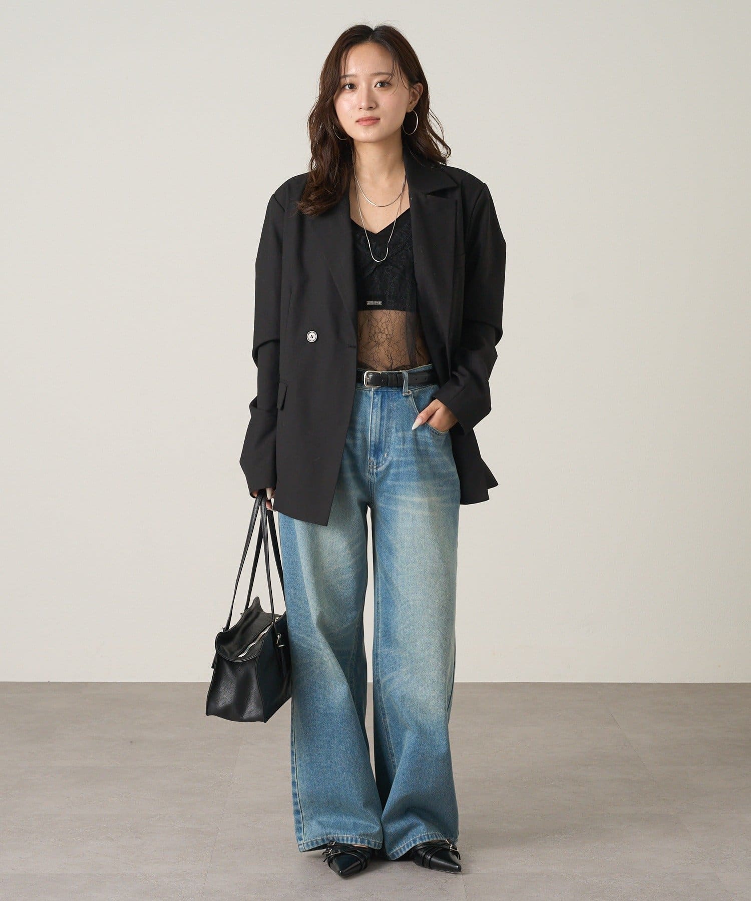 ・ワイドシルエットのため、リブニットなどタイトなトップスとの相性◎