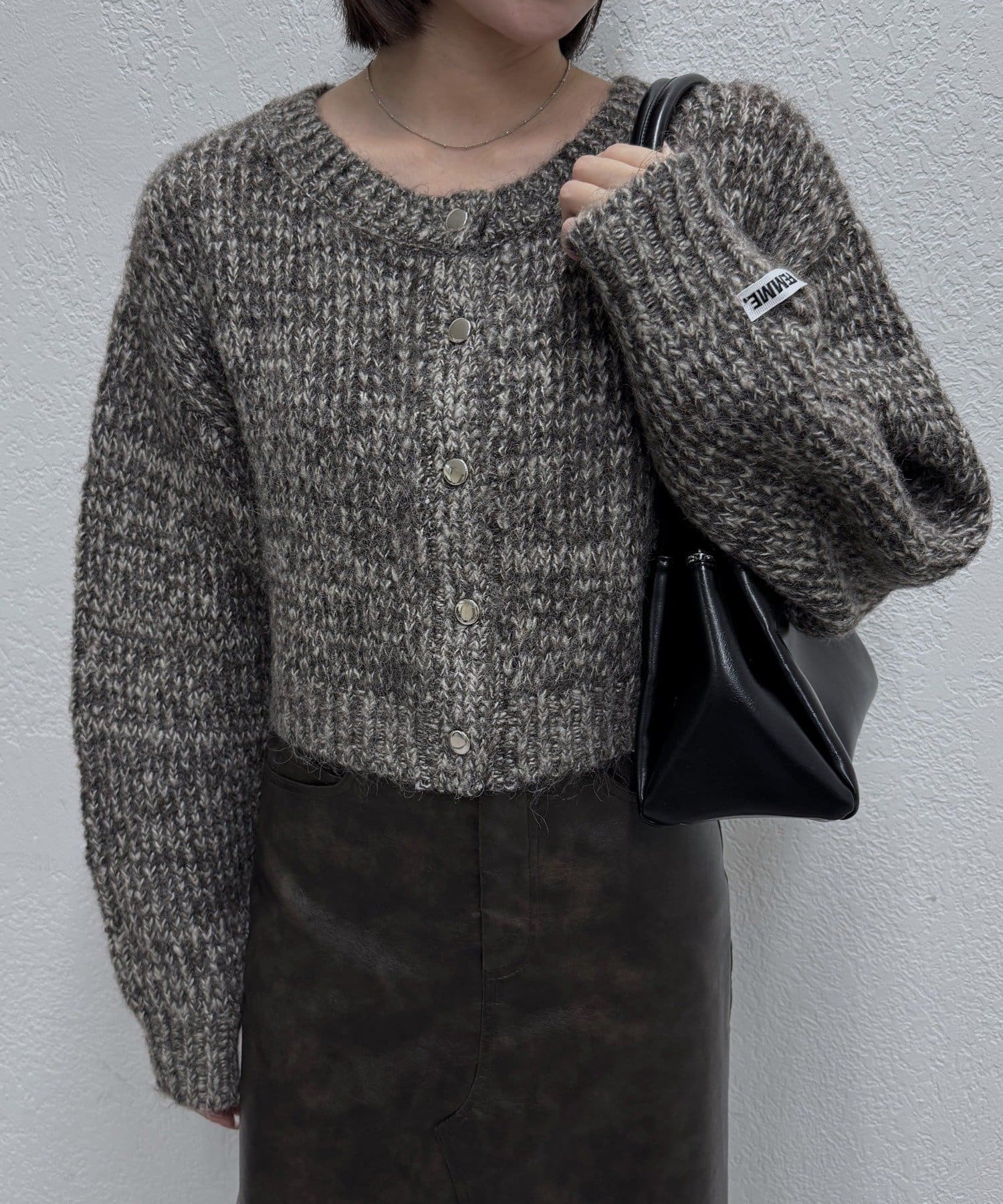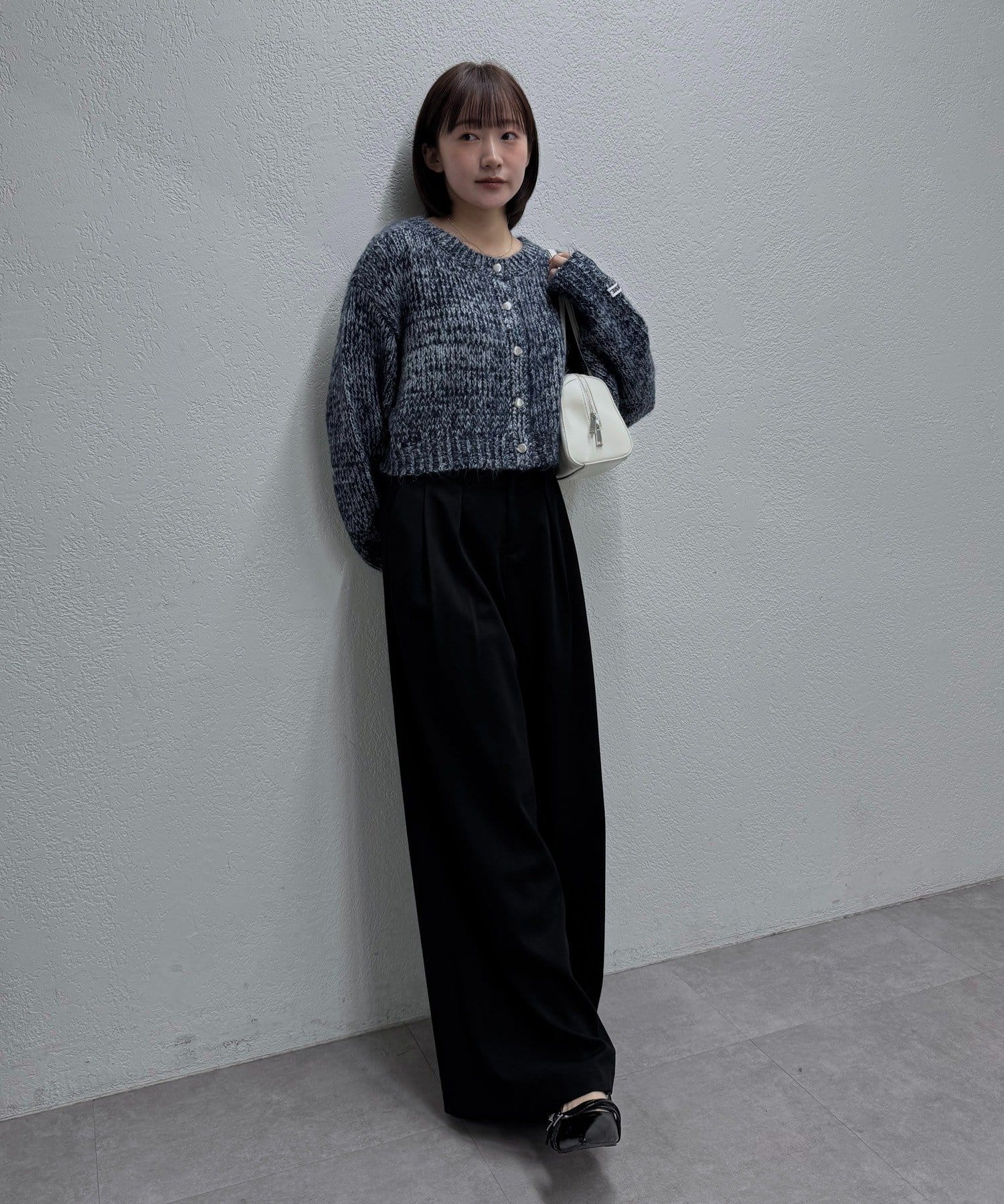 ・ざっくりとした編み地のカーディガンが羽織るだけでオシャレにしてくれます。