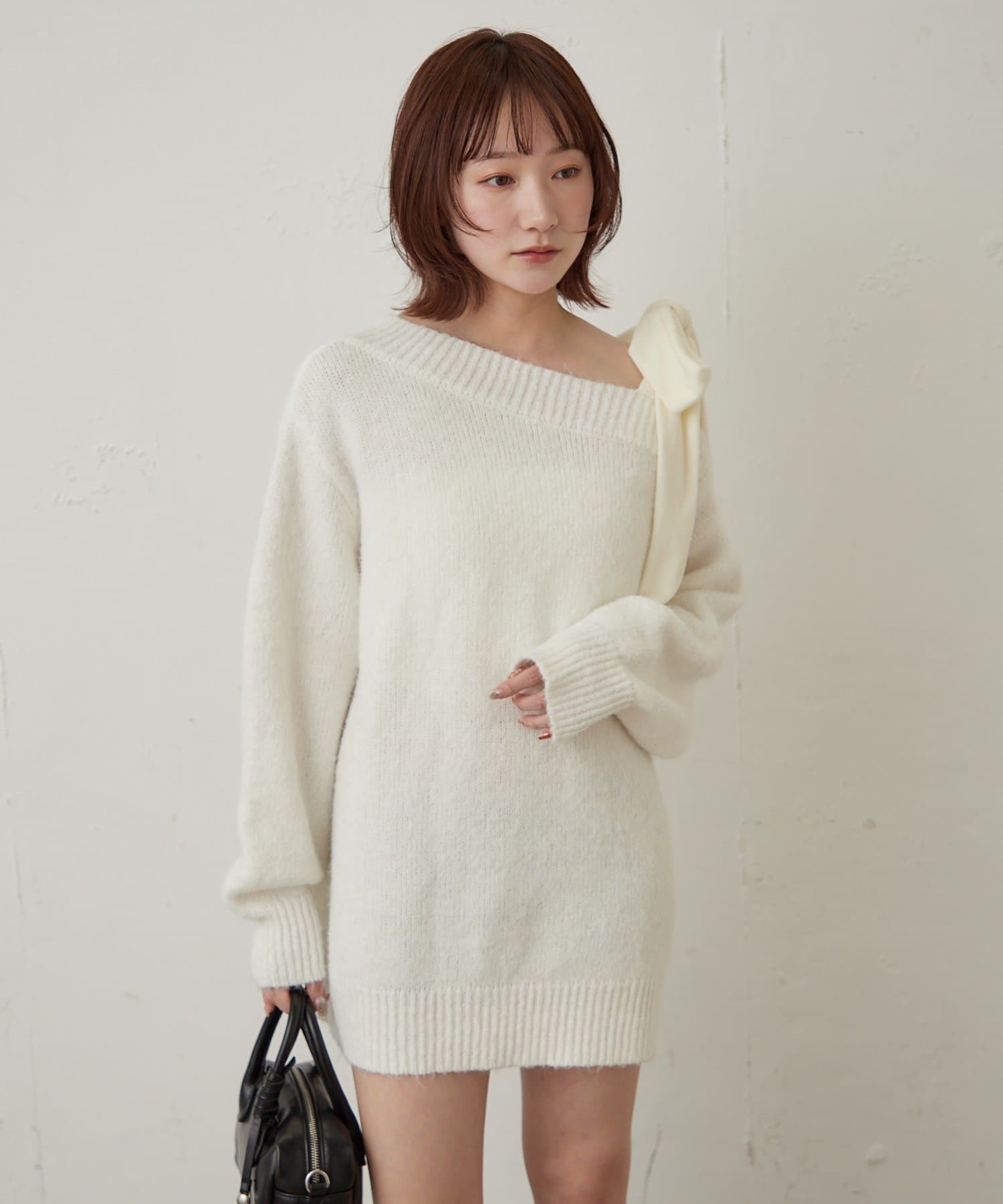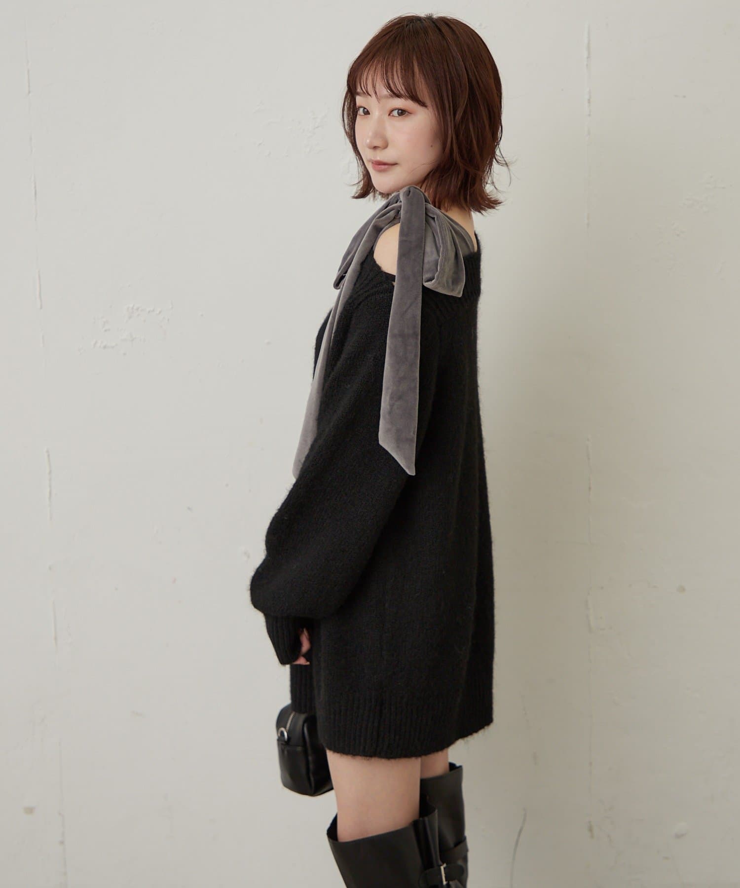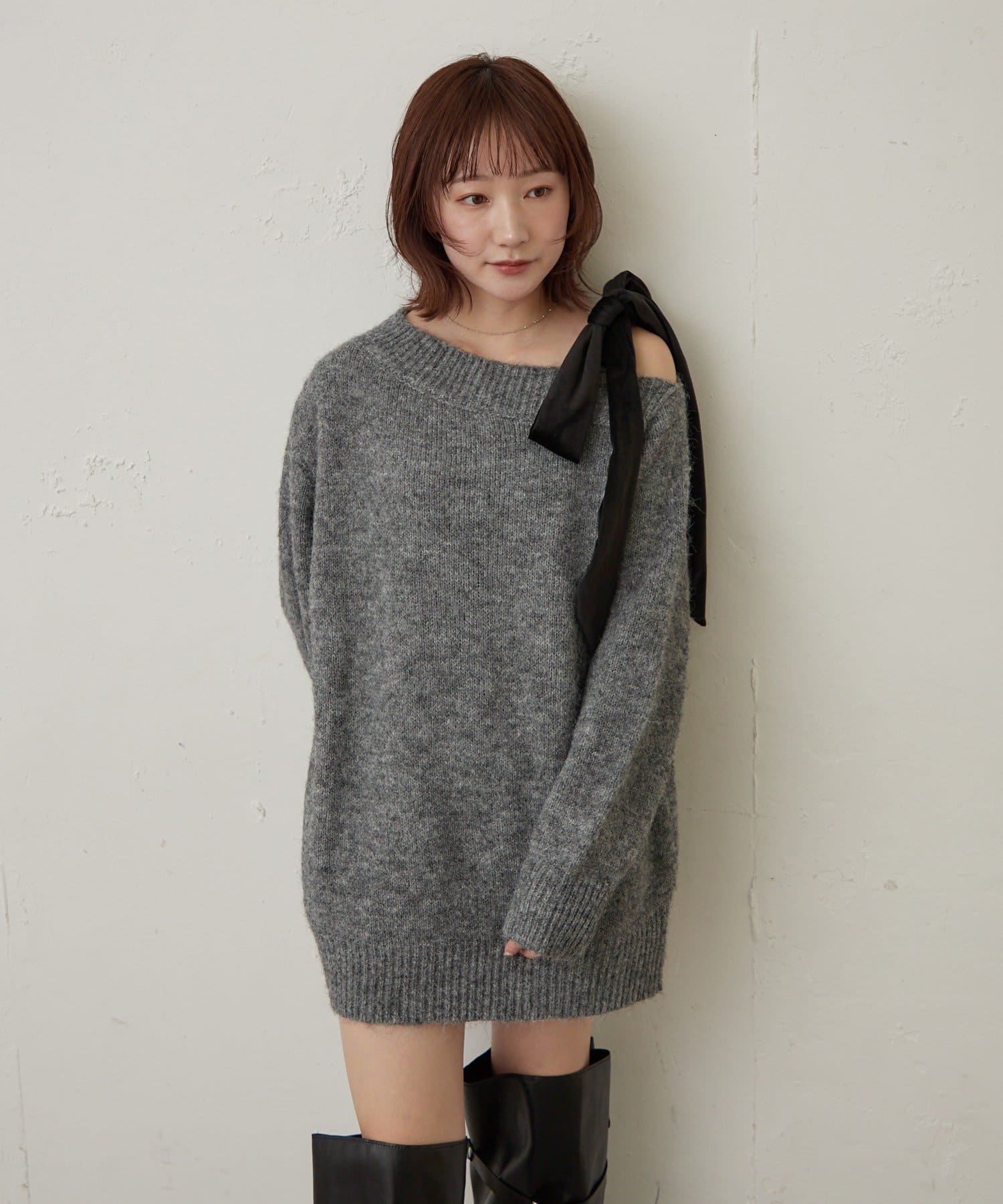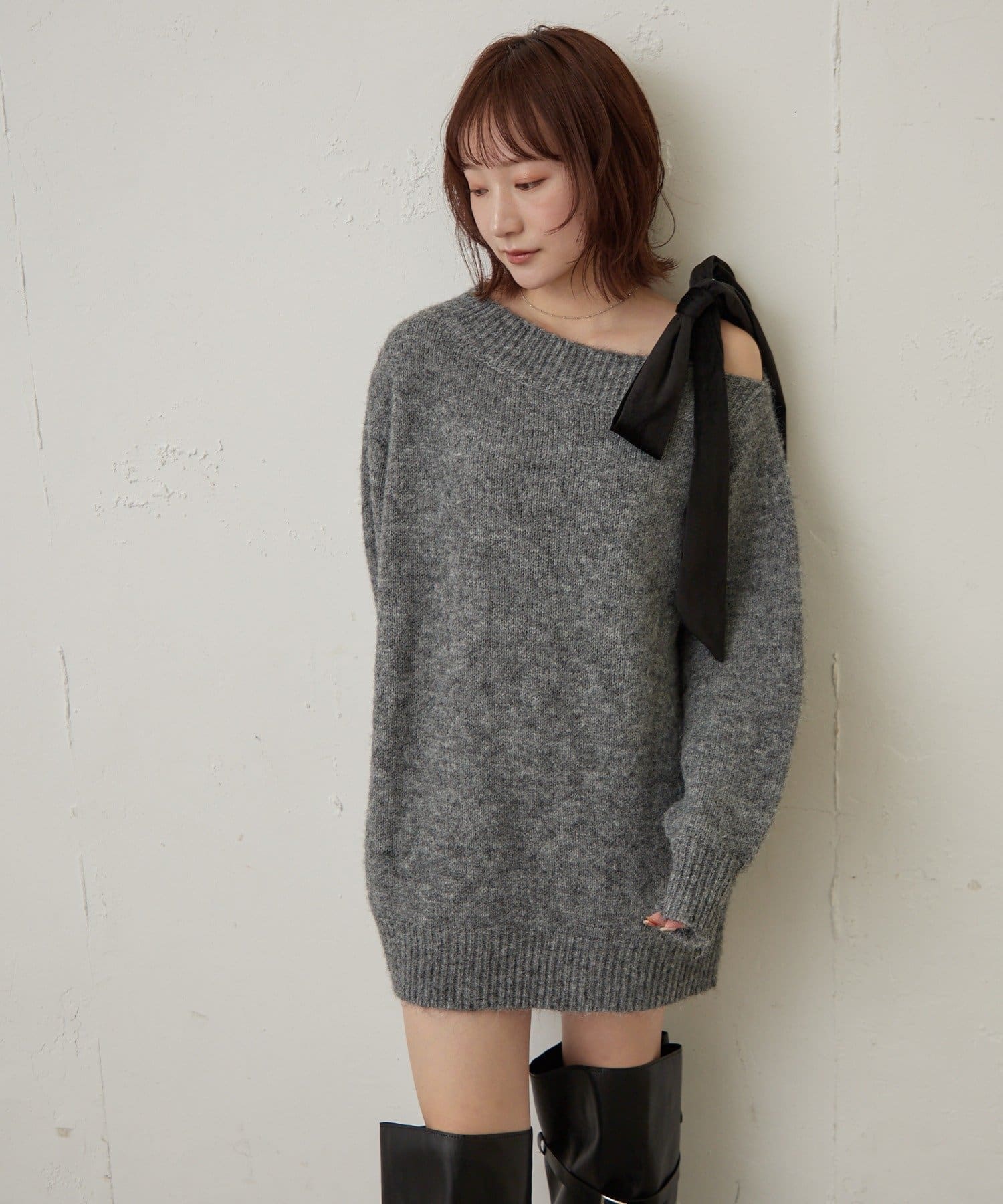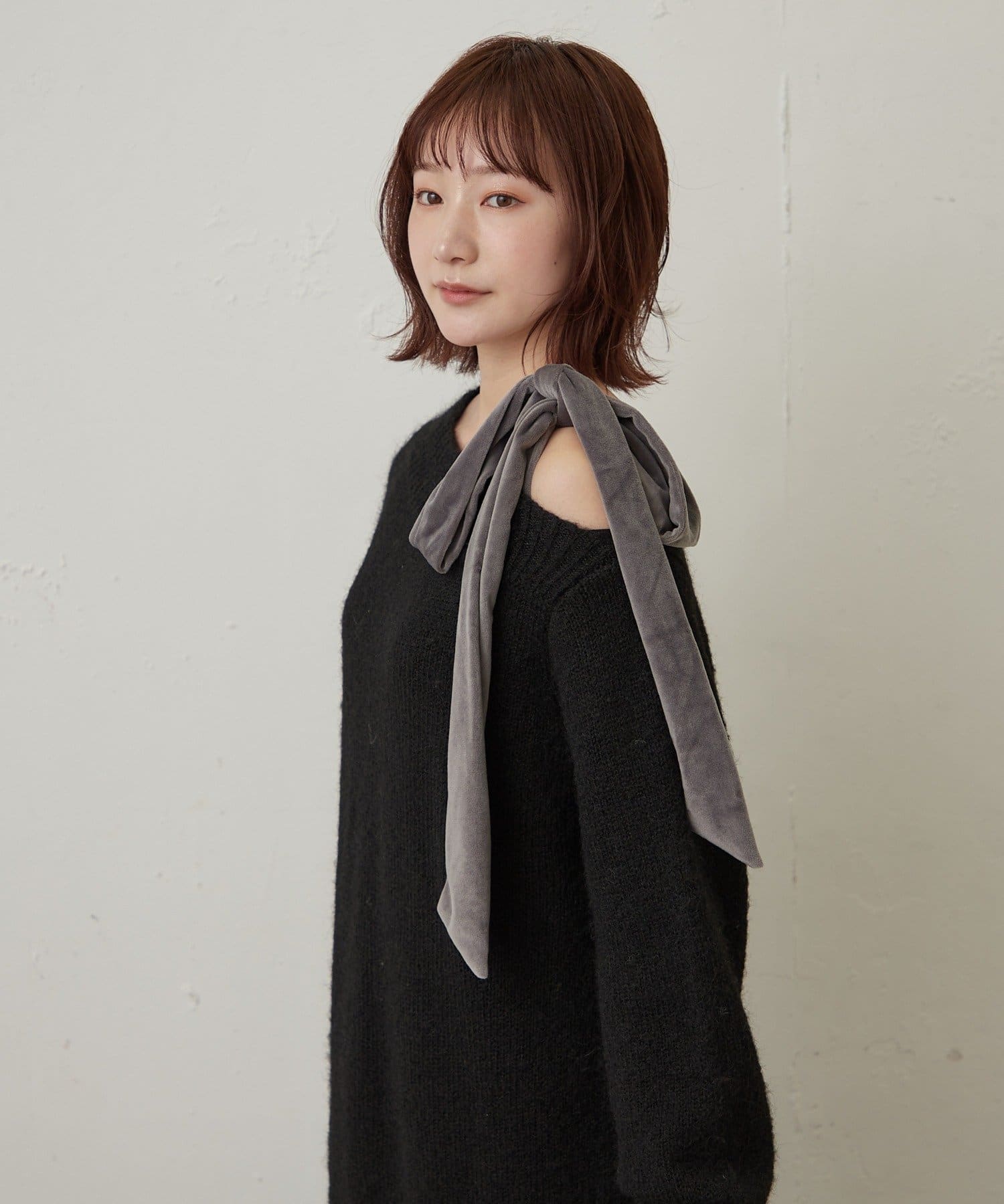 TOP > mline > レディース > トップス > ニット/セーター > [mline]ショルダーリボン ニットワンピース