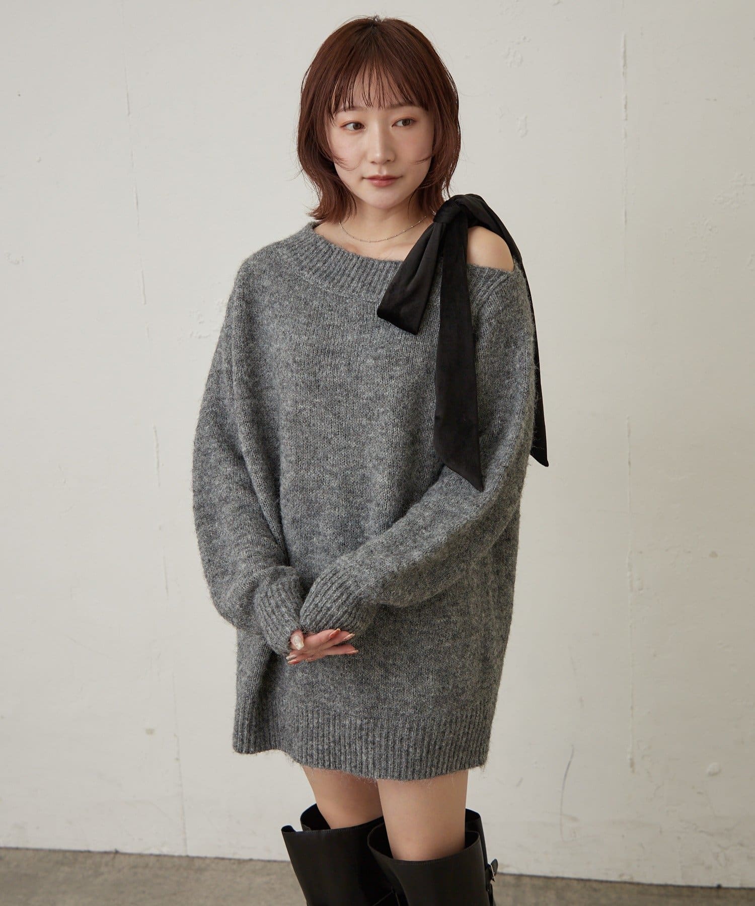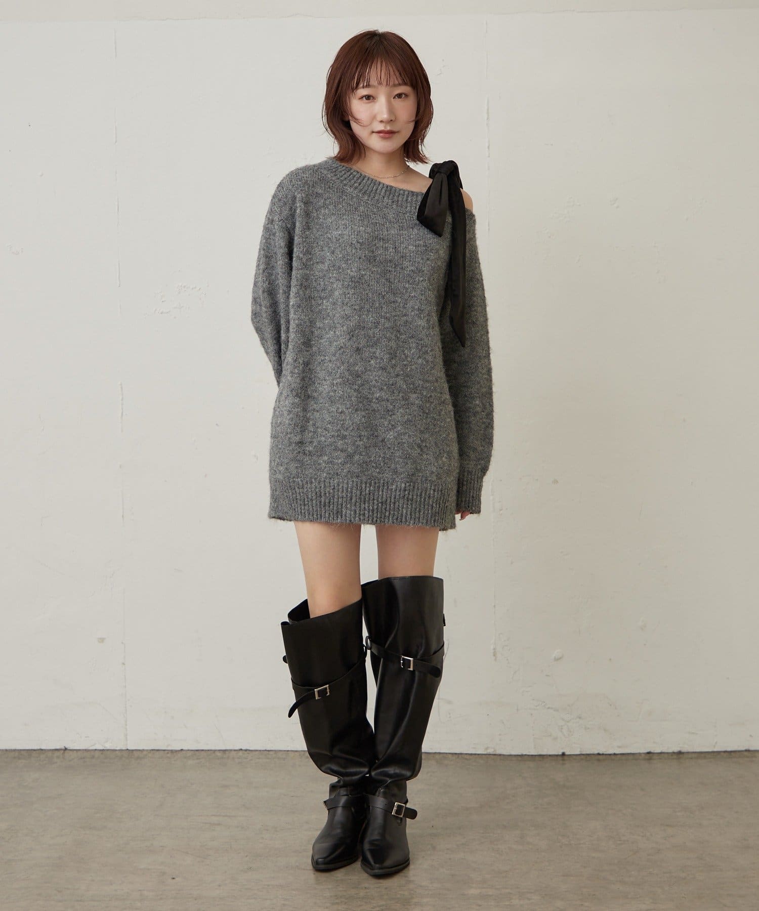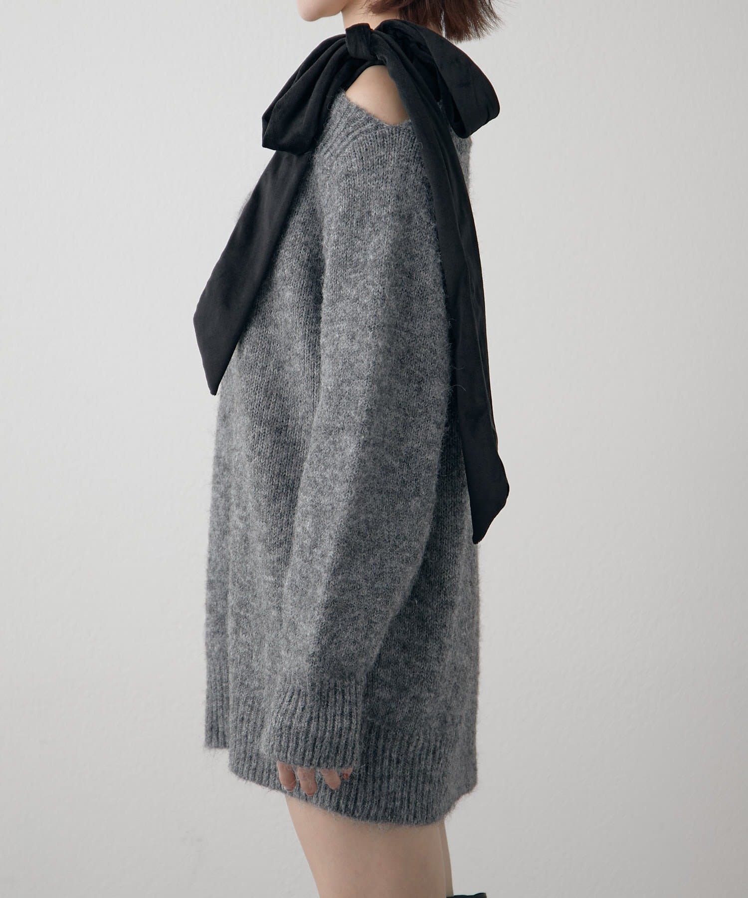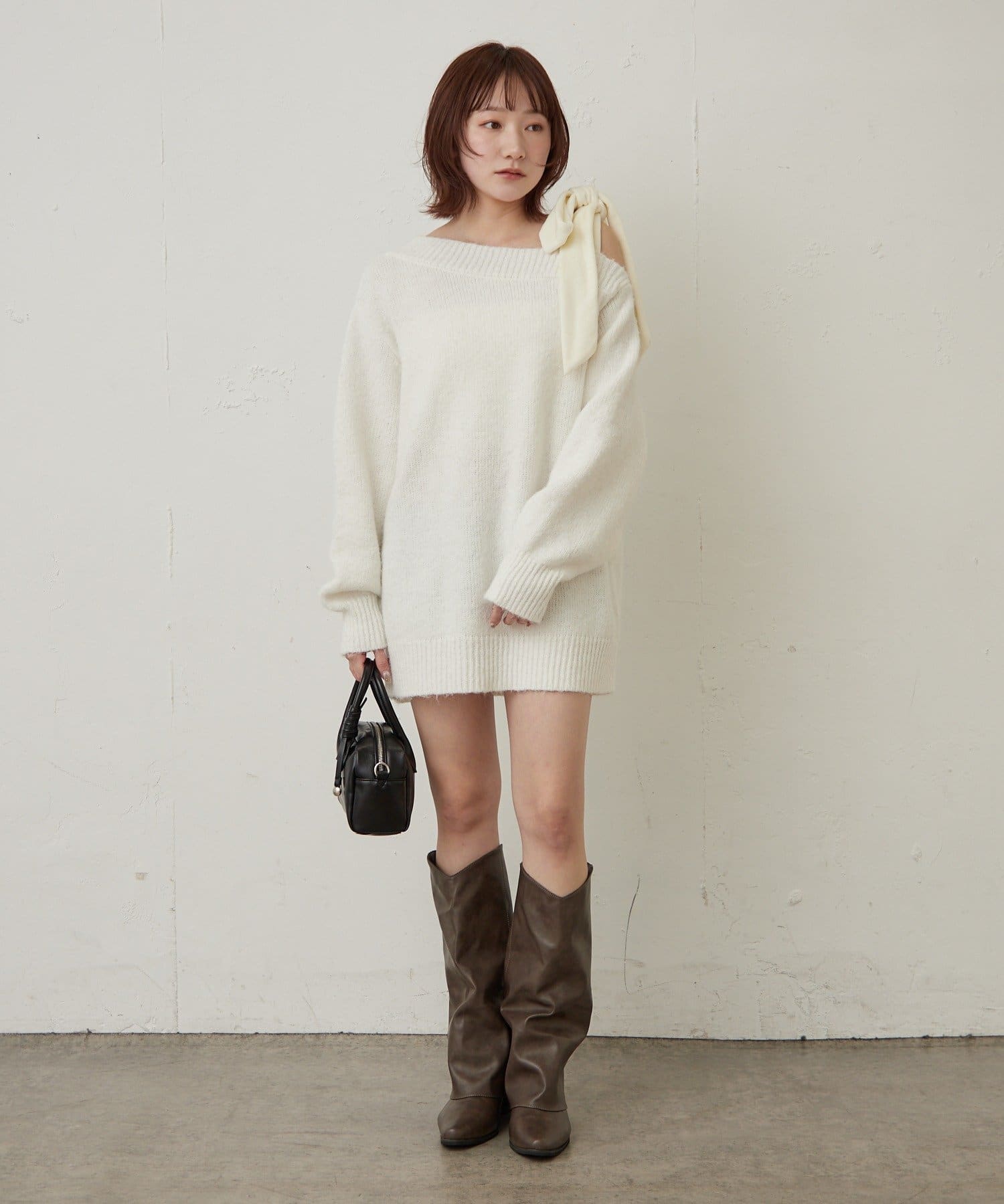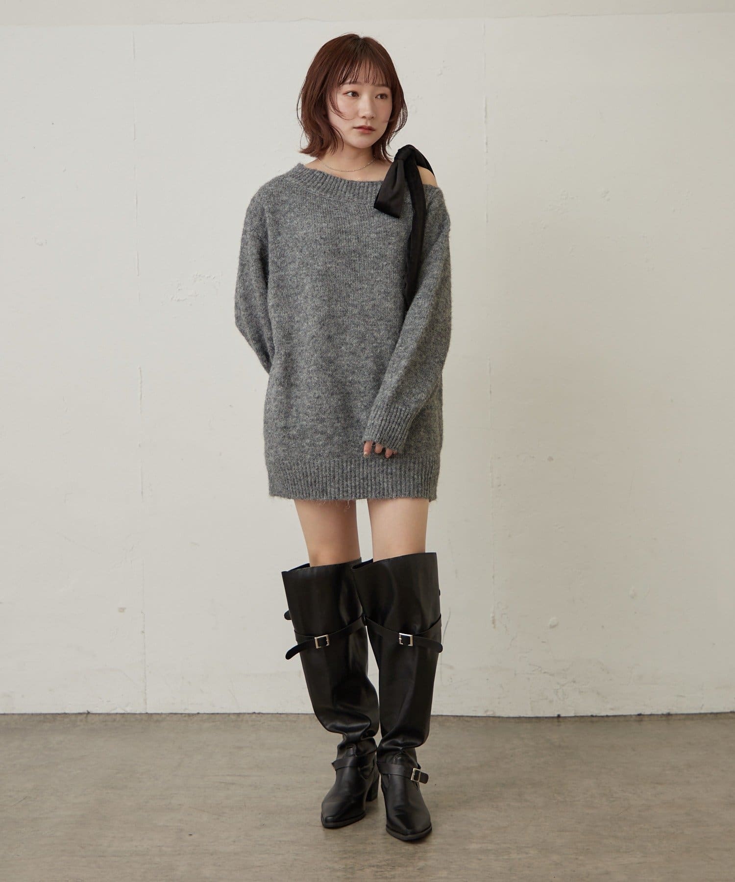 TOP > mline > レディース > トップス > ニット/セーター > [mline]ショルダーリボン ニットワンピース