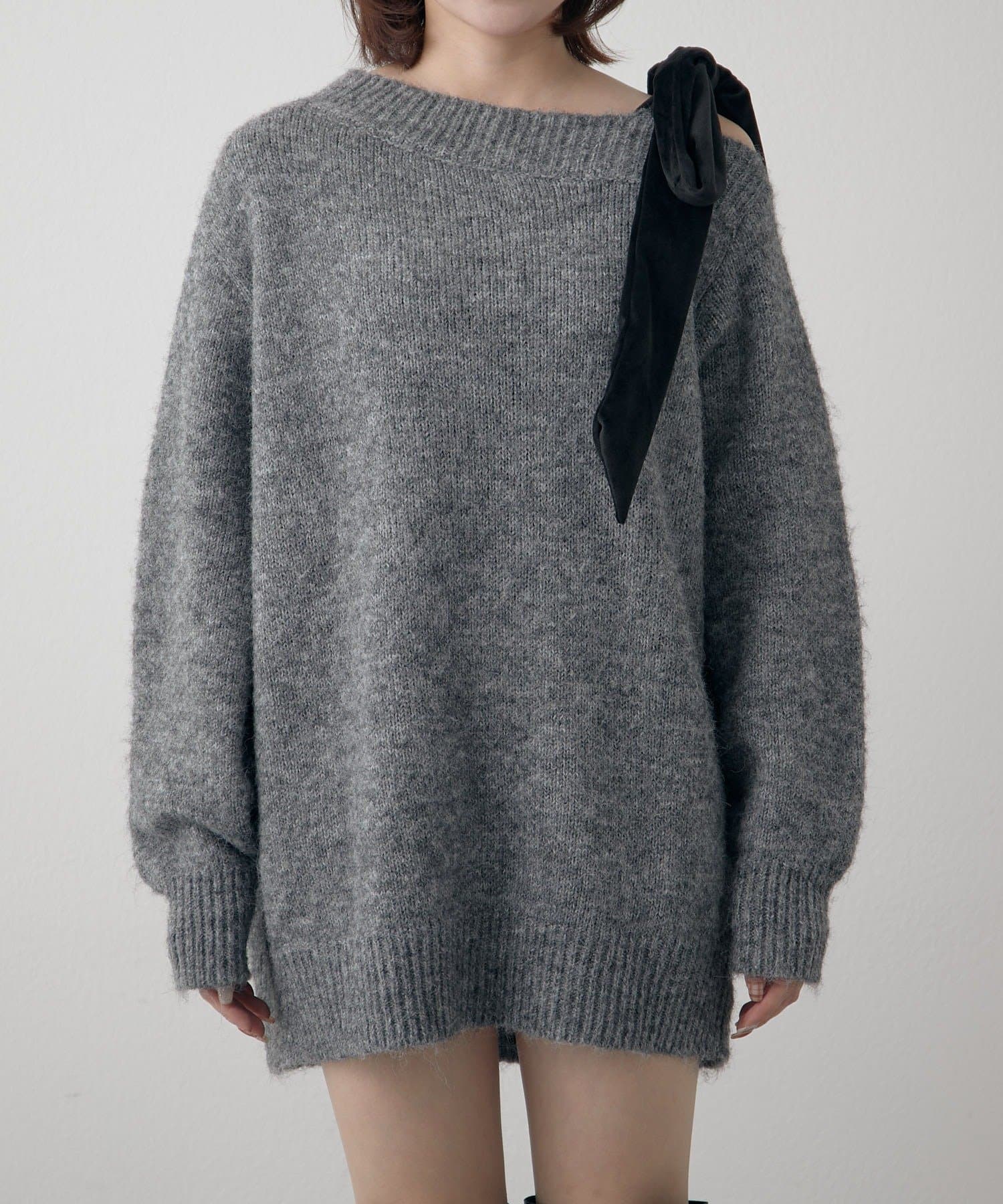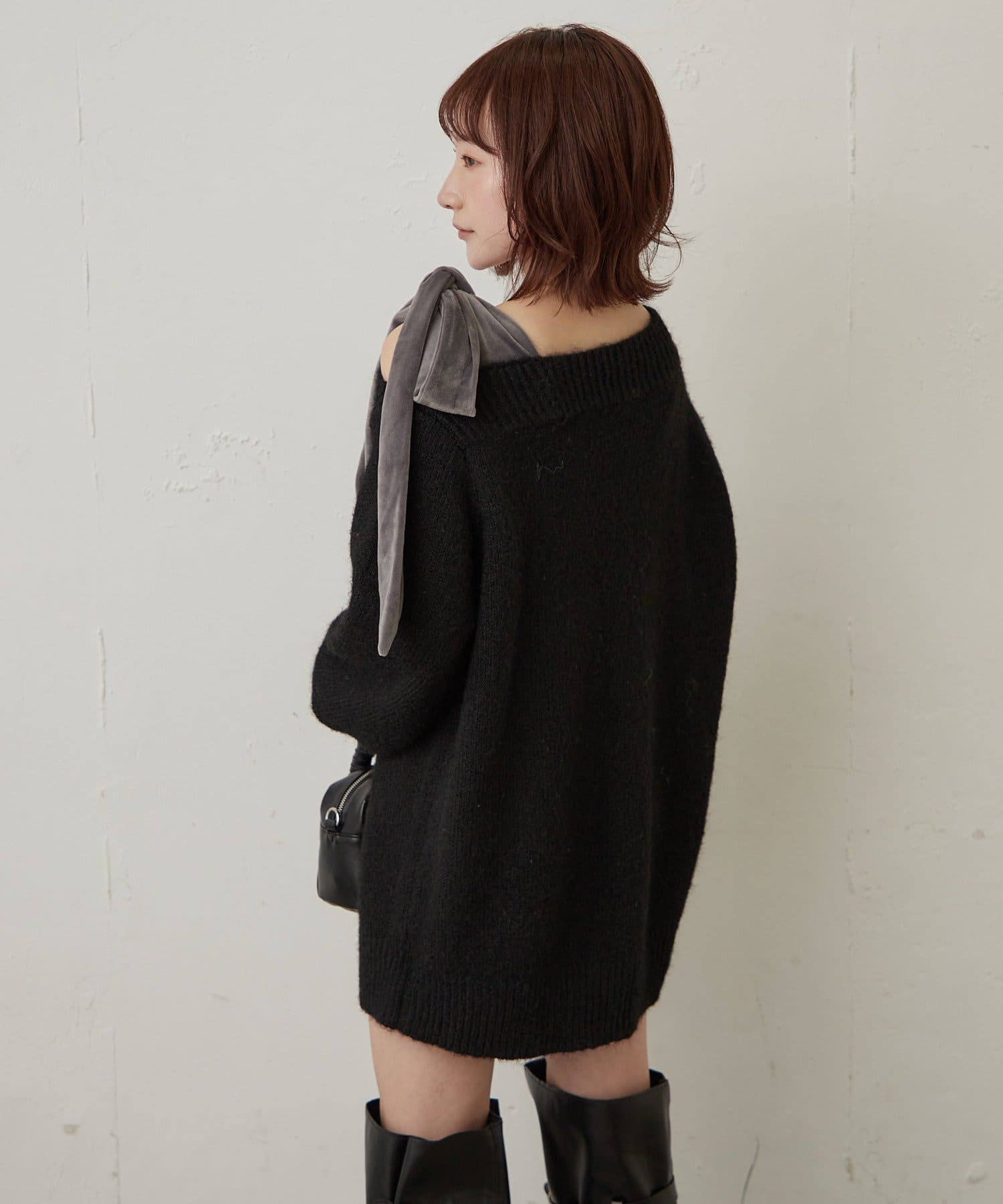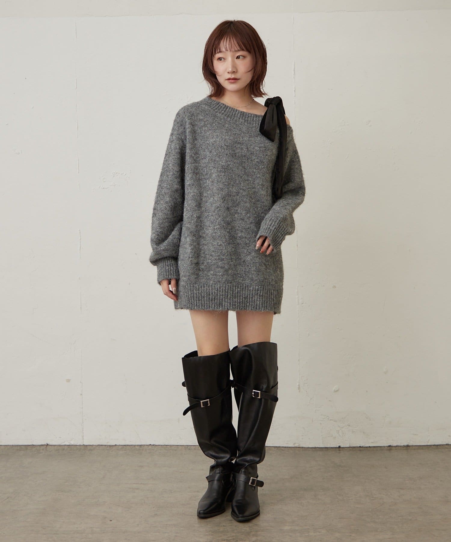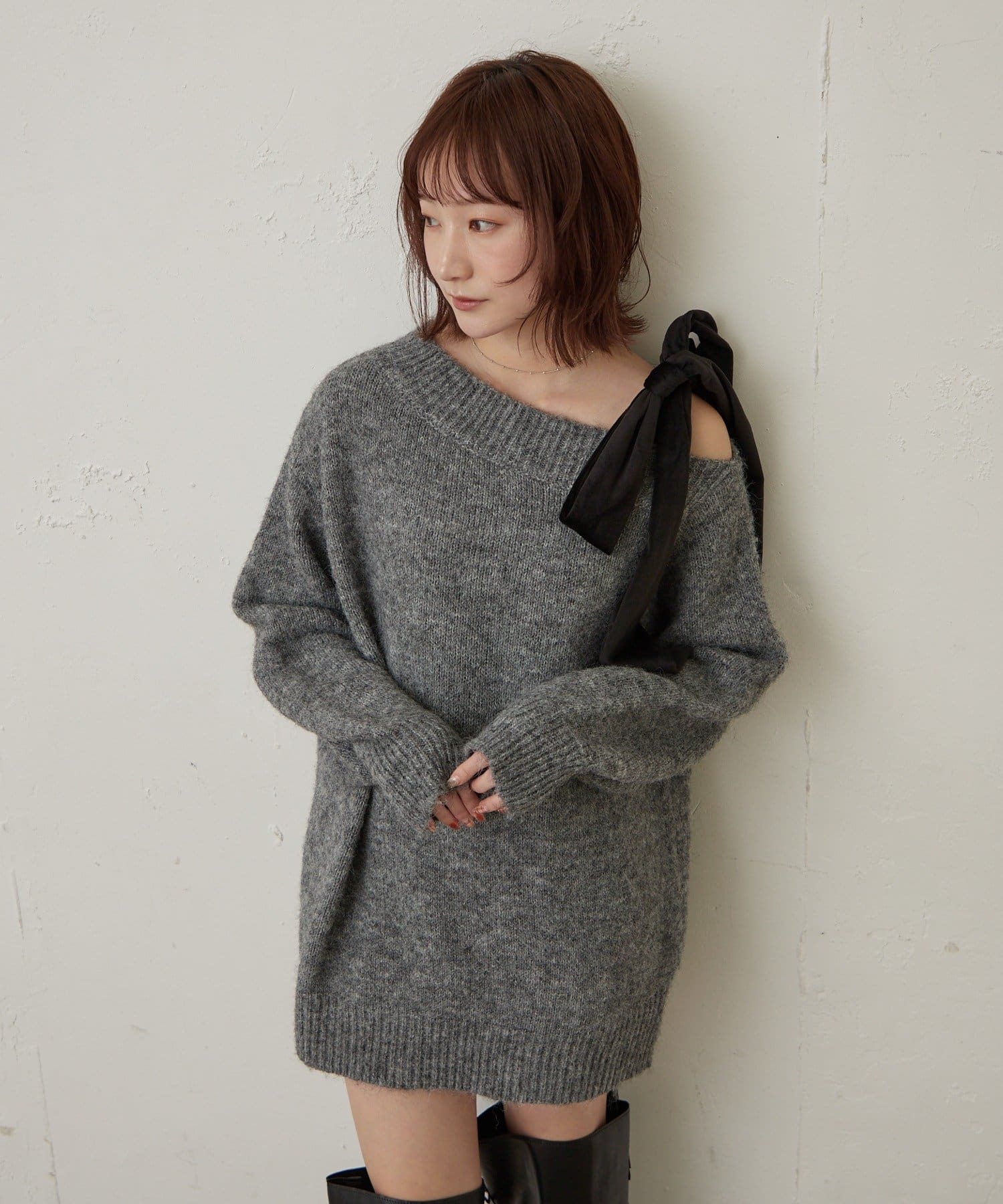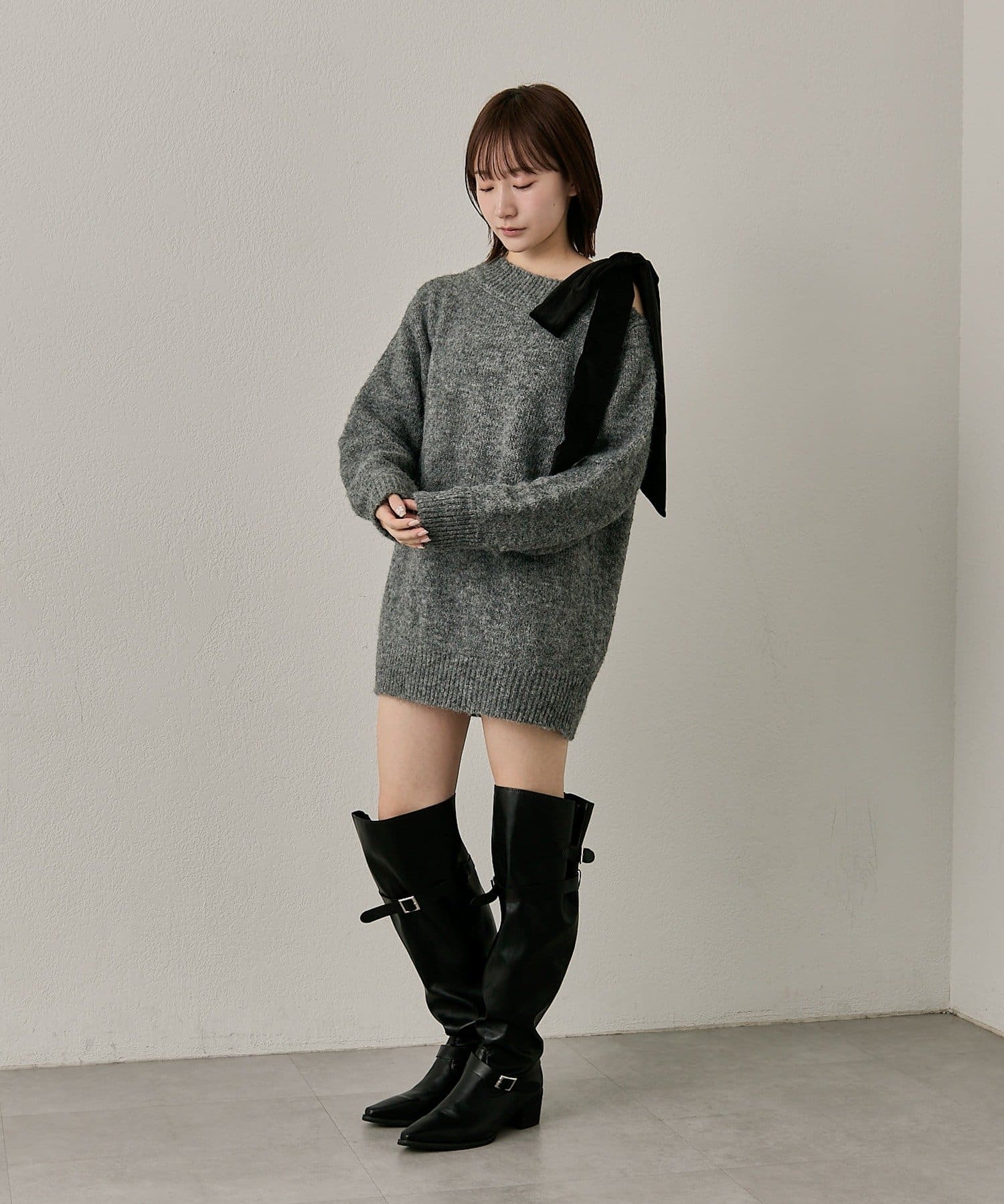 TOP > mline > レディース > トップス > ニット/セーター > [mline]ショルダーリボン ニットワンピース