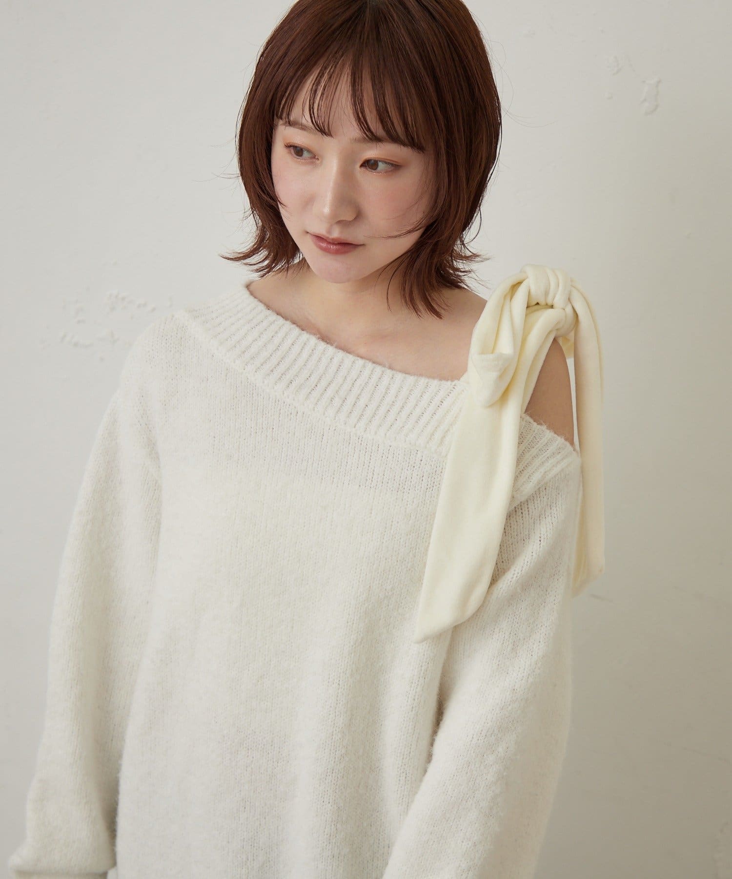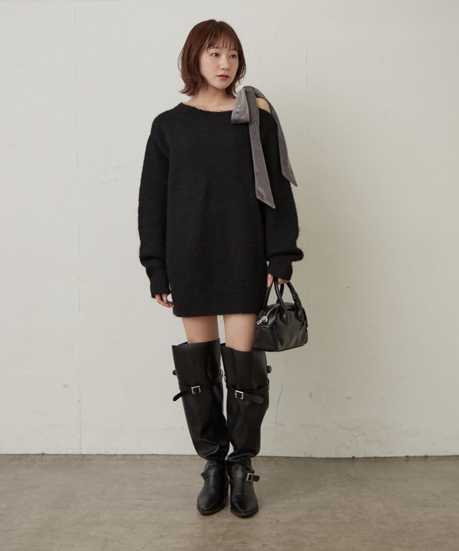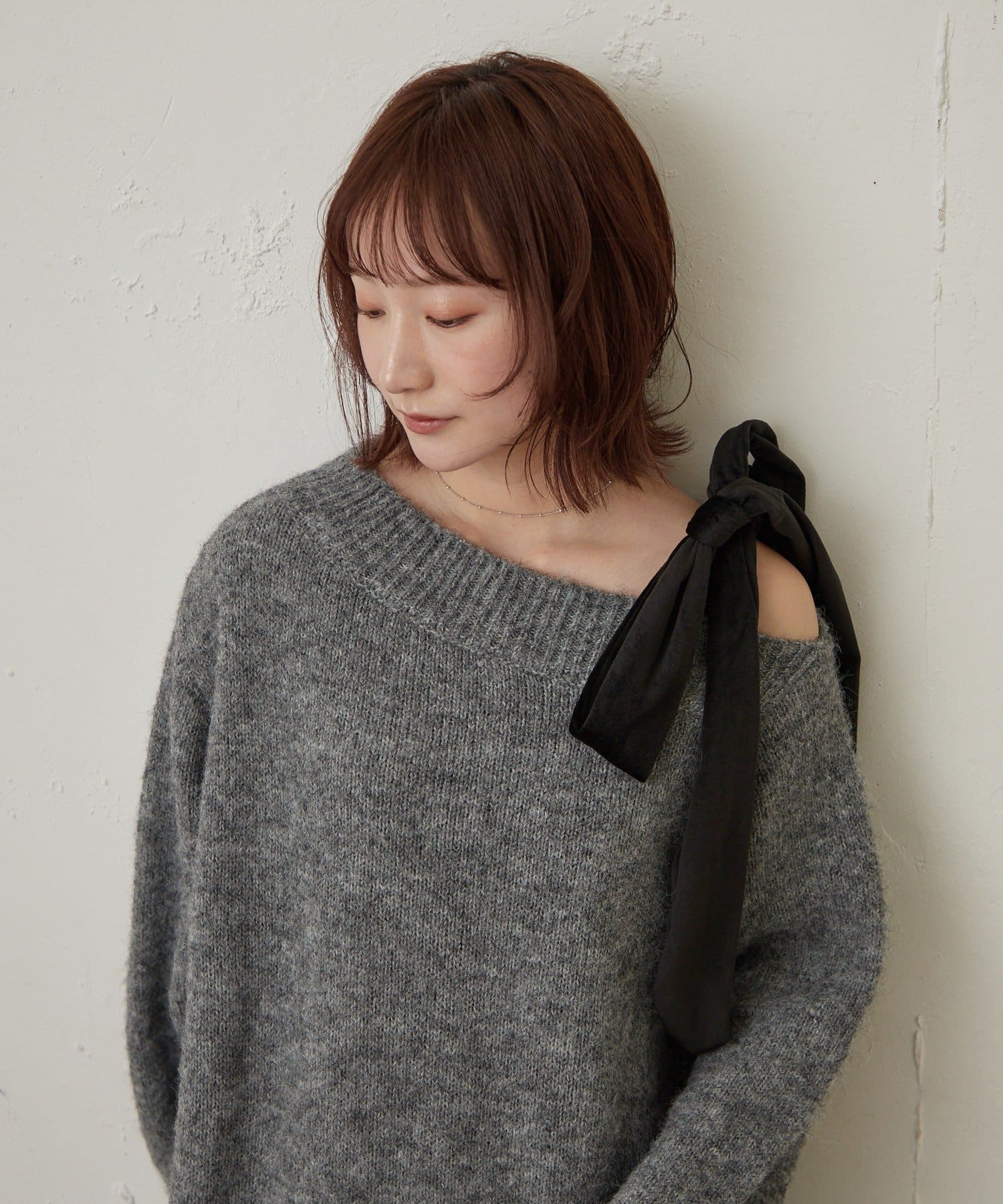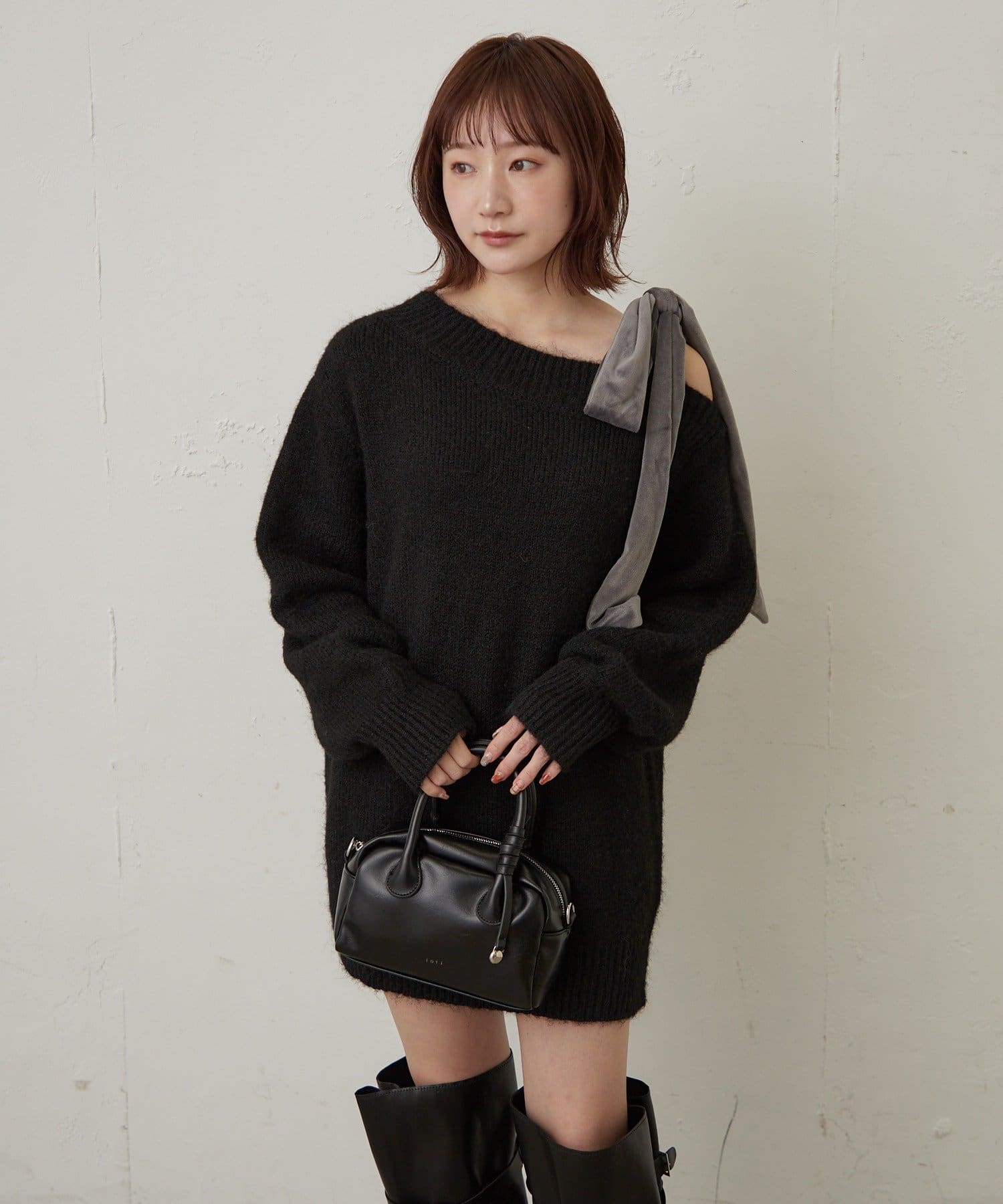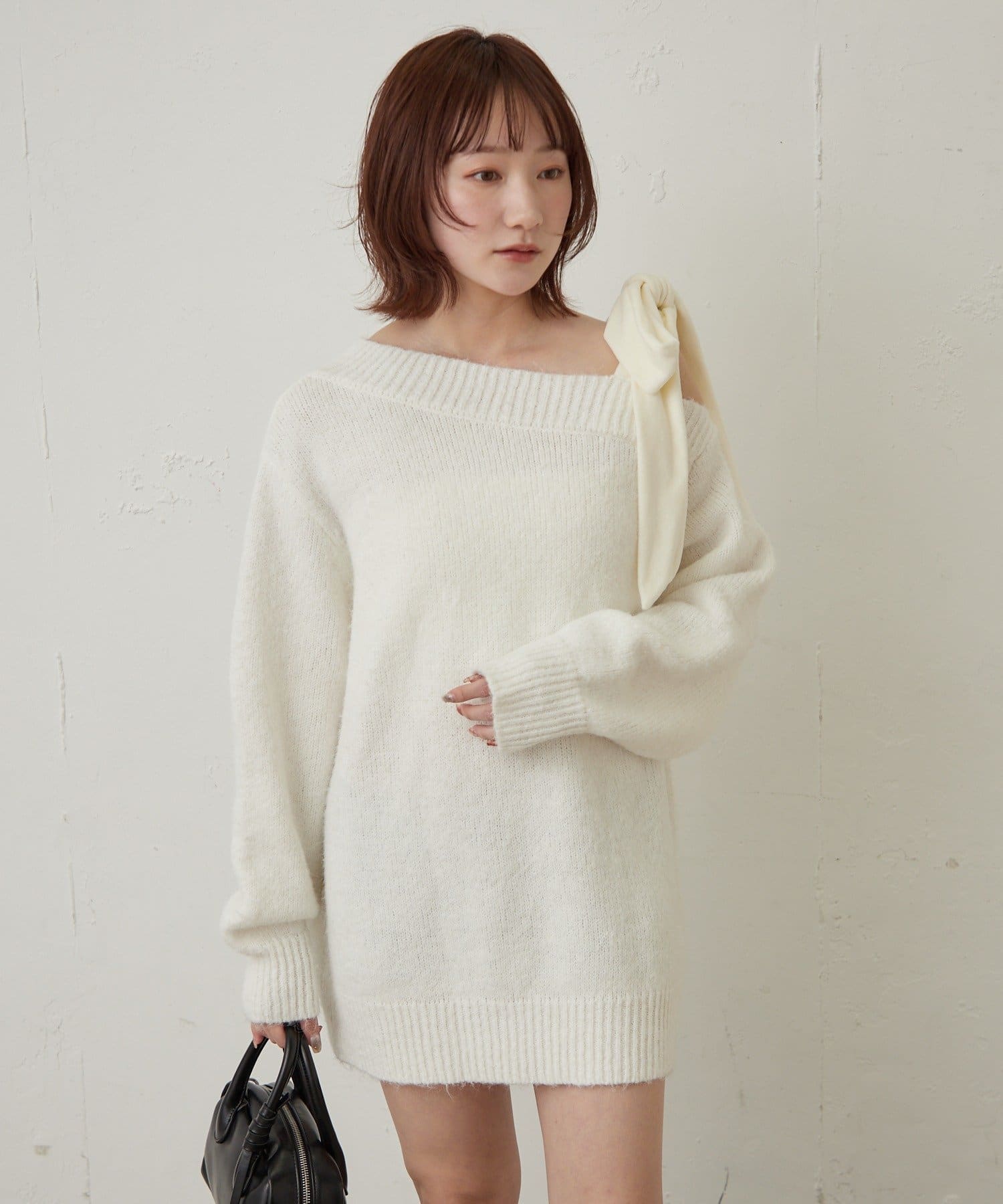 TOP > mline > レディース > トップス > ニット/セーター > [mline]ショルダーリボン ニットワンピース