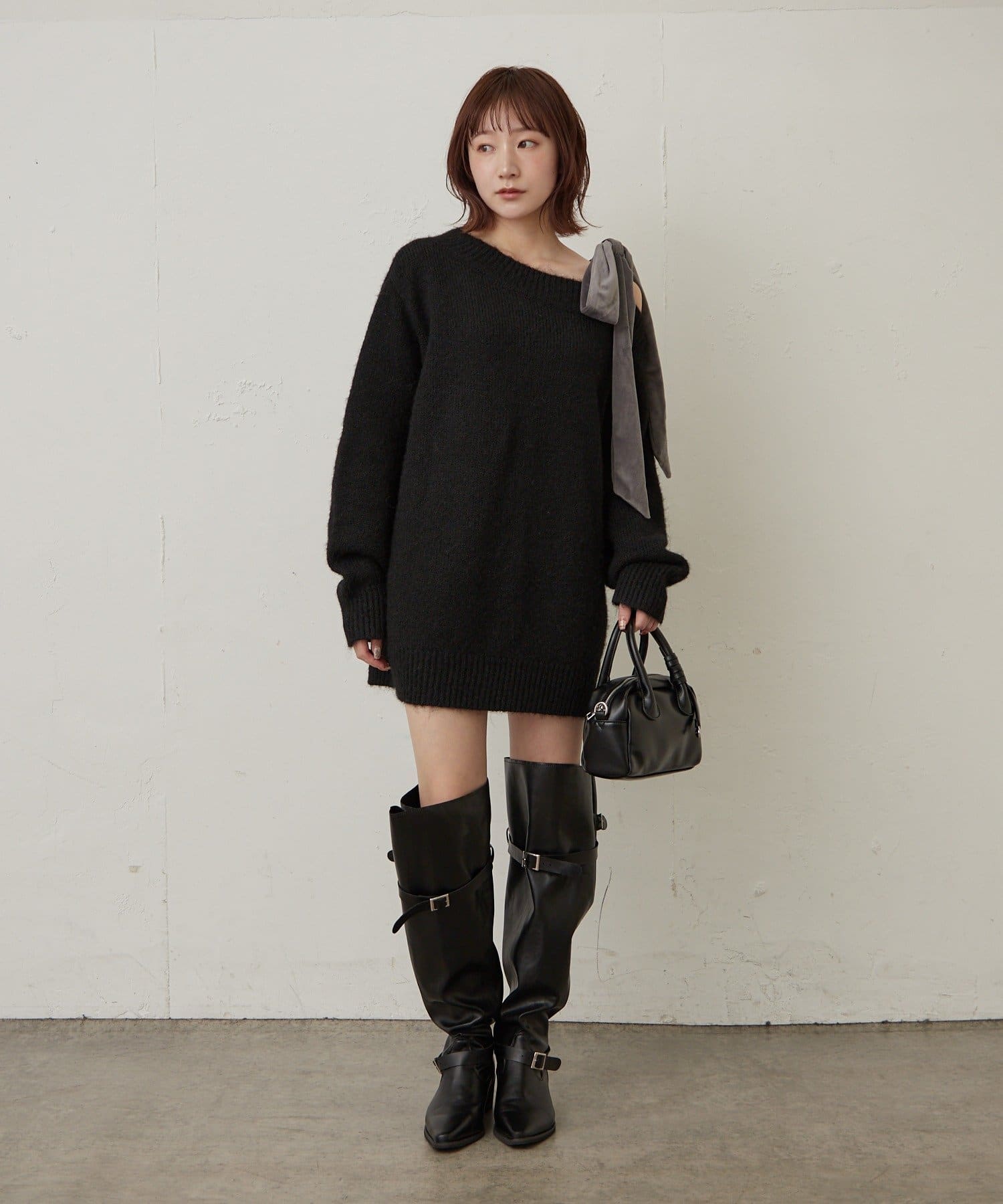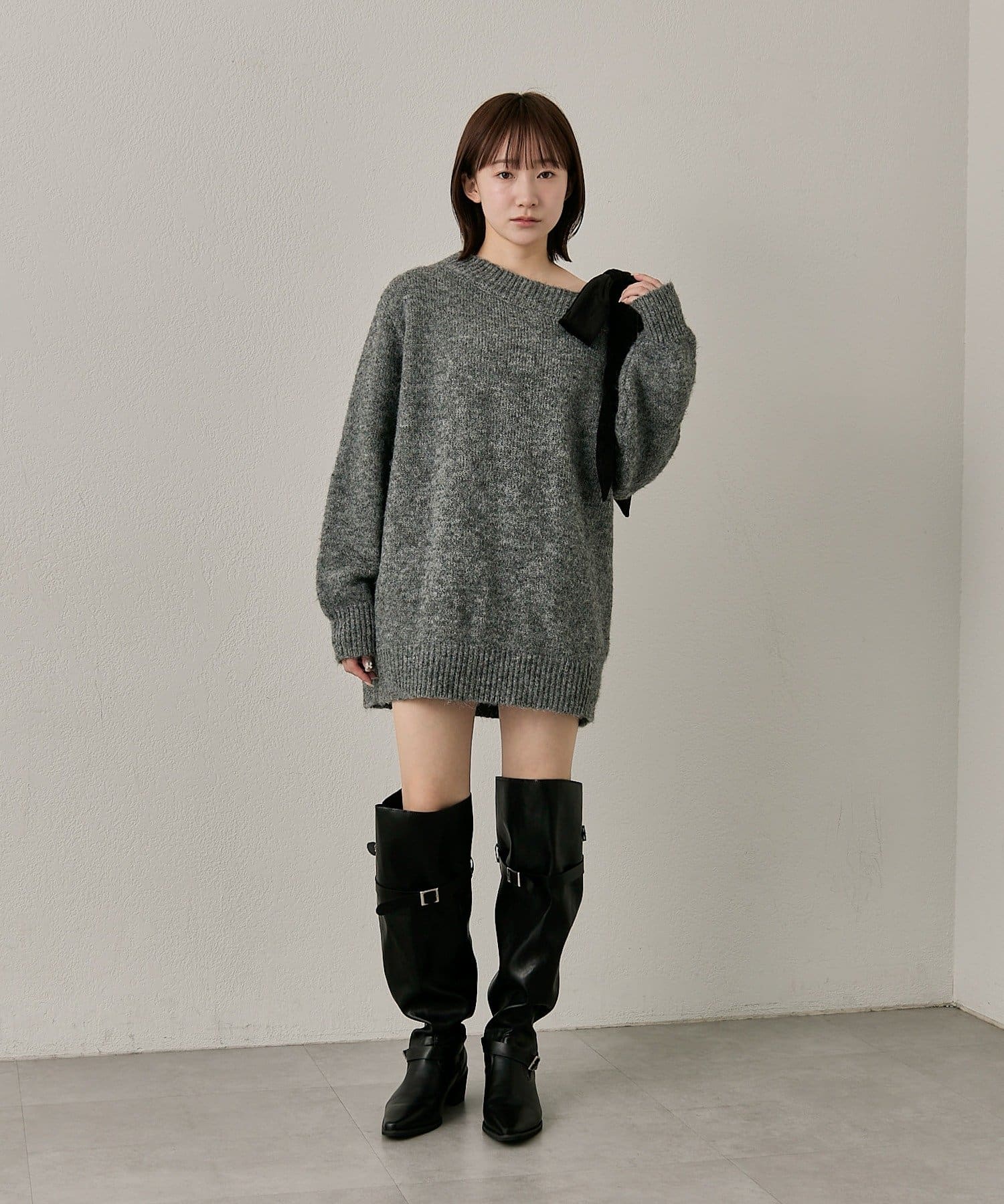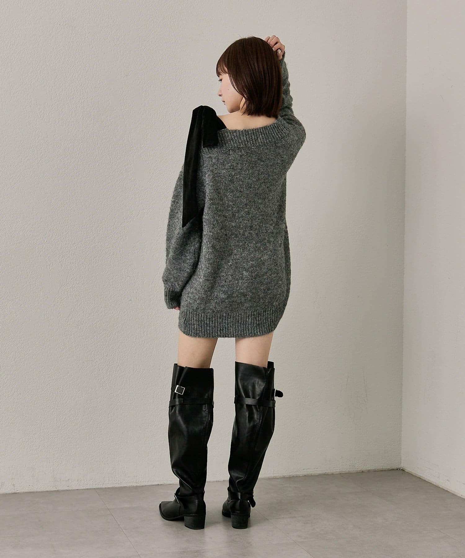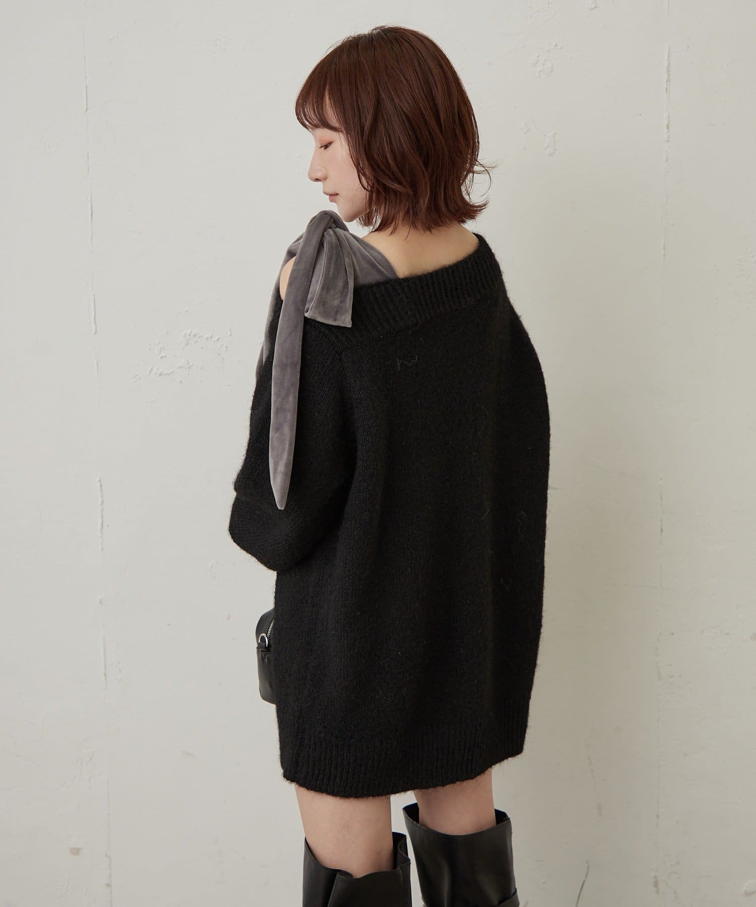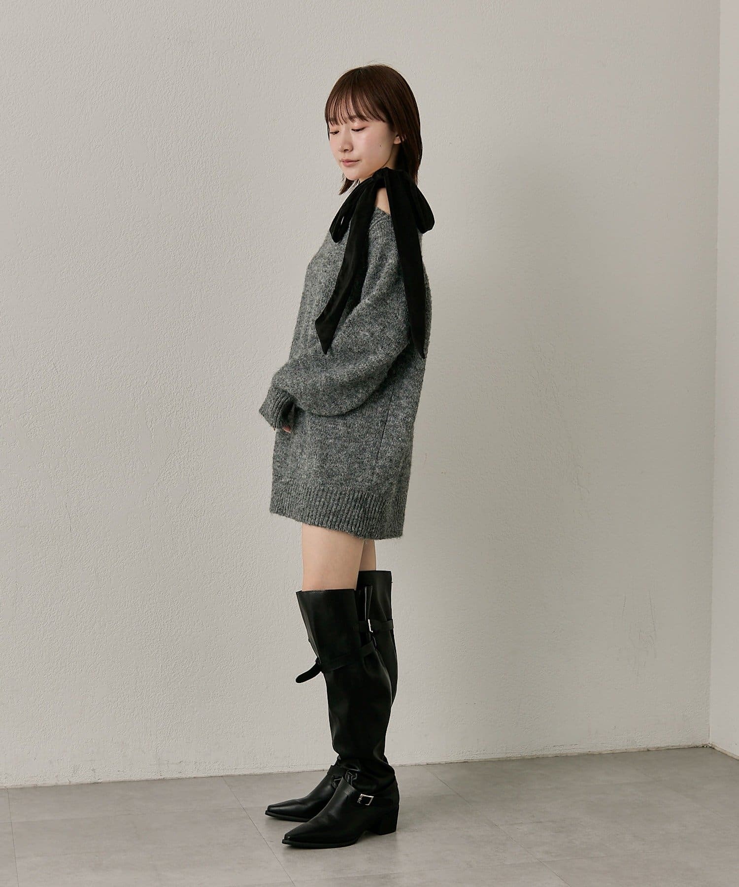 TOP > mline > レディース > トップス > ニット/セーター > [mline]ショルダーリボン ニットワンピース