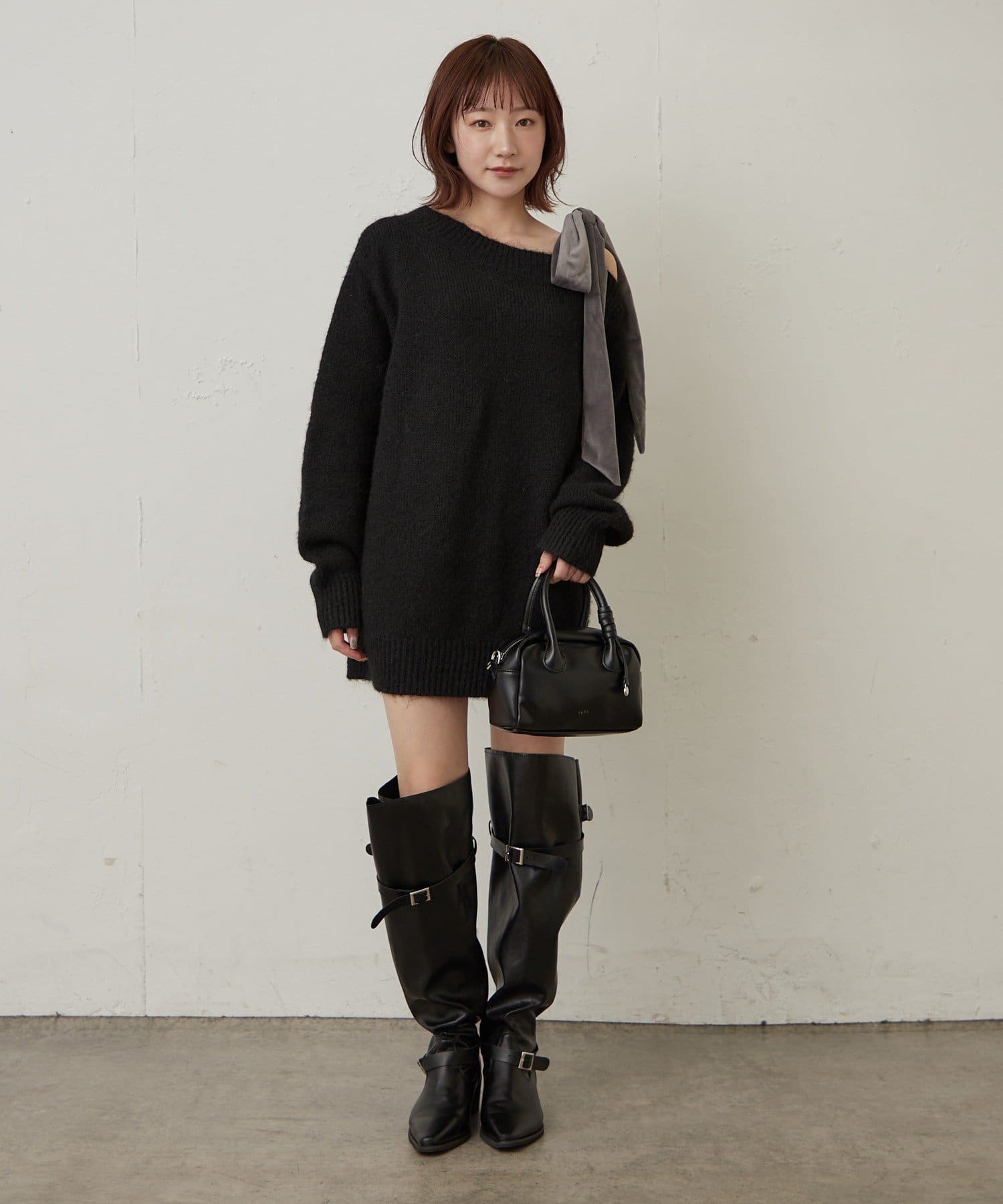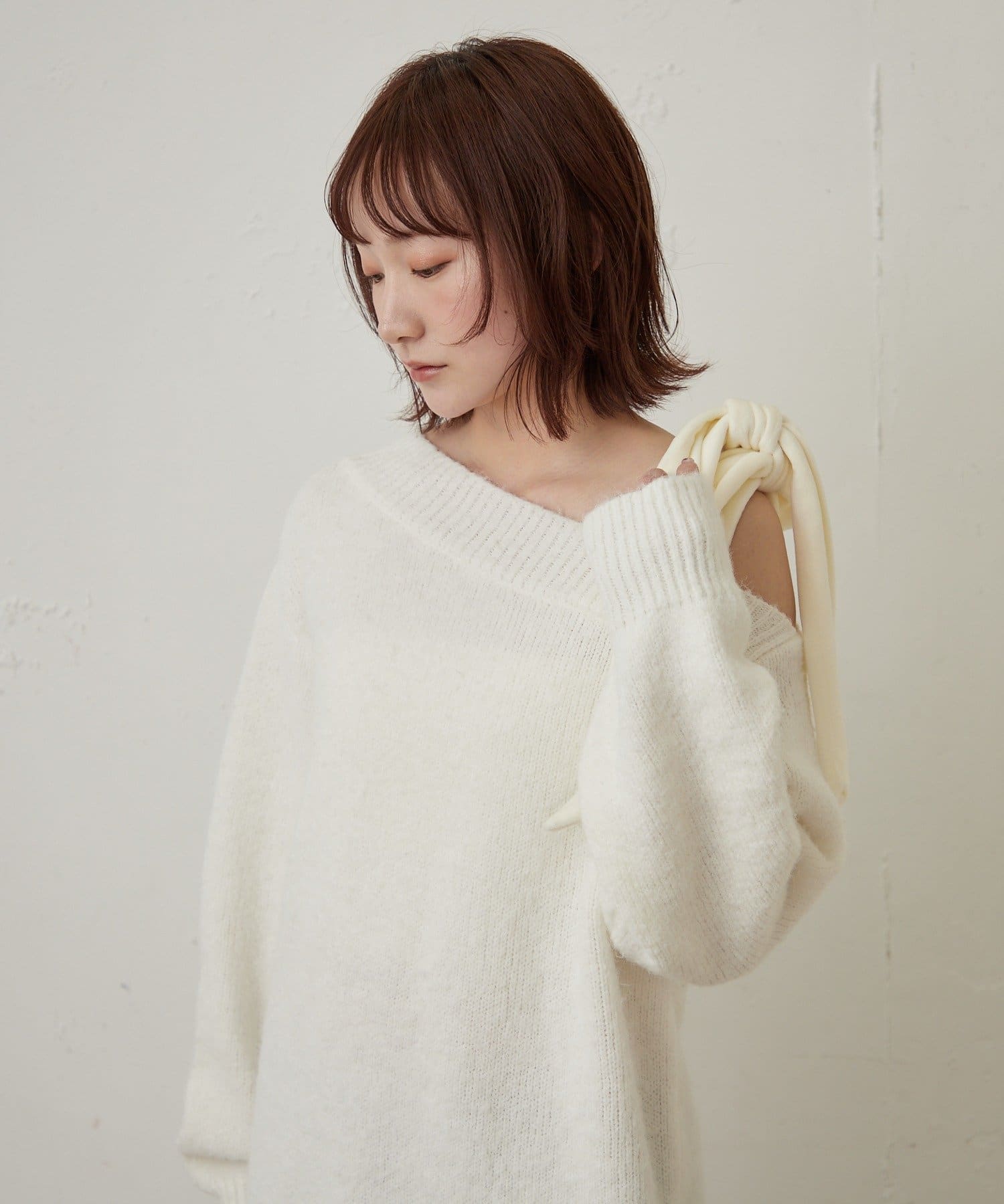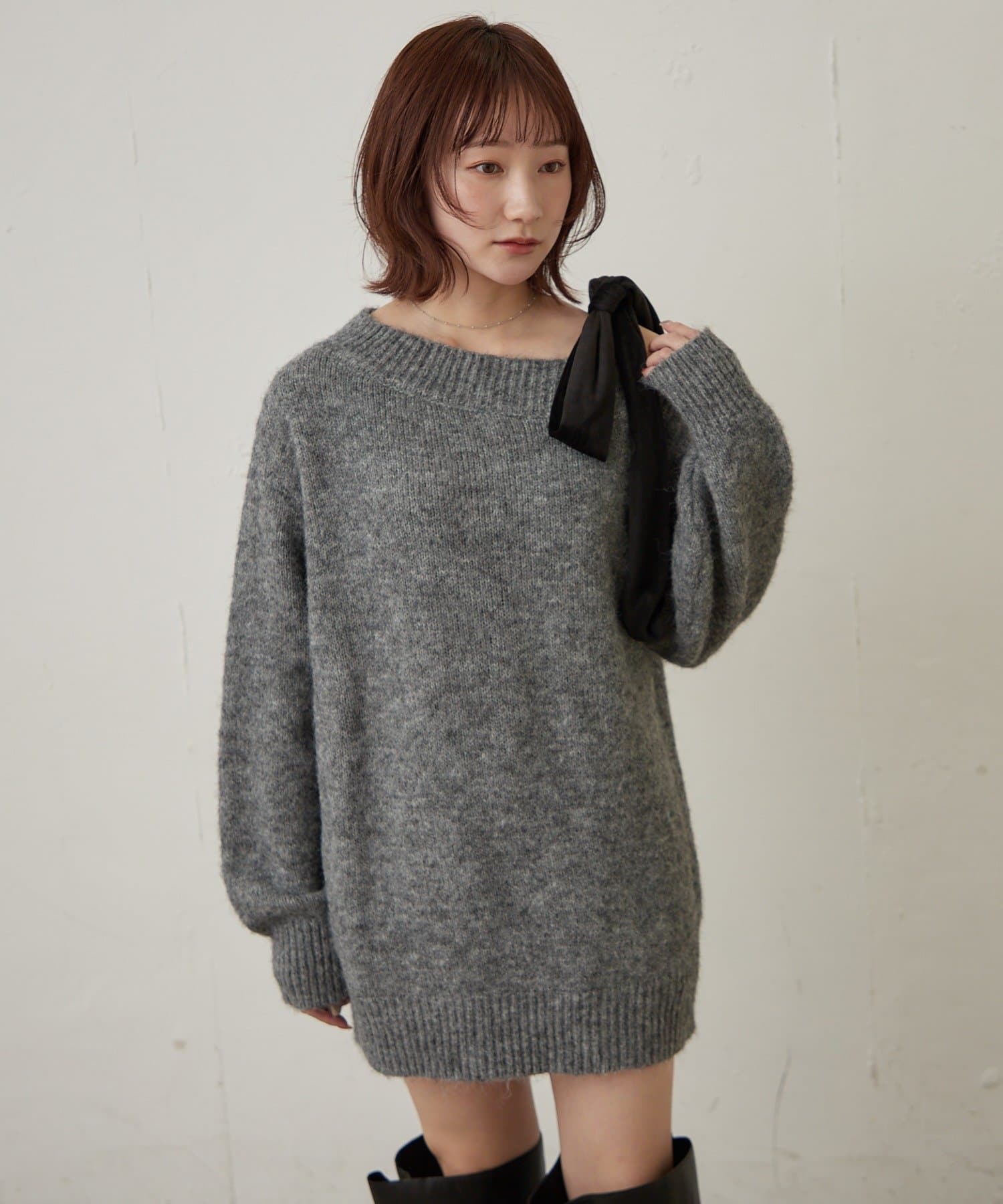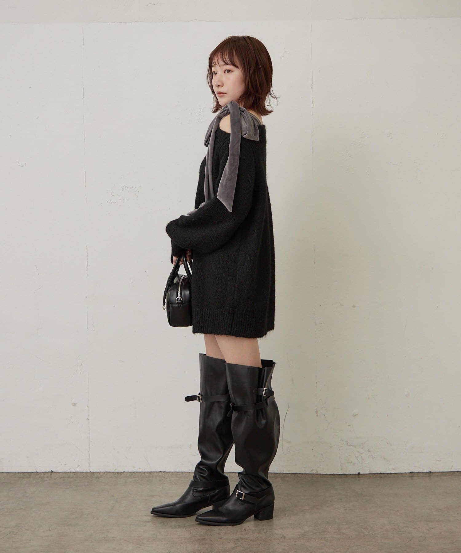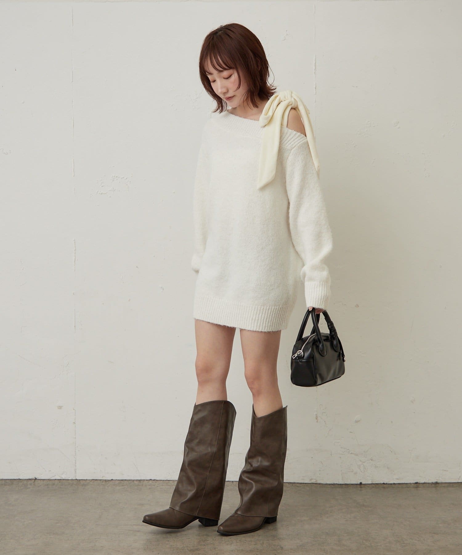 TOP > mline > レディース > トップス > ニット/セーター > [mline]ショルダーリボン ニットワンピース