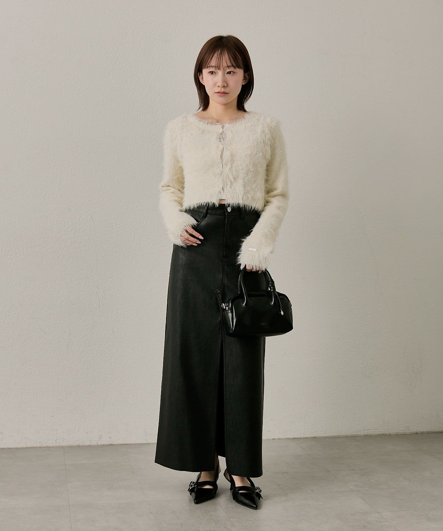 ・存在感のあるシャギー素材ですが、ショート丈でスタイリッシュな印象。