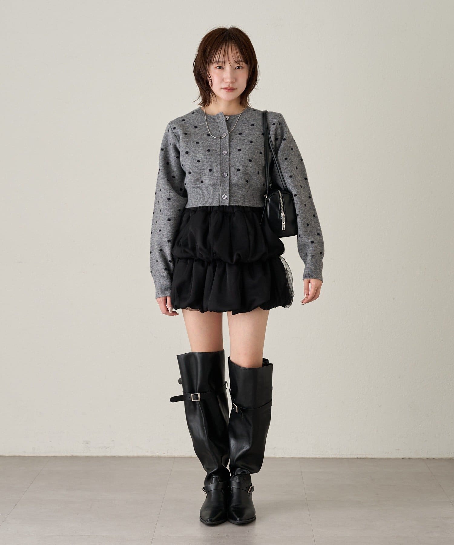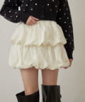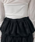 ・トレンド感のあるバルーンスカートにプラスして、チュールレイヤードのティアードデザインが個性を演出してくれます。