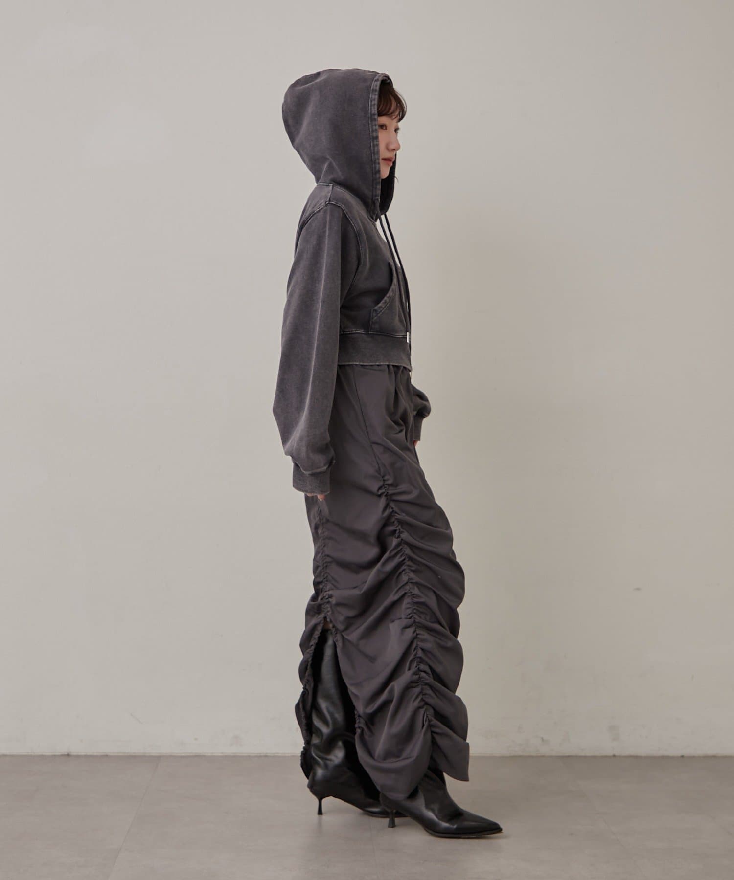 ギャザーデザインが目を惹く◎ナイロンカーゴスカート