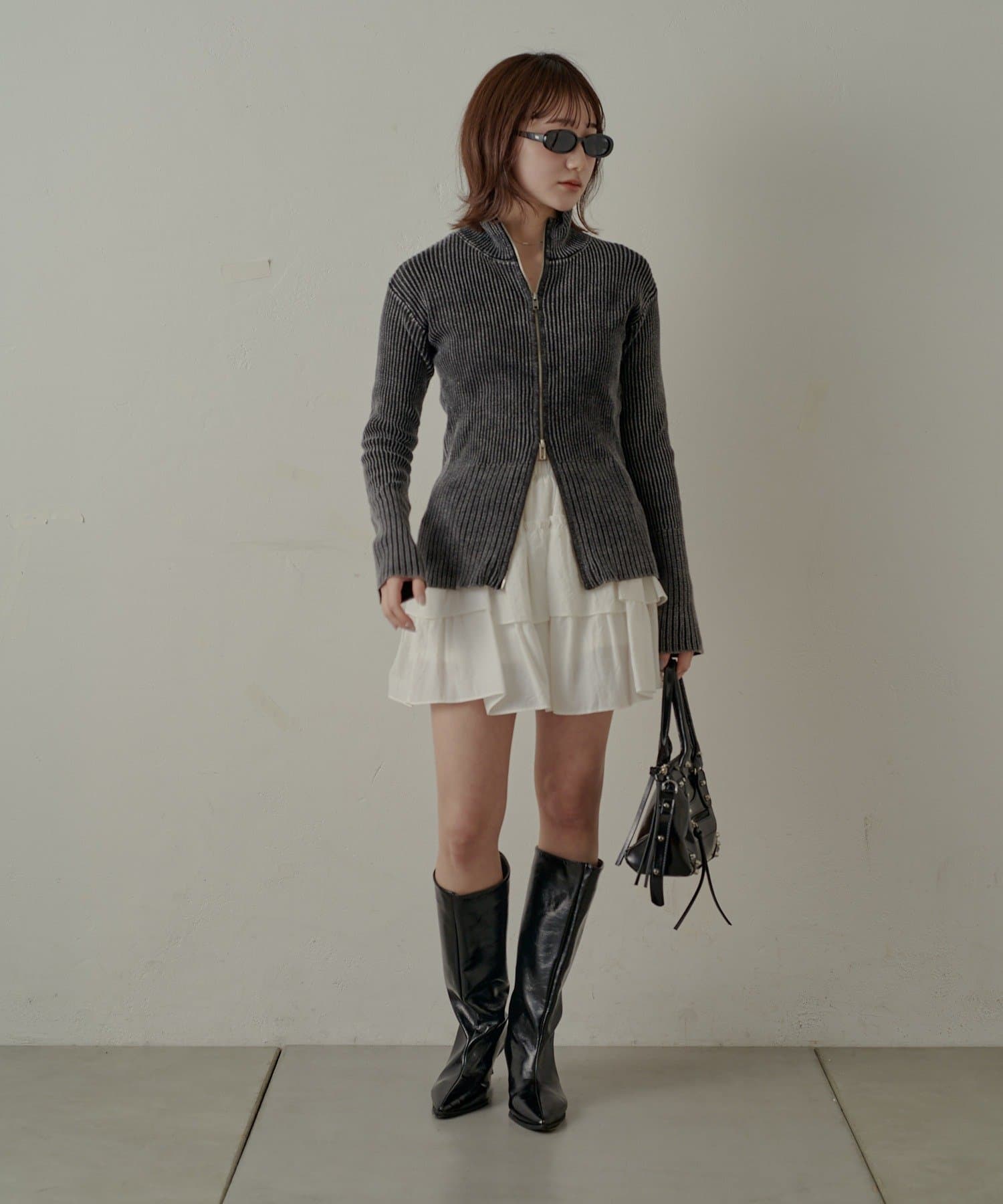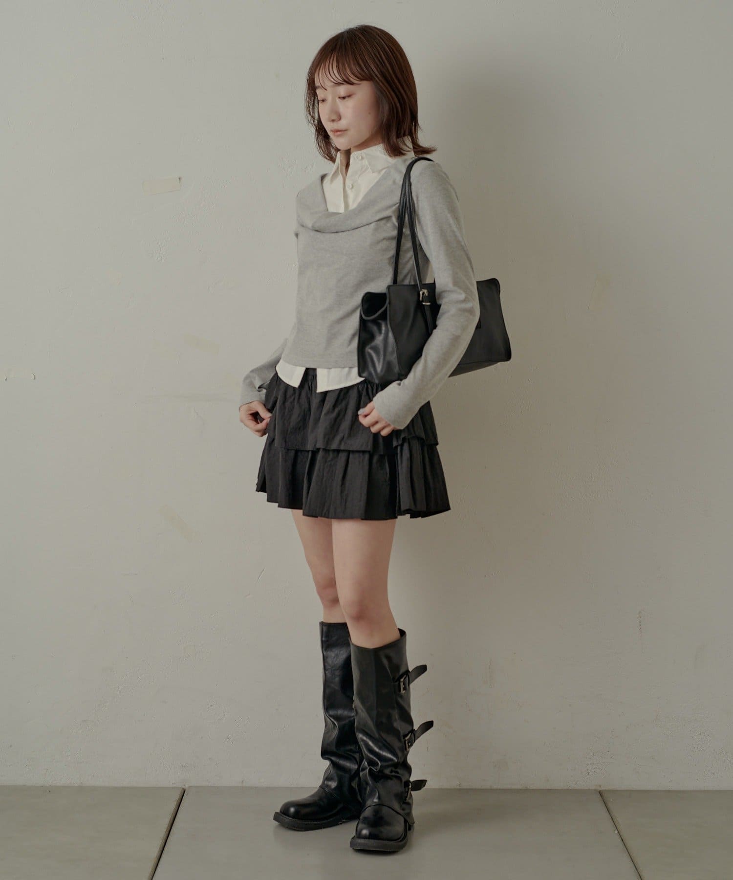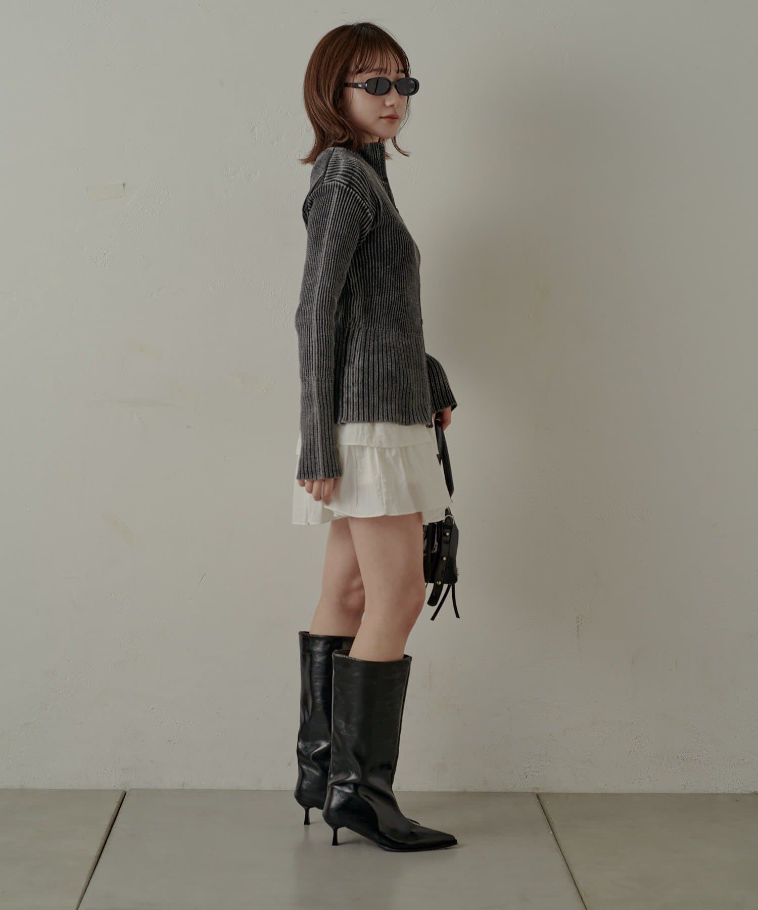 ・足元はロングブーツを合わせるとスタイルアップも叶います。