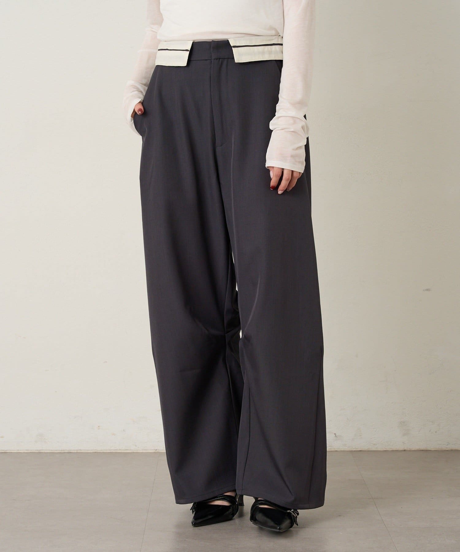 [mline]ウエスト折り返し スラックスパンツ