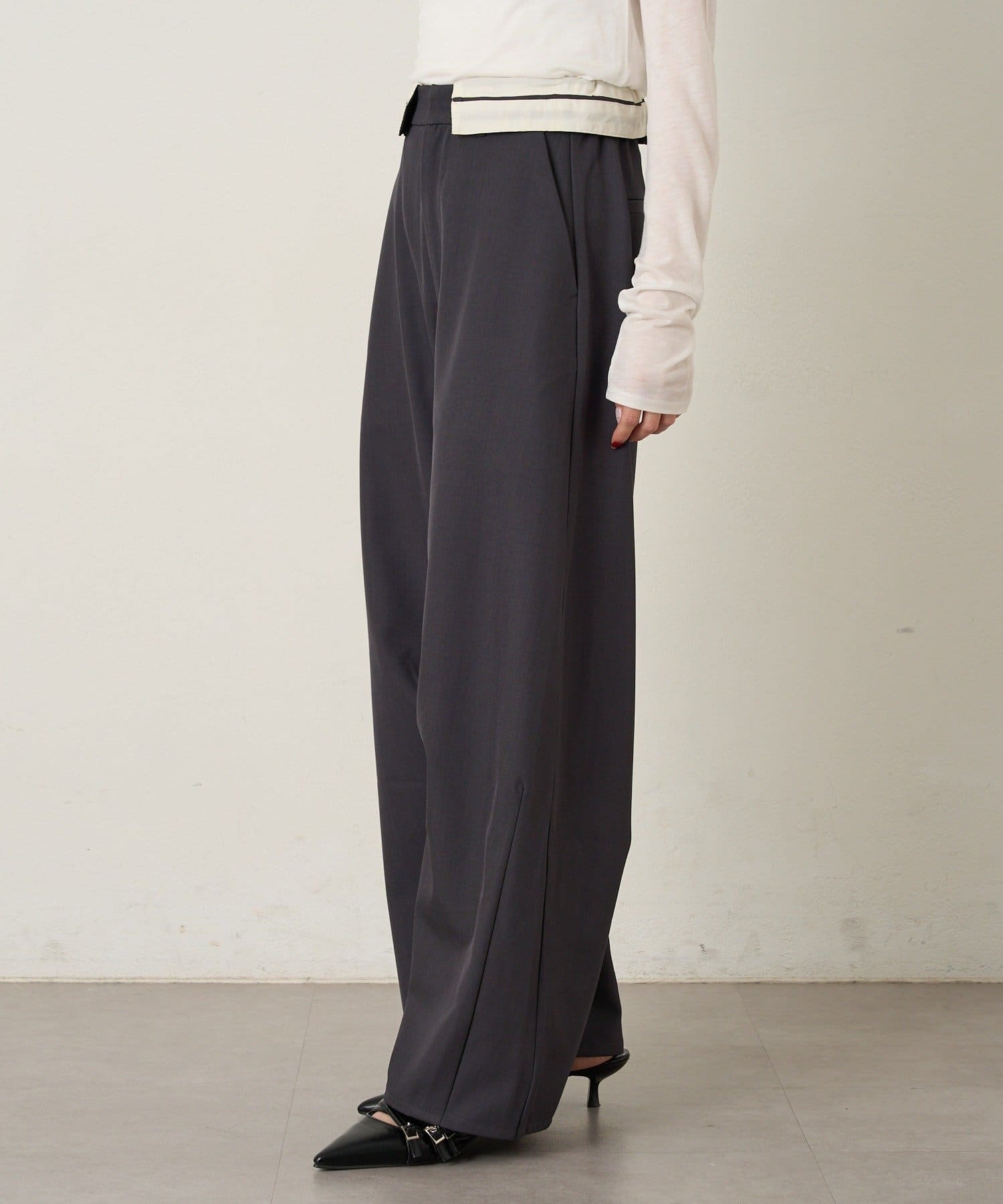 美脚見えシルエットのウエスト折り返しスラックスパンツ