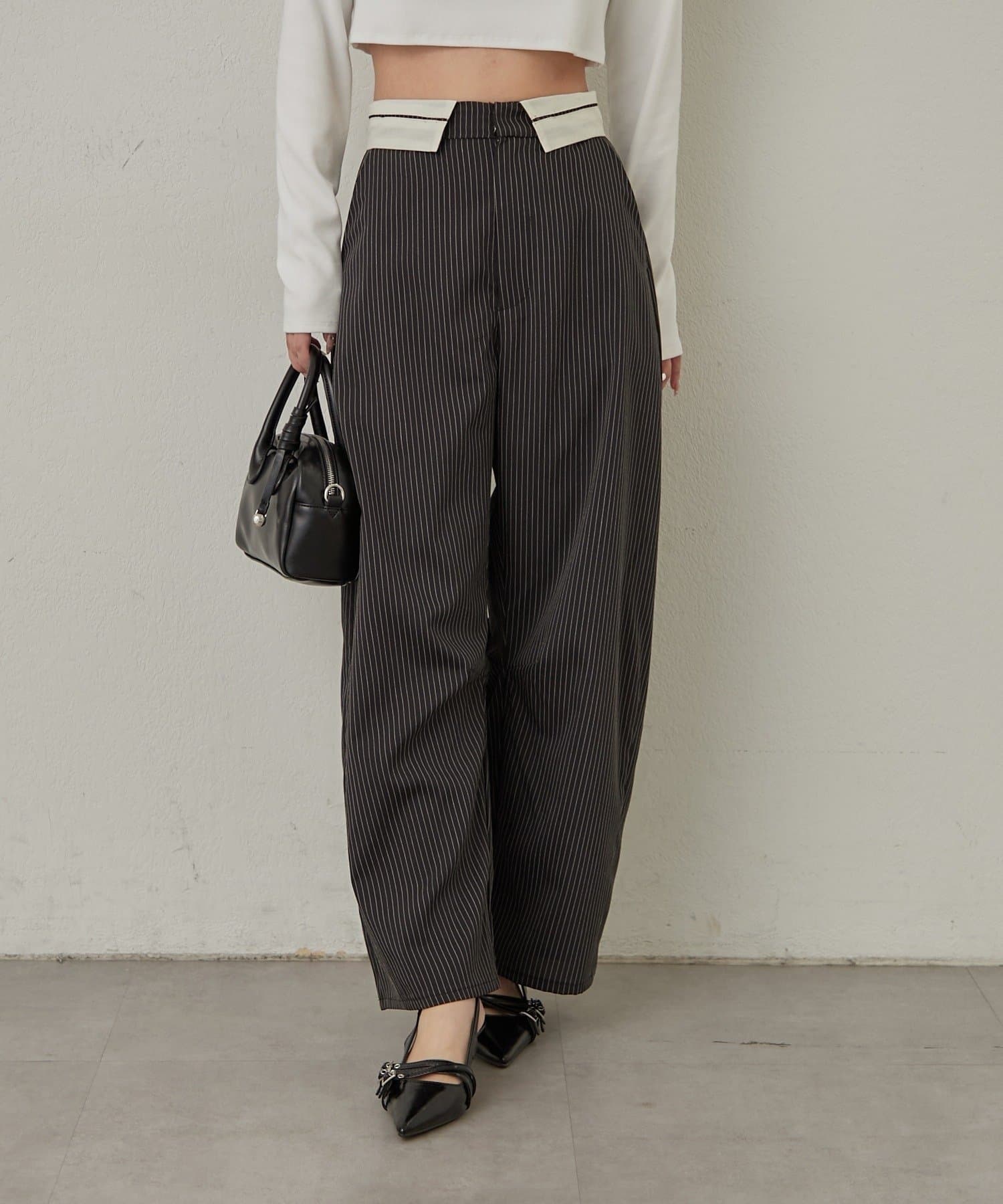 ・ウエスト部分の折り返しがアクセントに。一味違ったスラックスパンツ◎