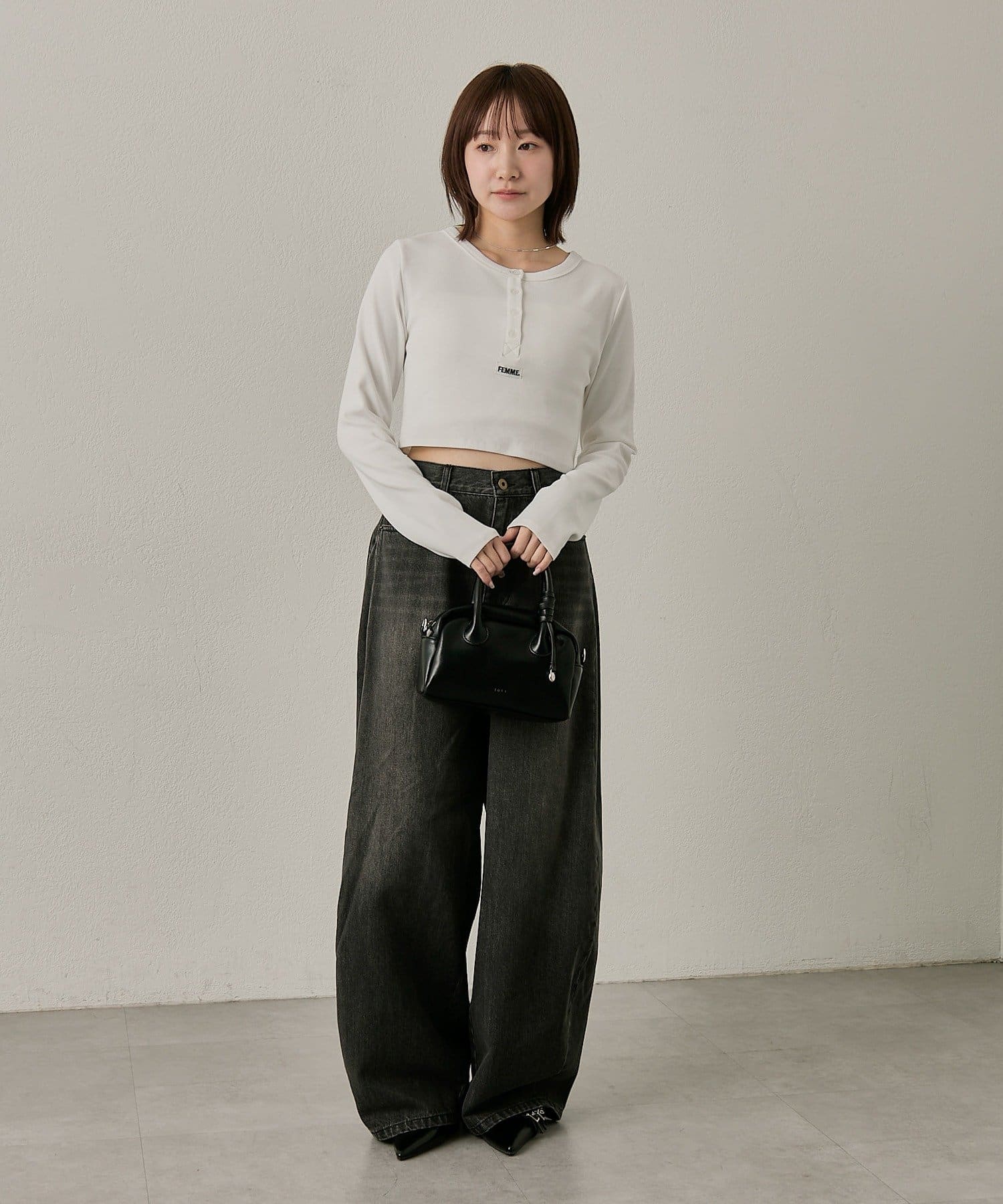 ・ボリュームのあるシルエットのため、トップスはショート丈やコンパクトなものが◎
