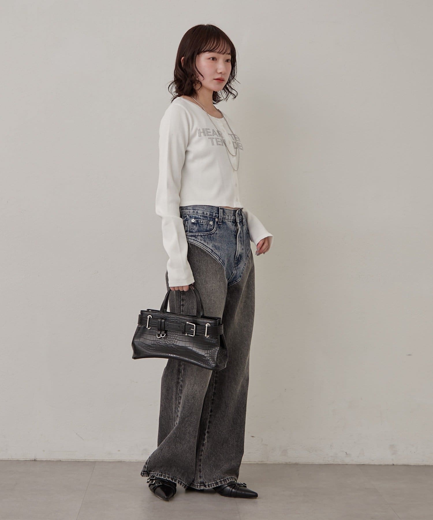 ・レイヤード位置が高いため、脚長効果も。