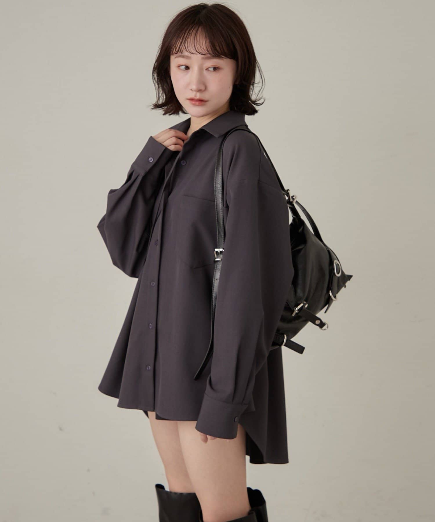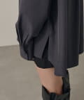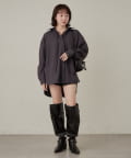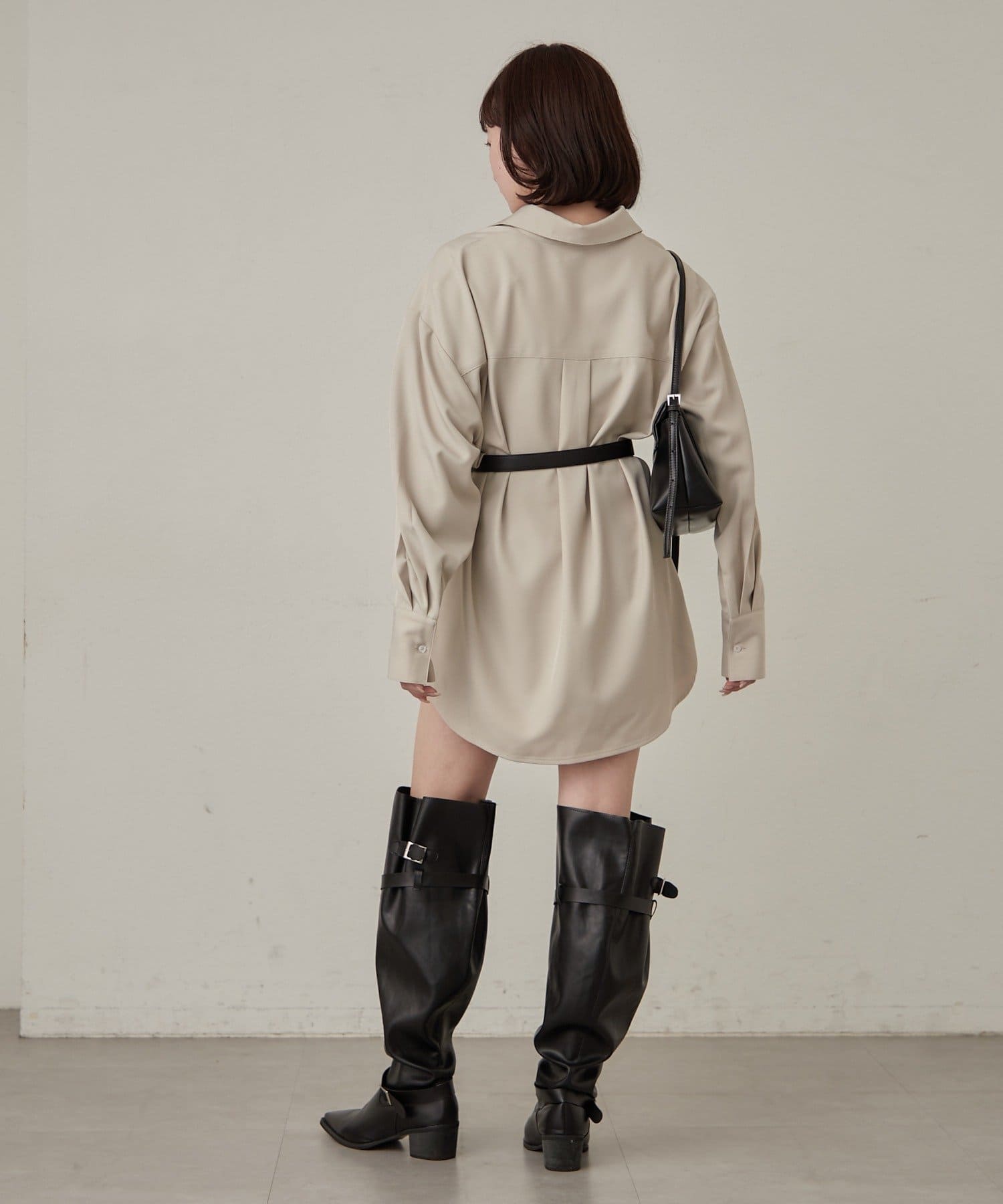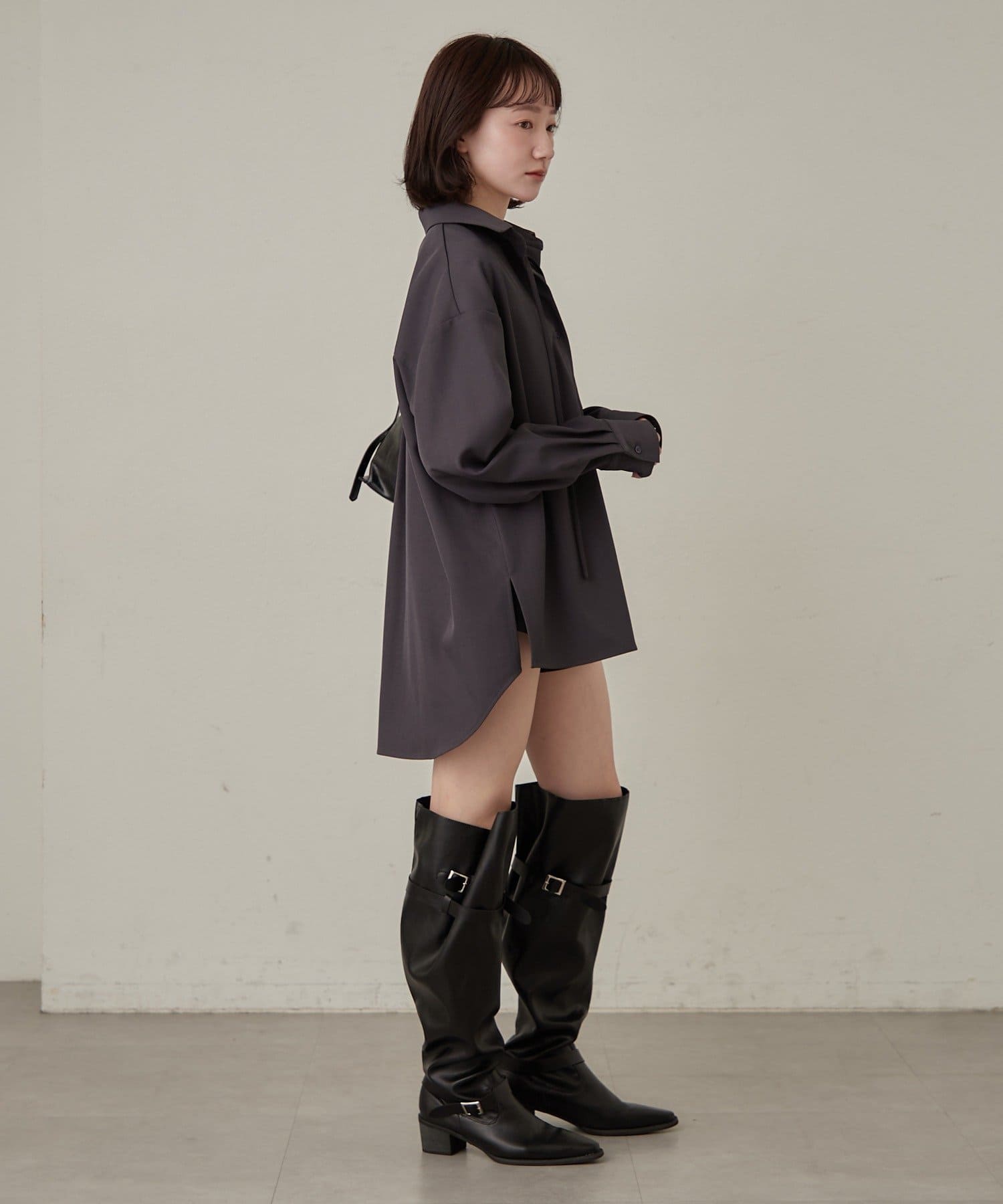 ・ショートパンツ合わせでワンピース風に。足元はロングブーツでクールな印象に◎