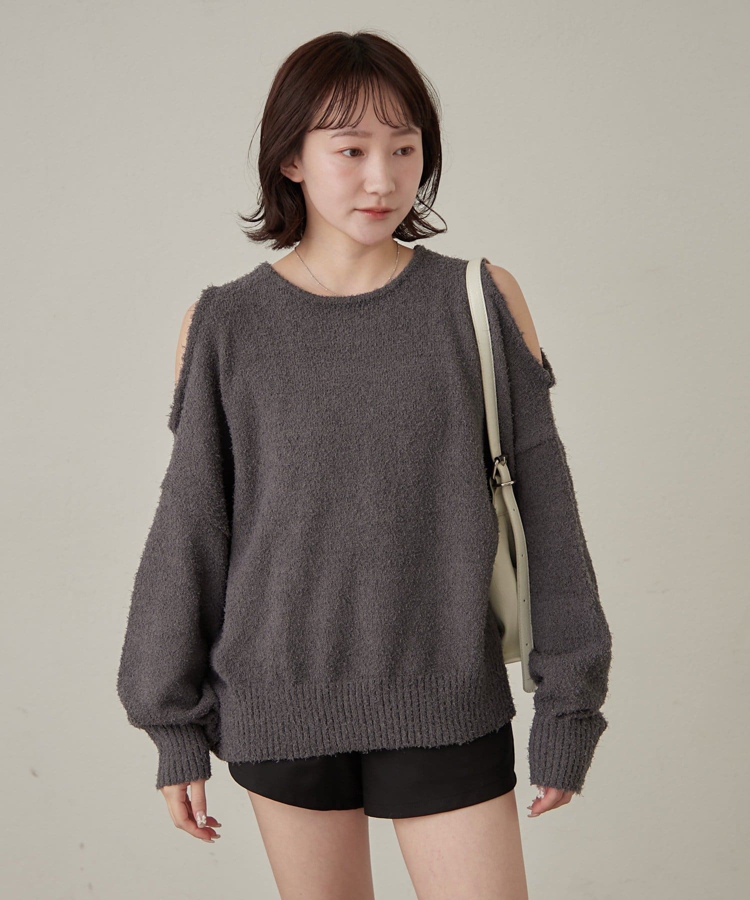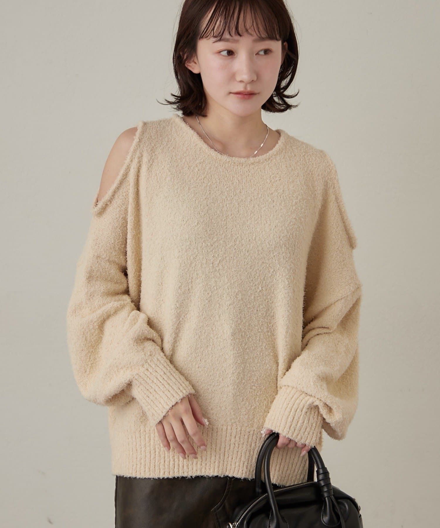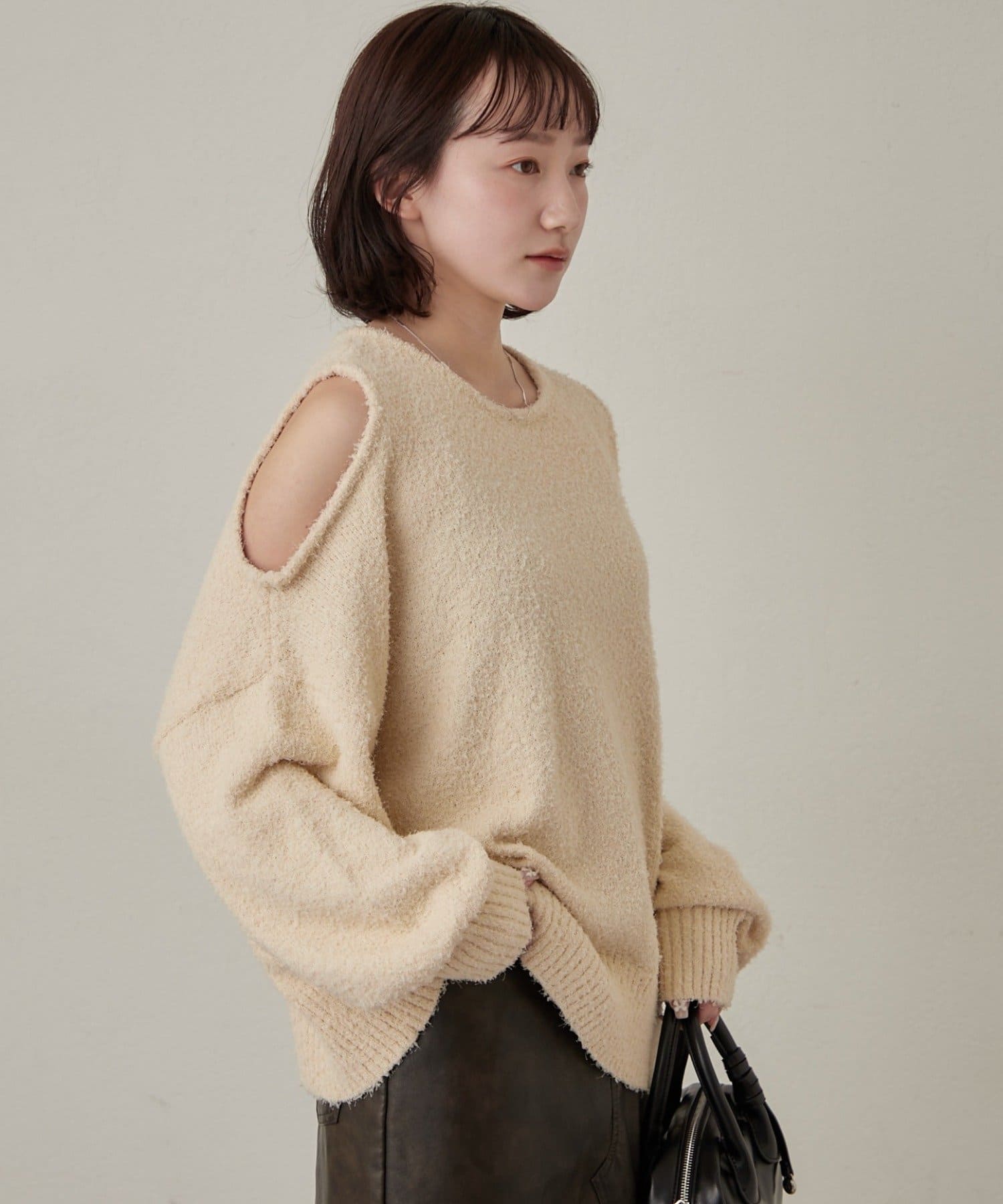 ・肩あきデザインで寒い時期でもさり気ない肌見せが叶う◎