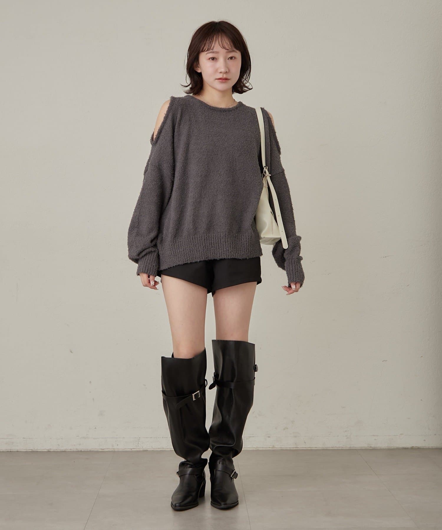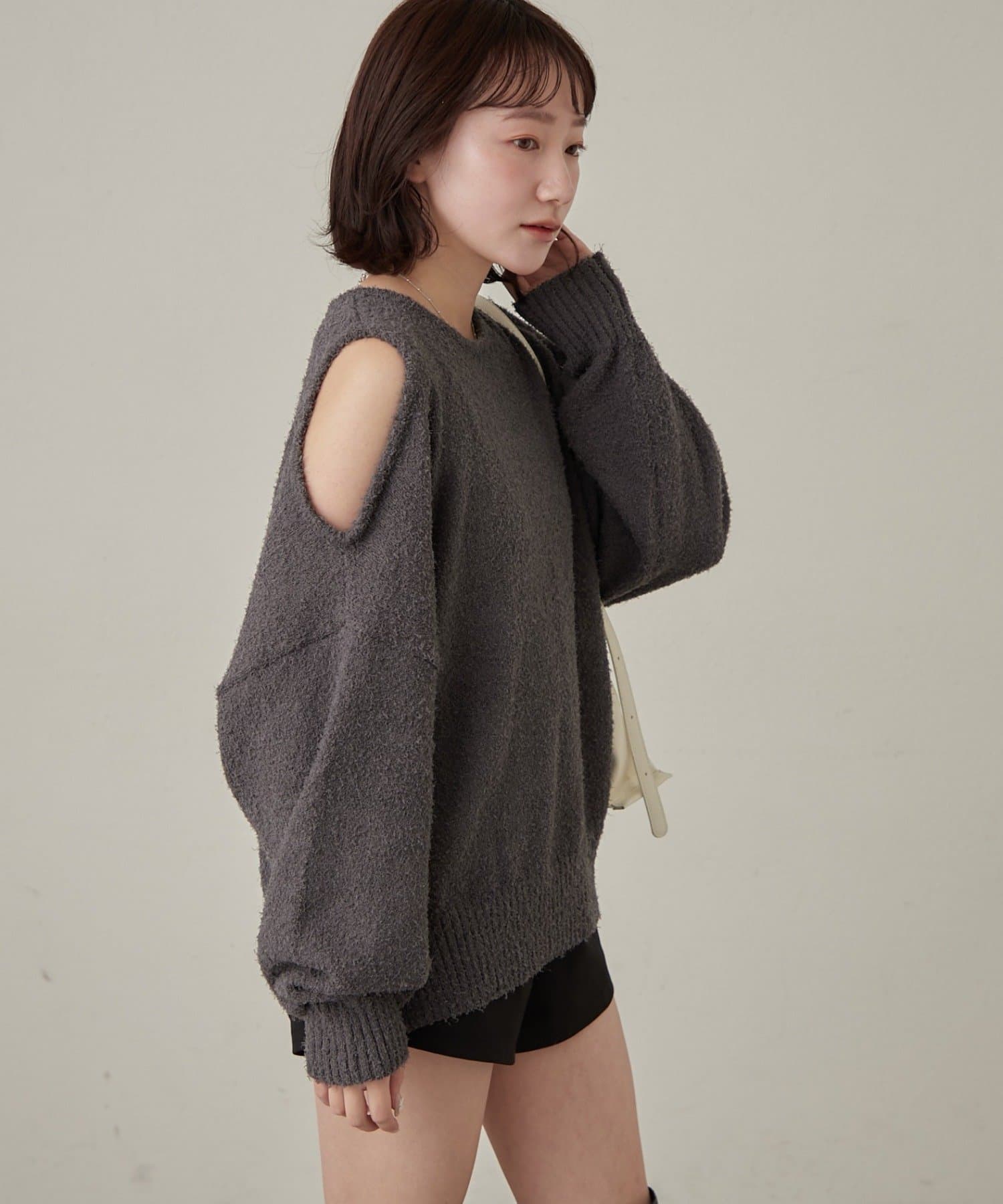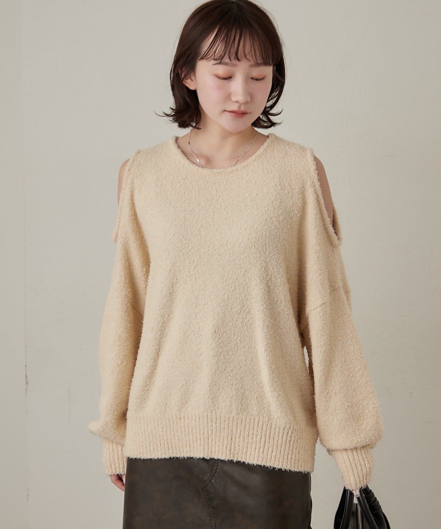 ・肩あきデザインで寒い時期でもさり気ない肌見せが叶う◎