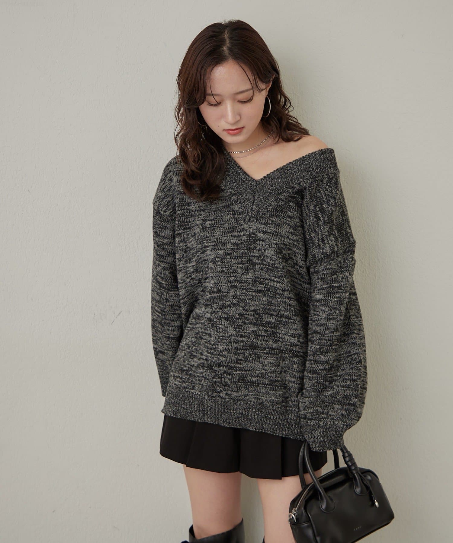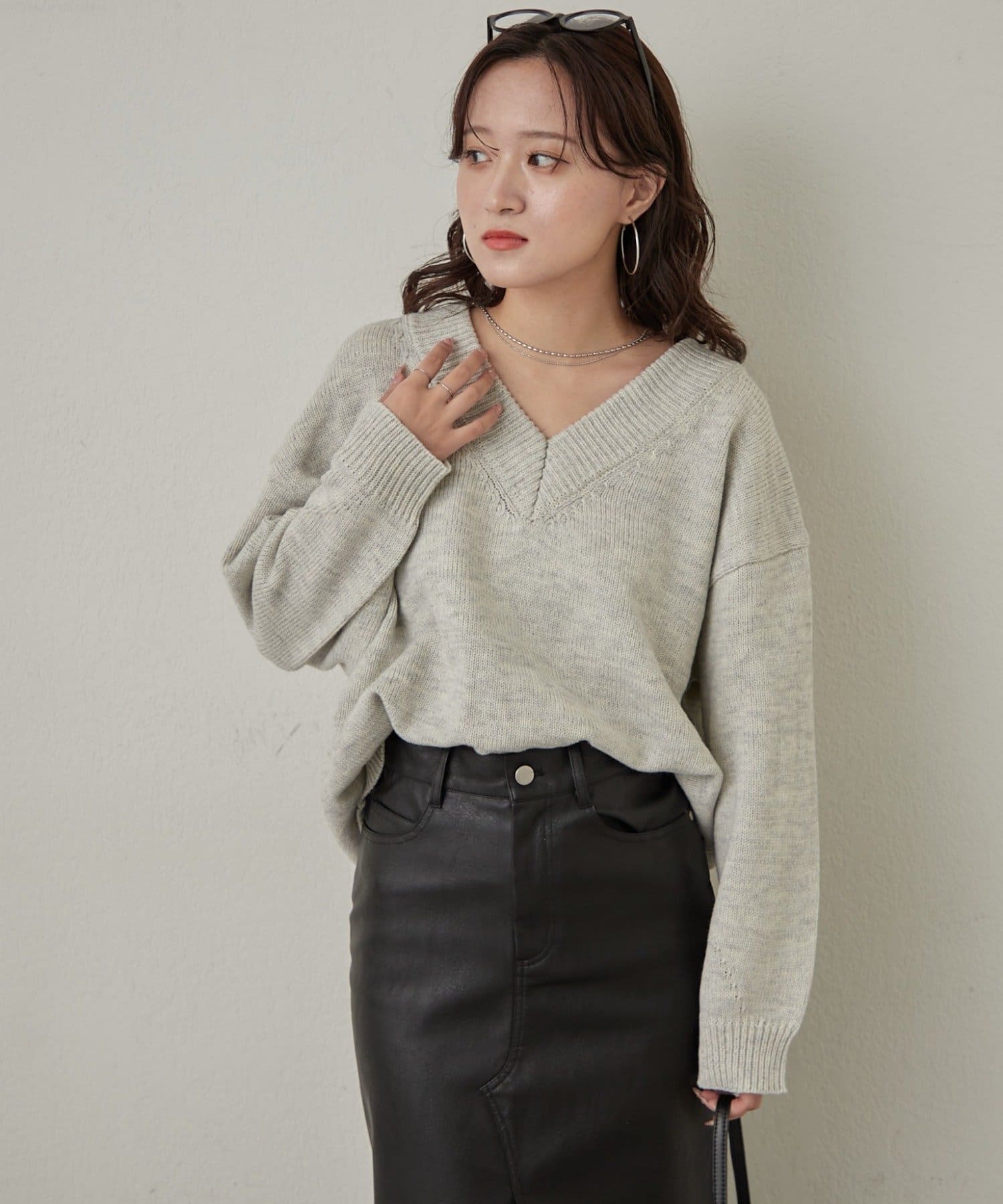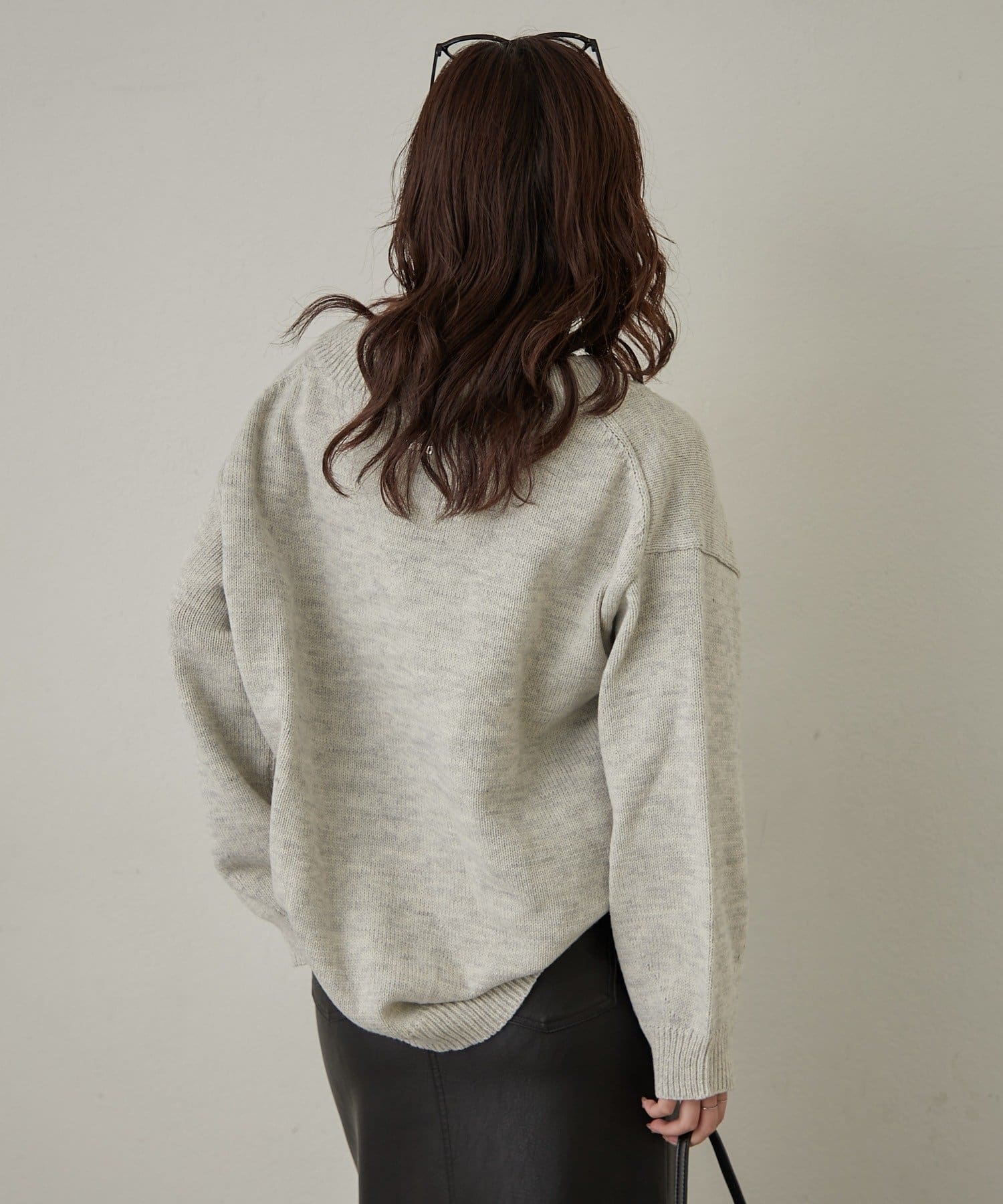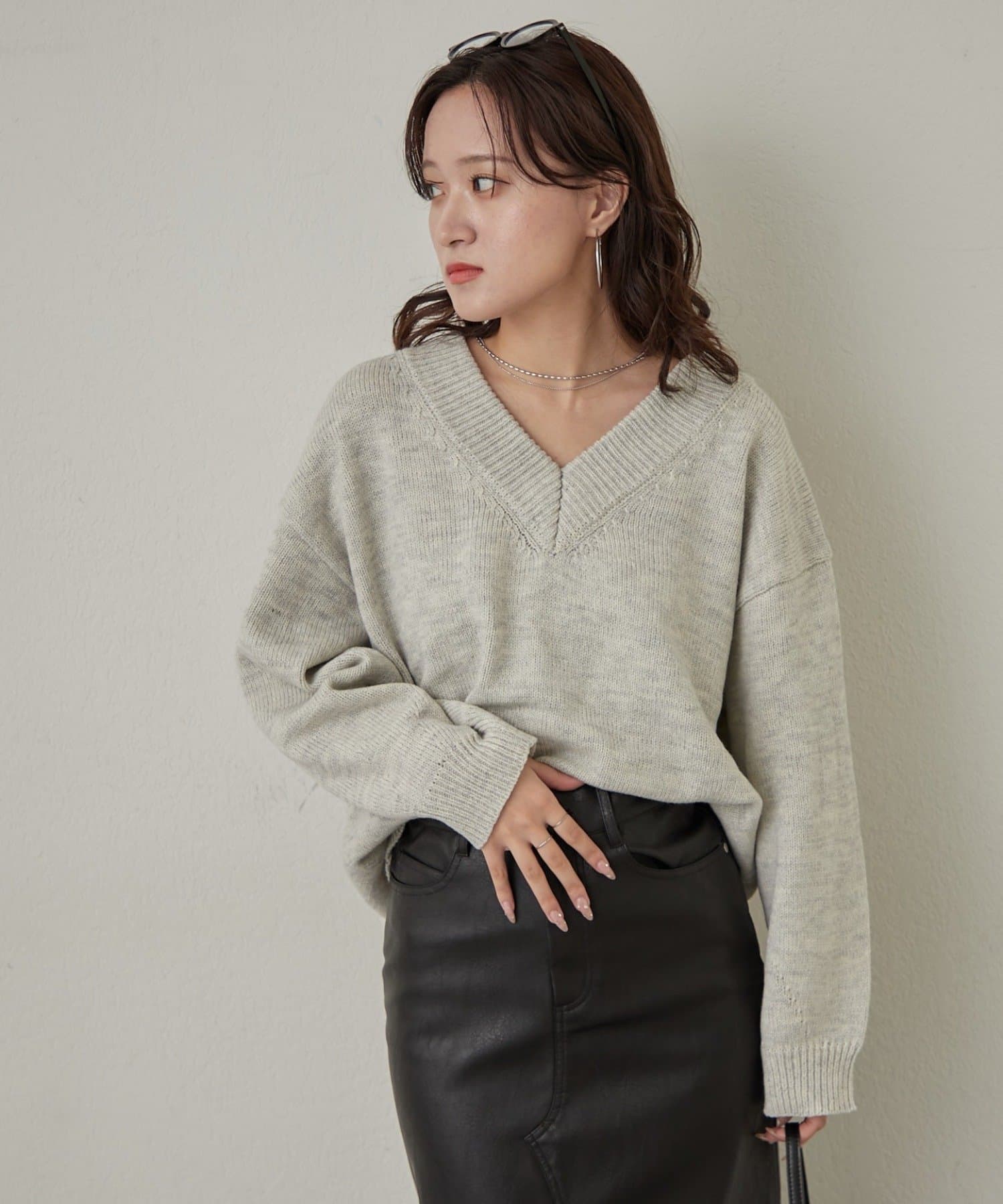 ミックス生地のゆったり着られる冬ニット◎Vニット
