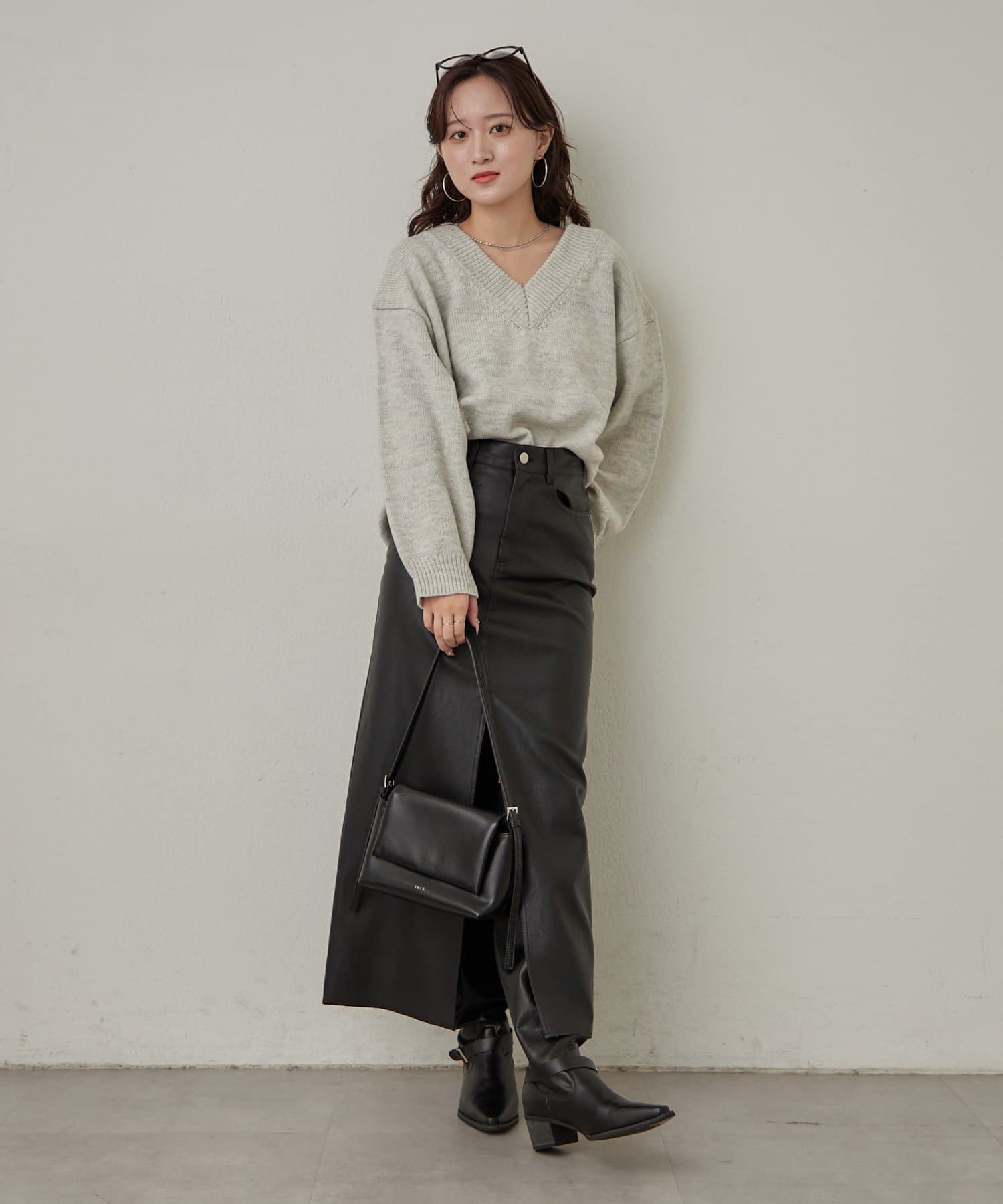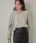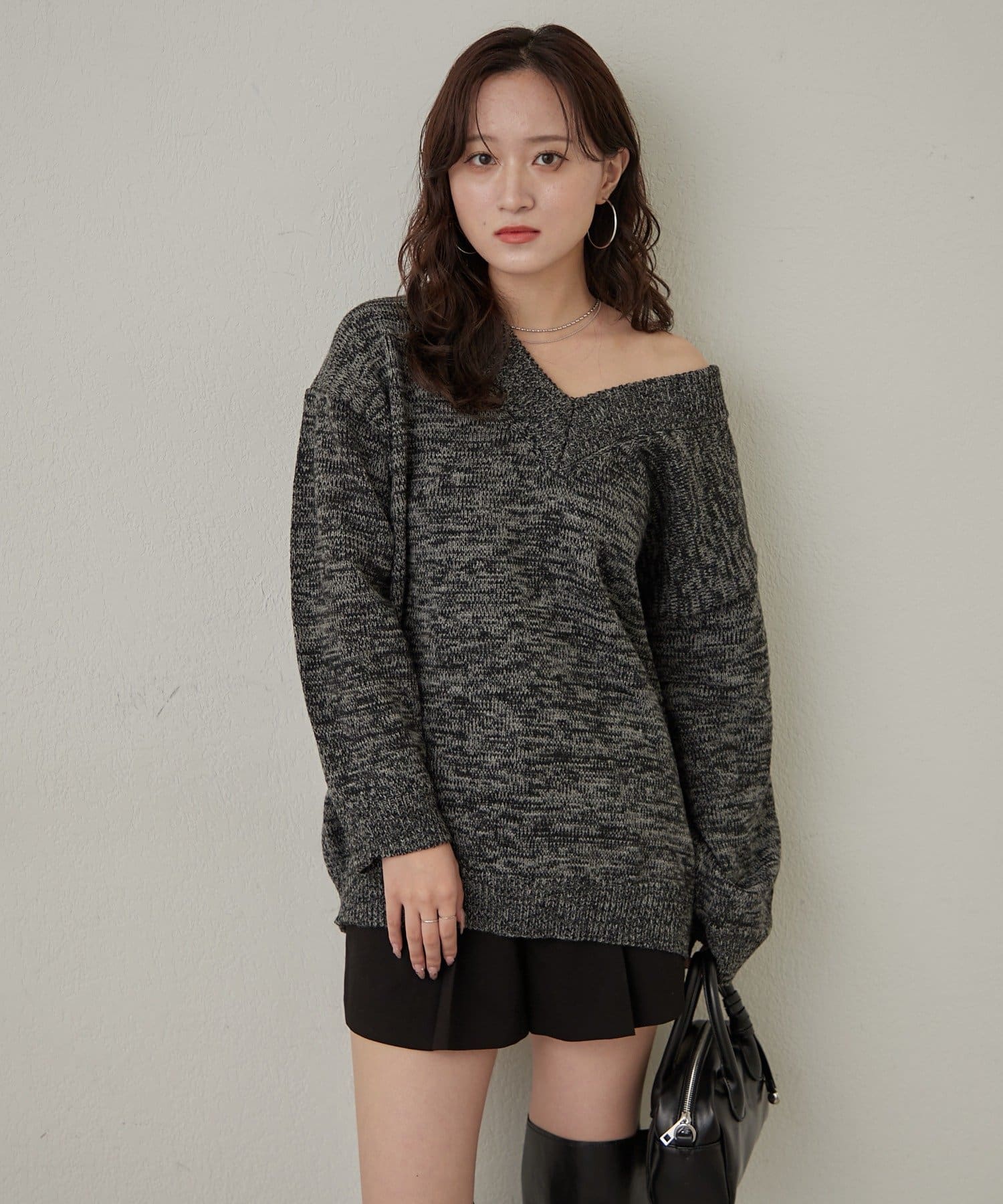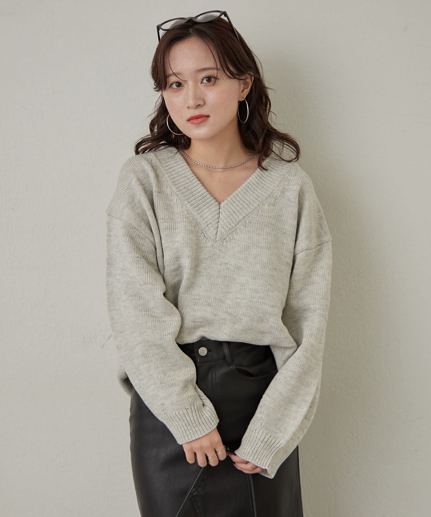 ミックス生地のゆったり着られる冬ニット◎Vニット